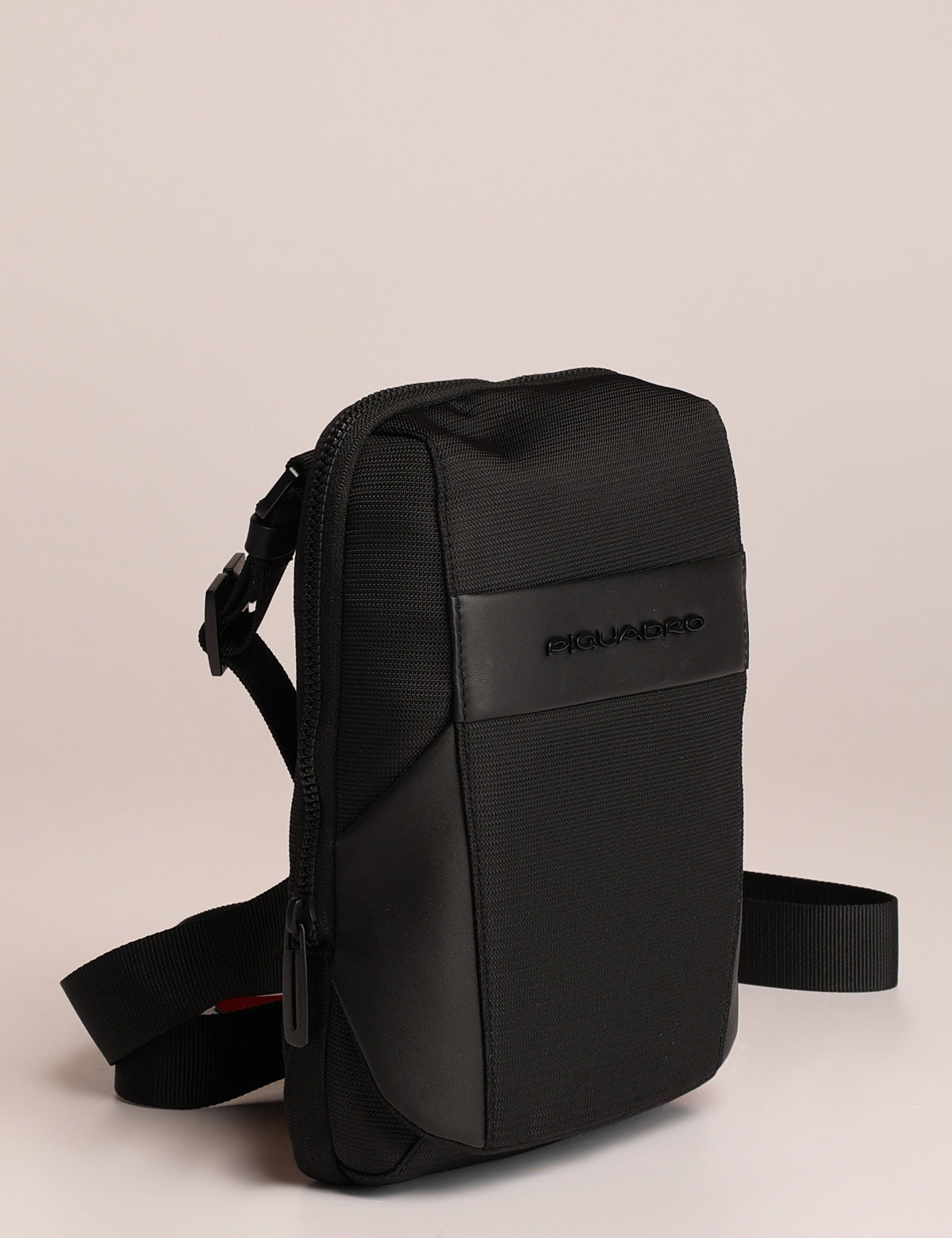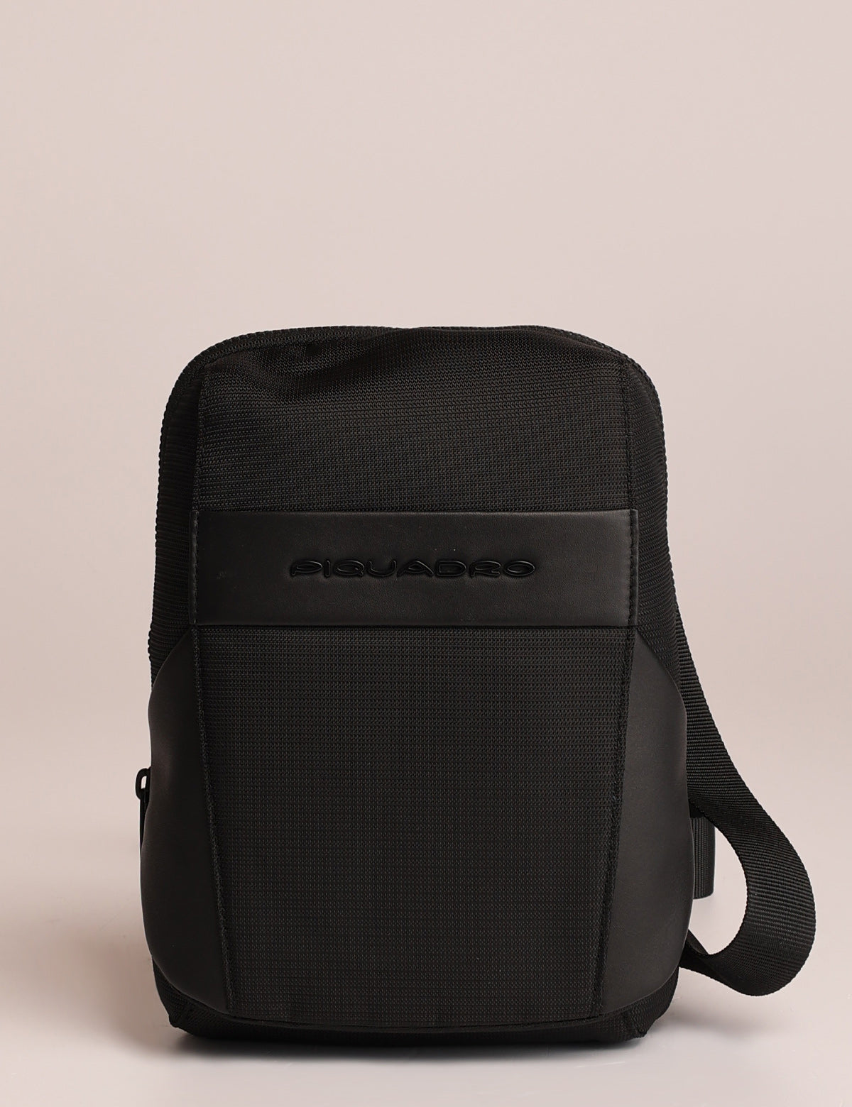 Kleine Herrentasche von Piquadro aus recyceltem Stoff und Lederdetails.