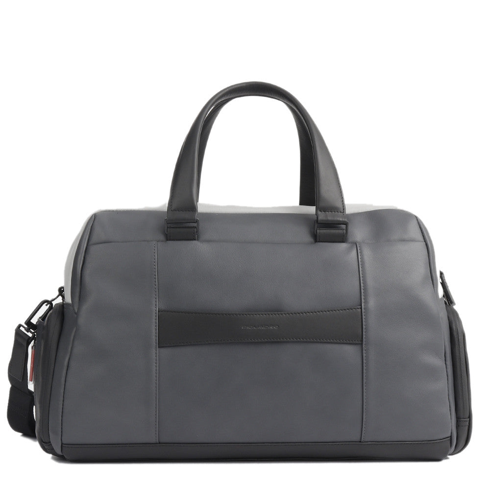 Piquadro Reisetasche aus Leder, ausgestattet mit einem vom Rest getrennten Schuhfach und seitlichem Zugang. Abmessungen des Handgepäcks