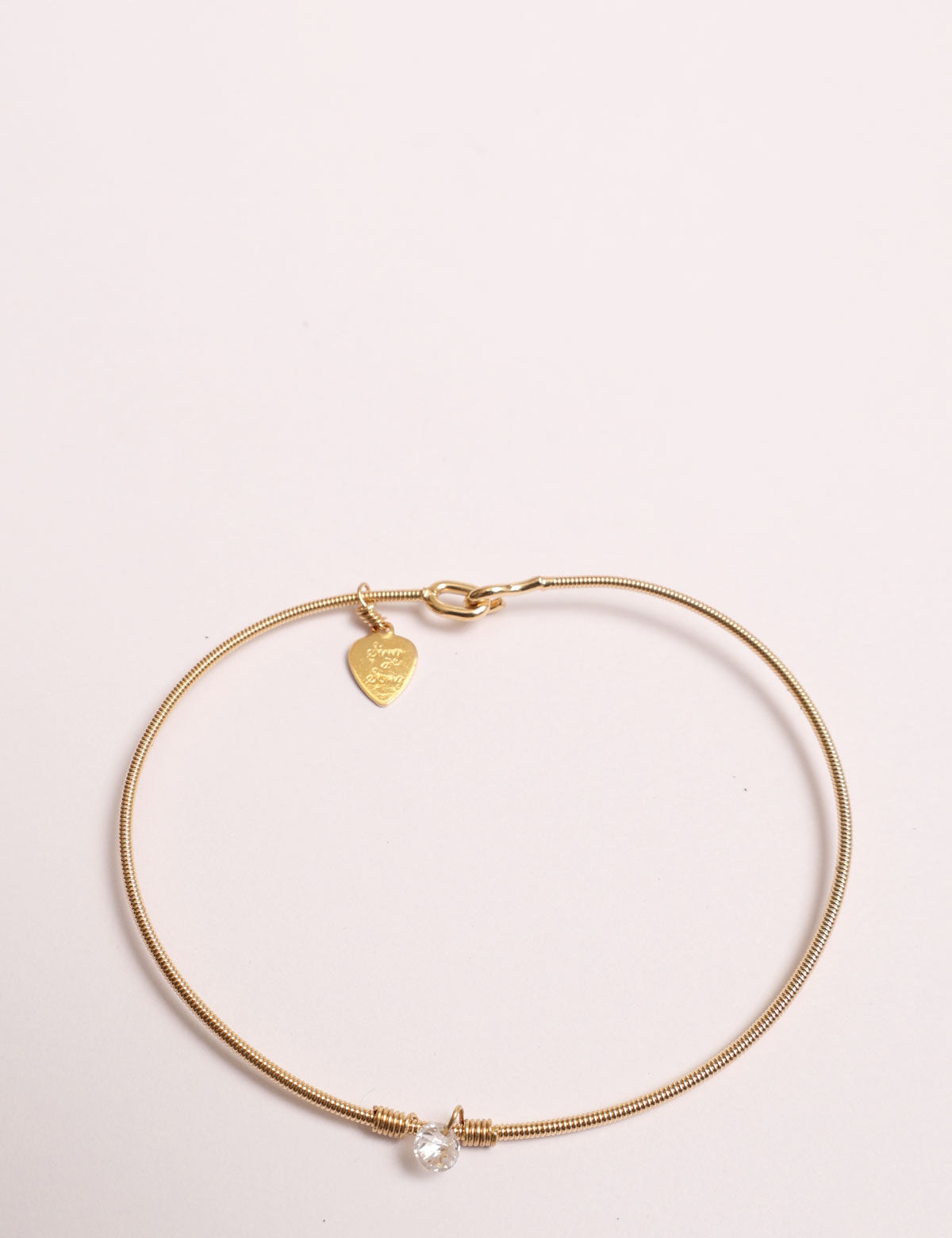 Damenarmband „Sing a Song“ aus Gitarrensaite mit Anhänger aus Zirkonoxid. Eingetaucht in ein Bad aus Gelbgold