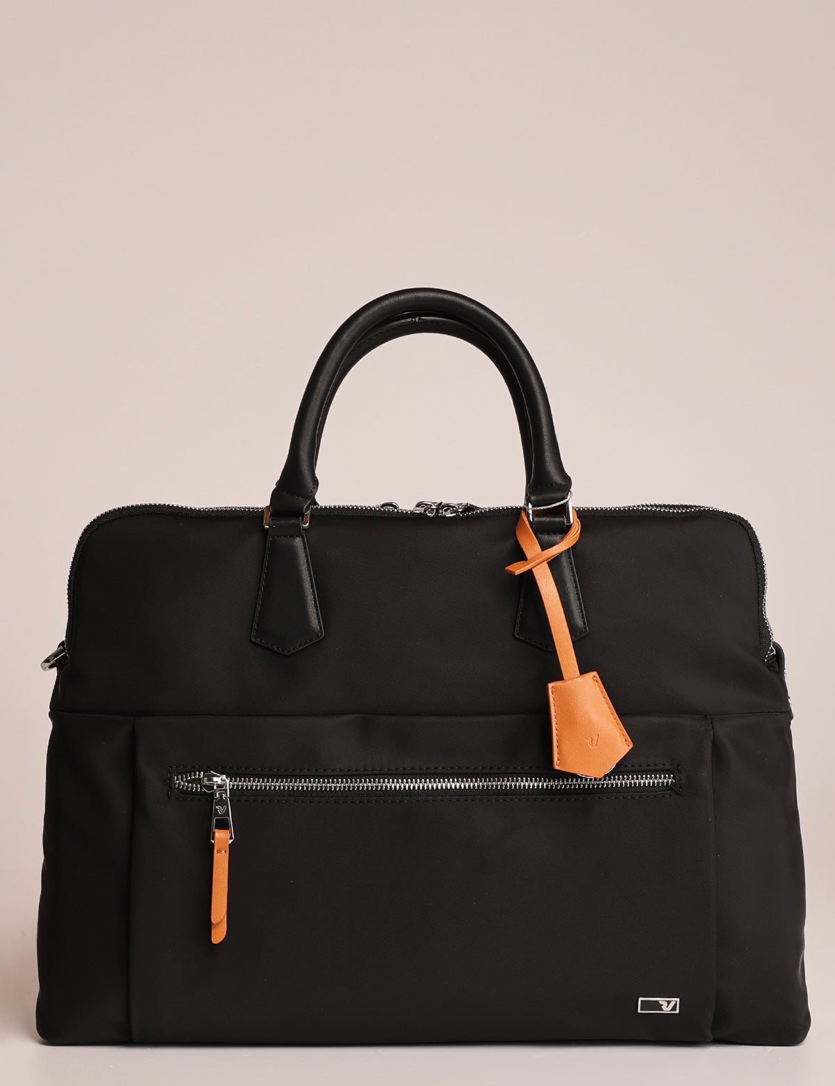 Damen-Arbeitstasche von Roncato mit drei Fächern, eines davon für Computer und Tablet, gekennzeichnet durch elegante Kontrastdetails.