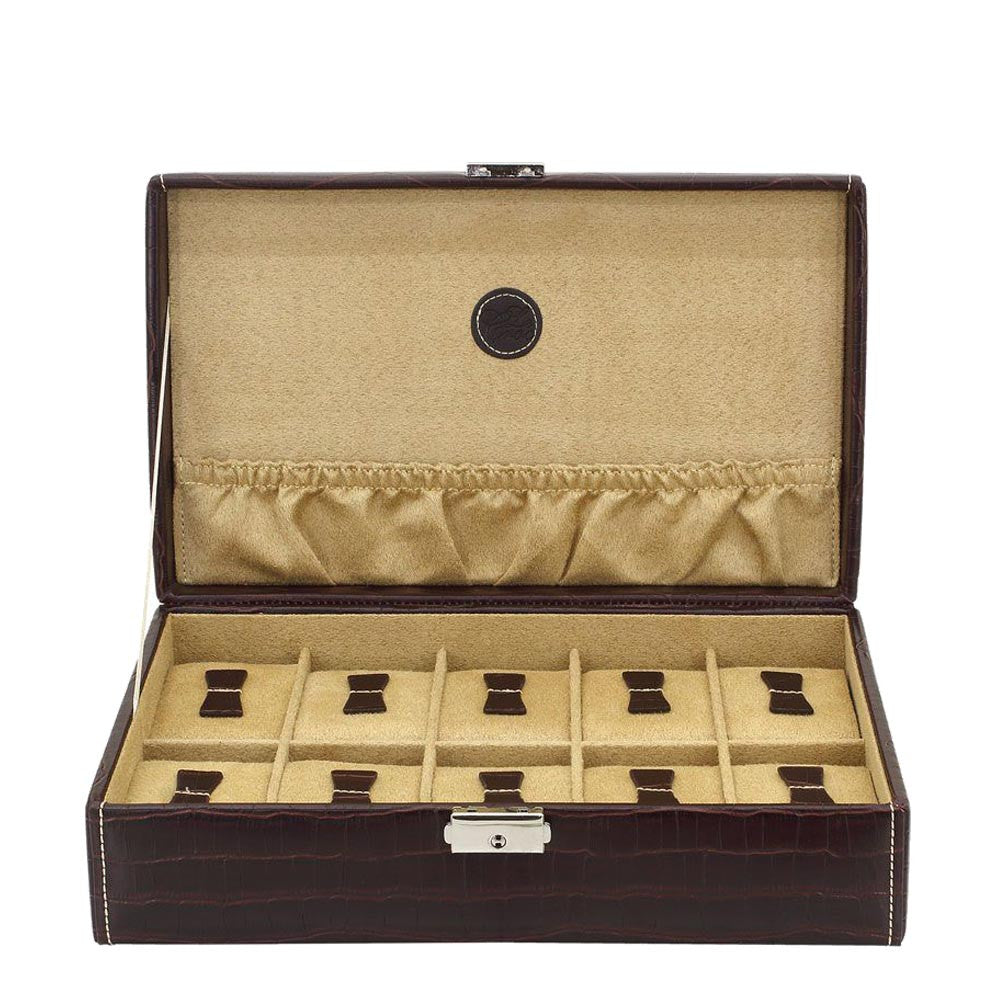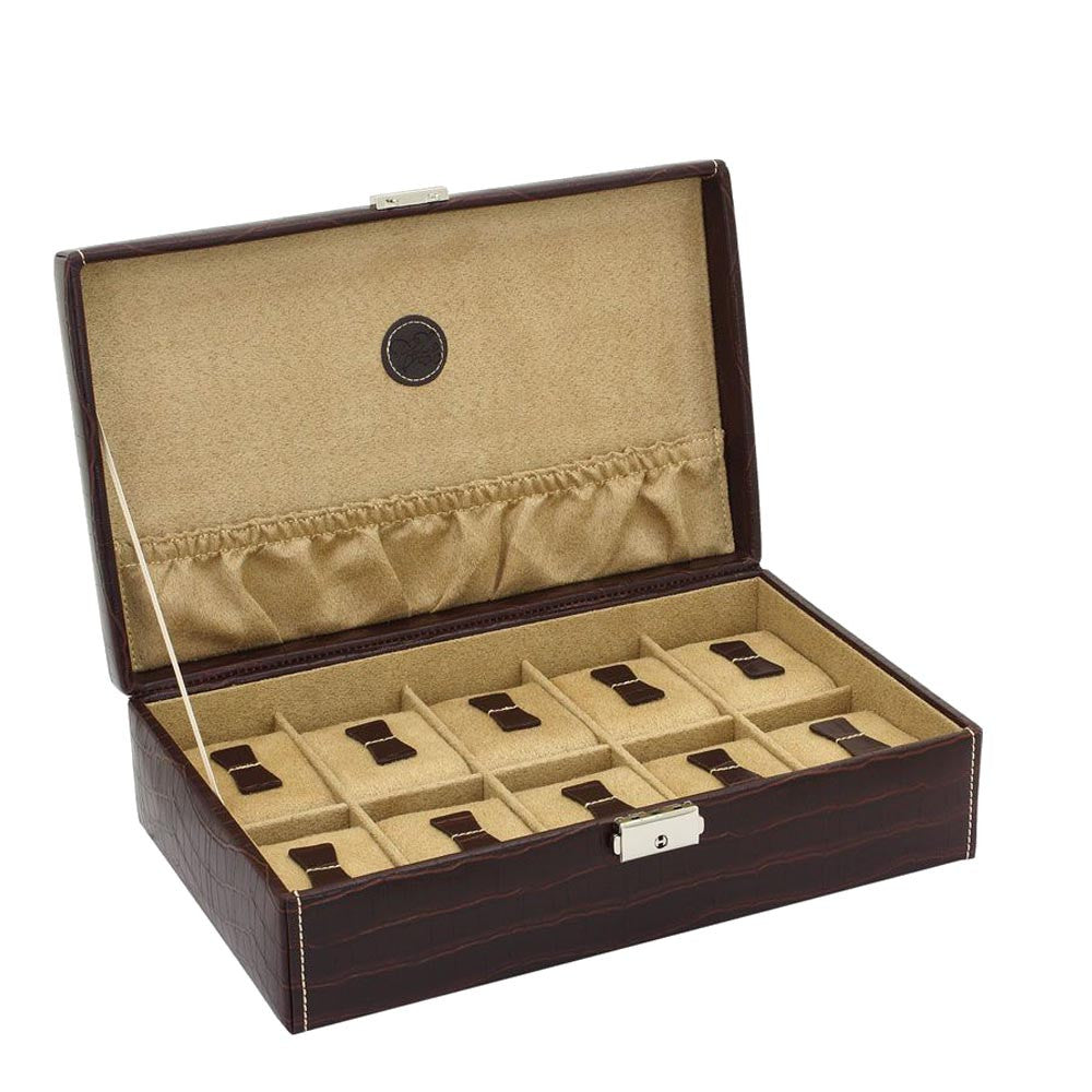 Friedrich23 10-Sitzer Uhrenbox mit Krokoprägung, dunkelbraun