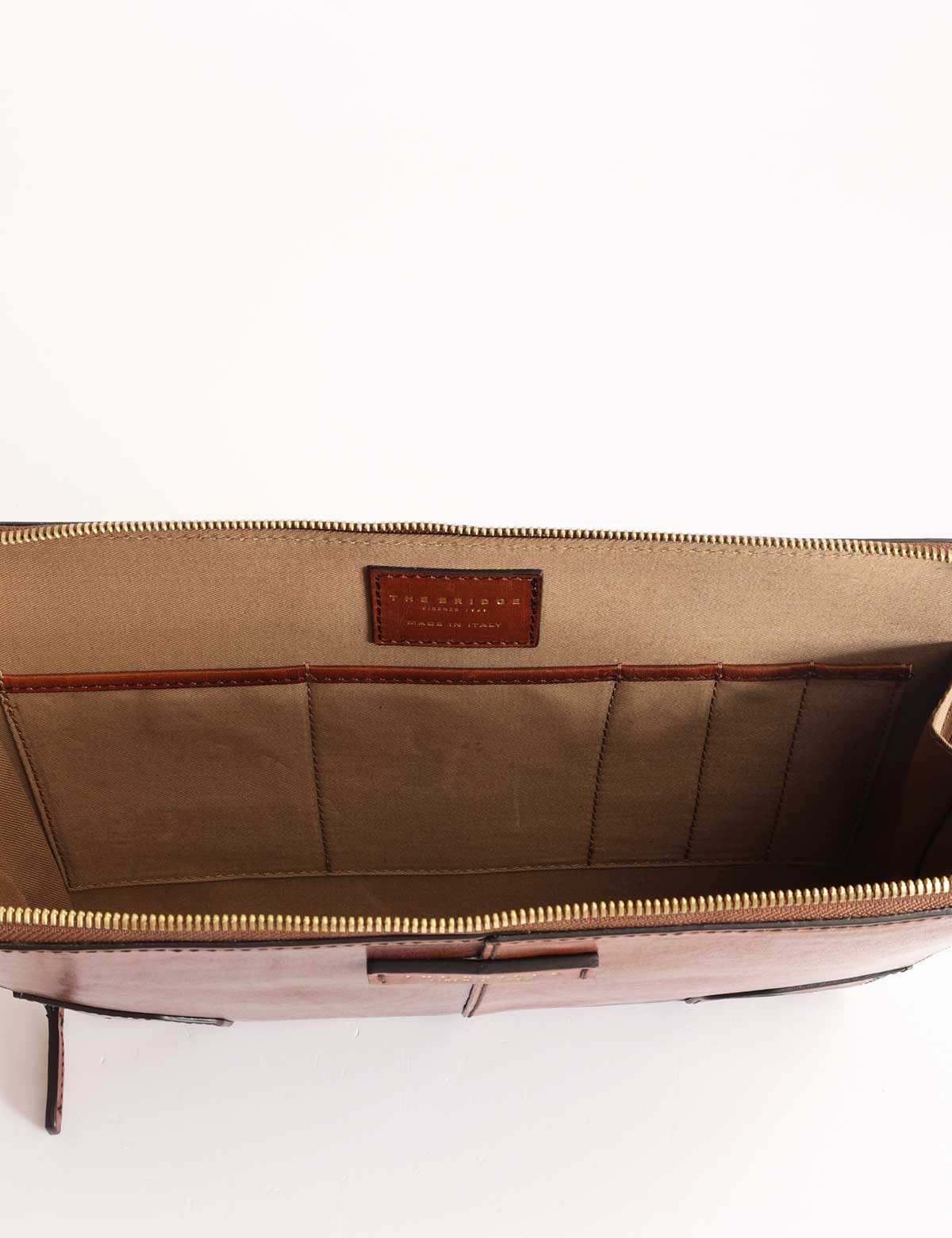 Die Bridge-Handdokumentenmappe aus Leder mit Reißverschluss und praktischer Schlaufe an der Rückseite für einfachen Transport