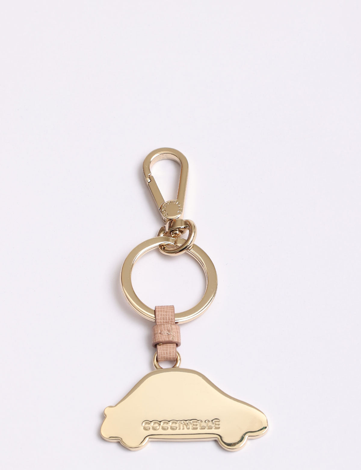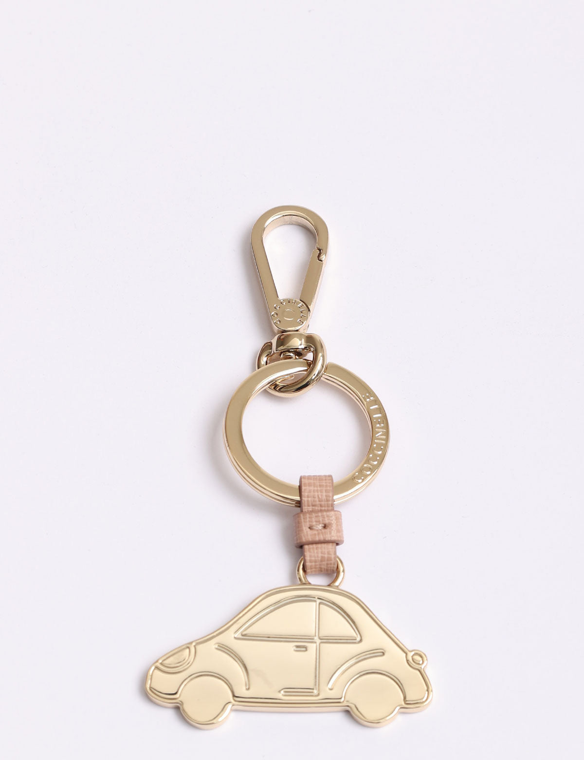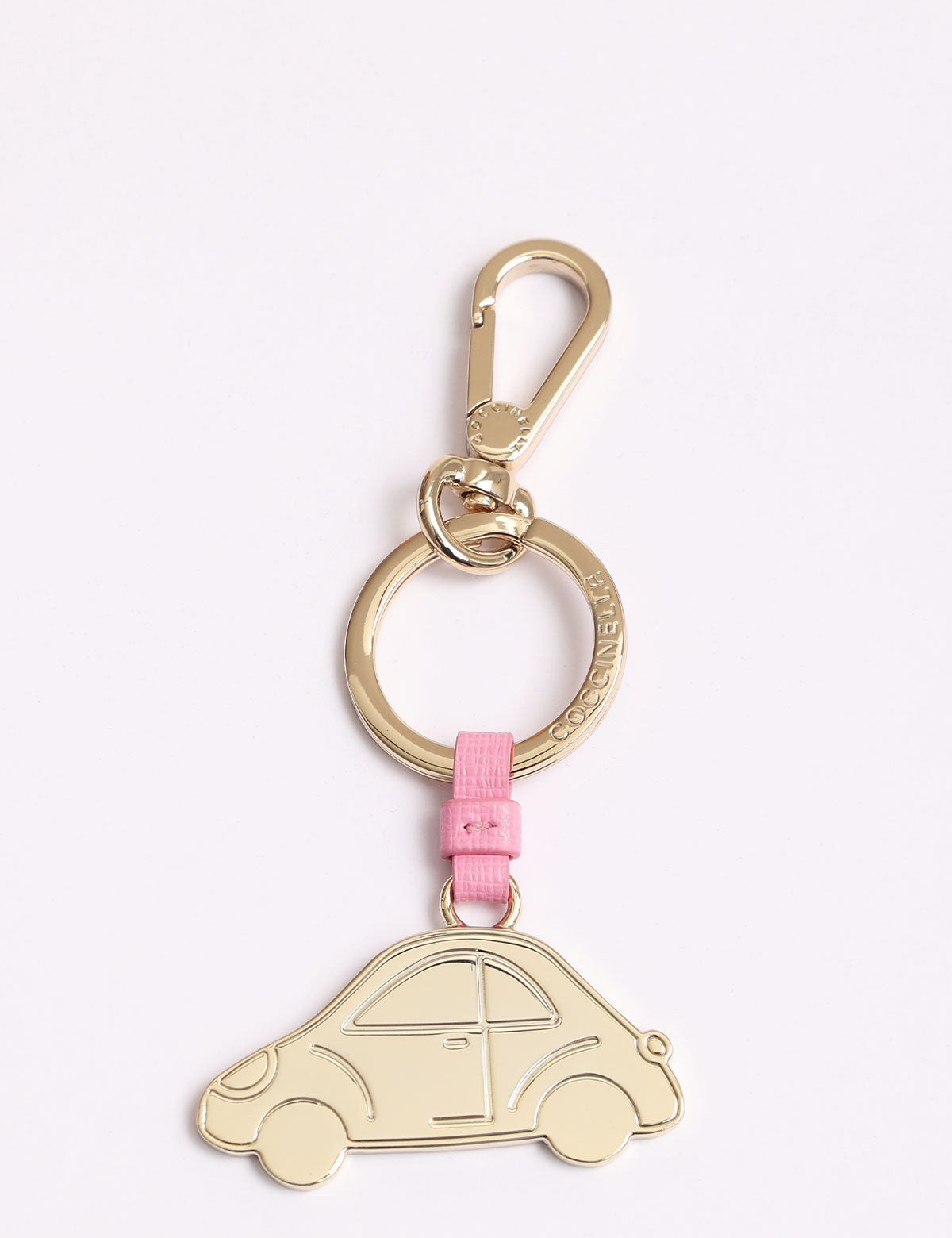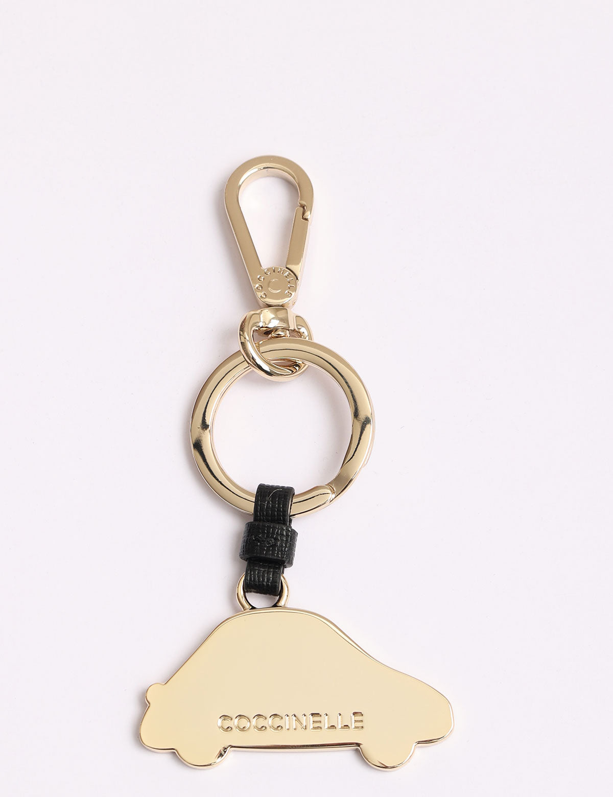 Coccinelle-Schlüsselanhänger aus Stahl in Form eines Autos mit Lederdetails