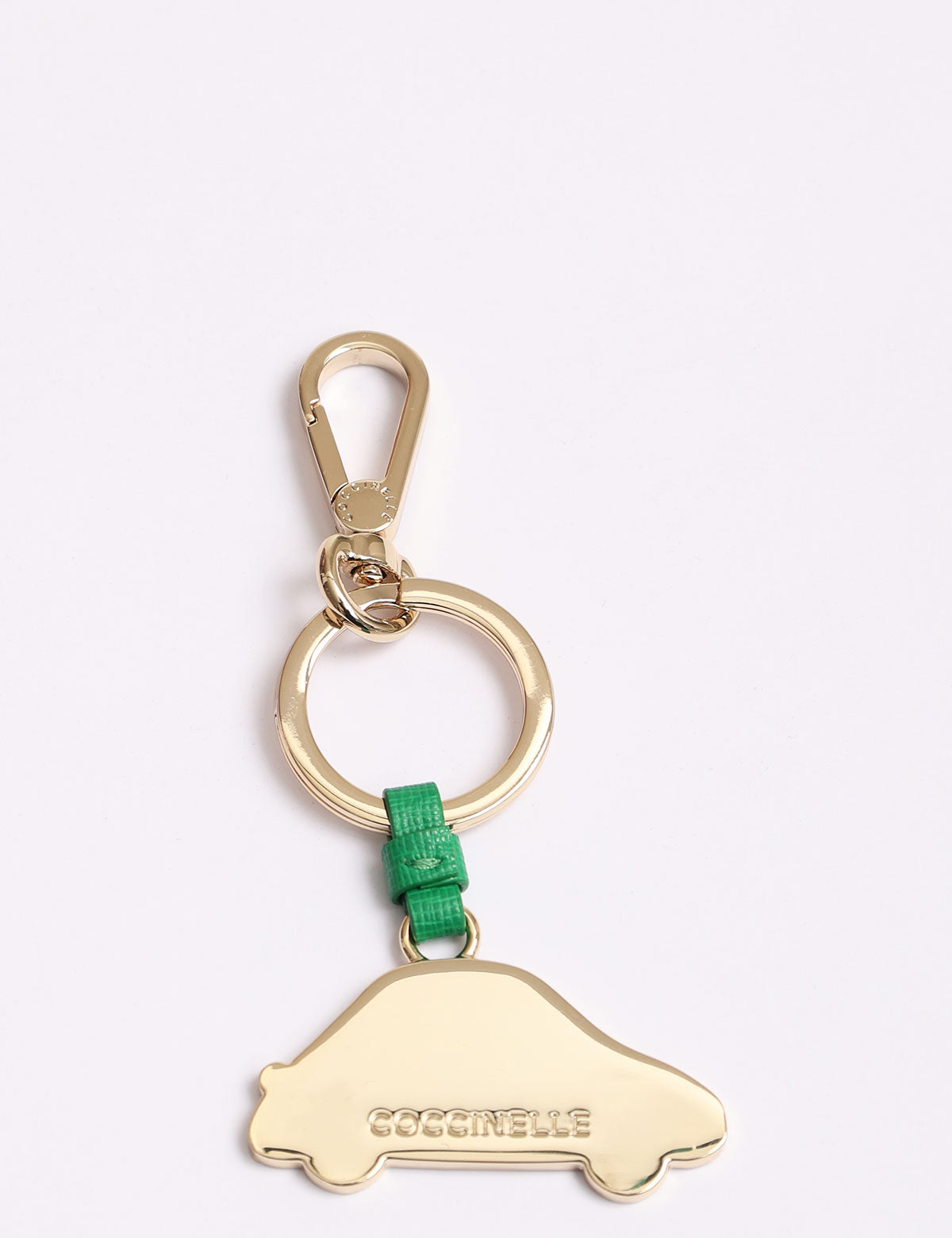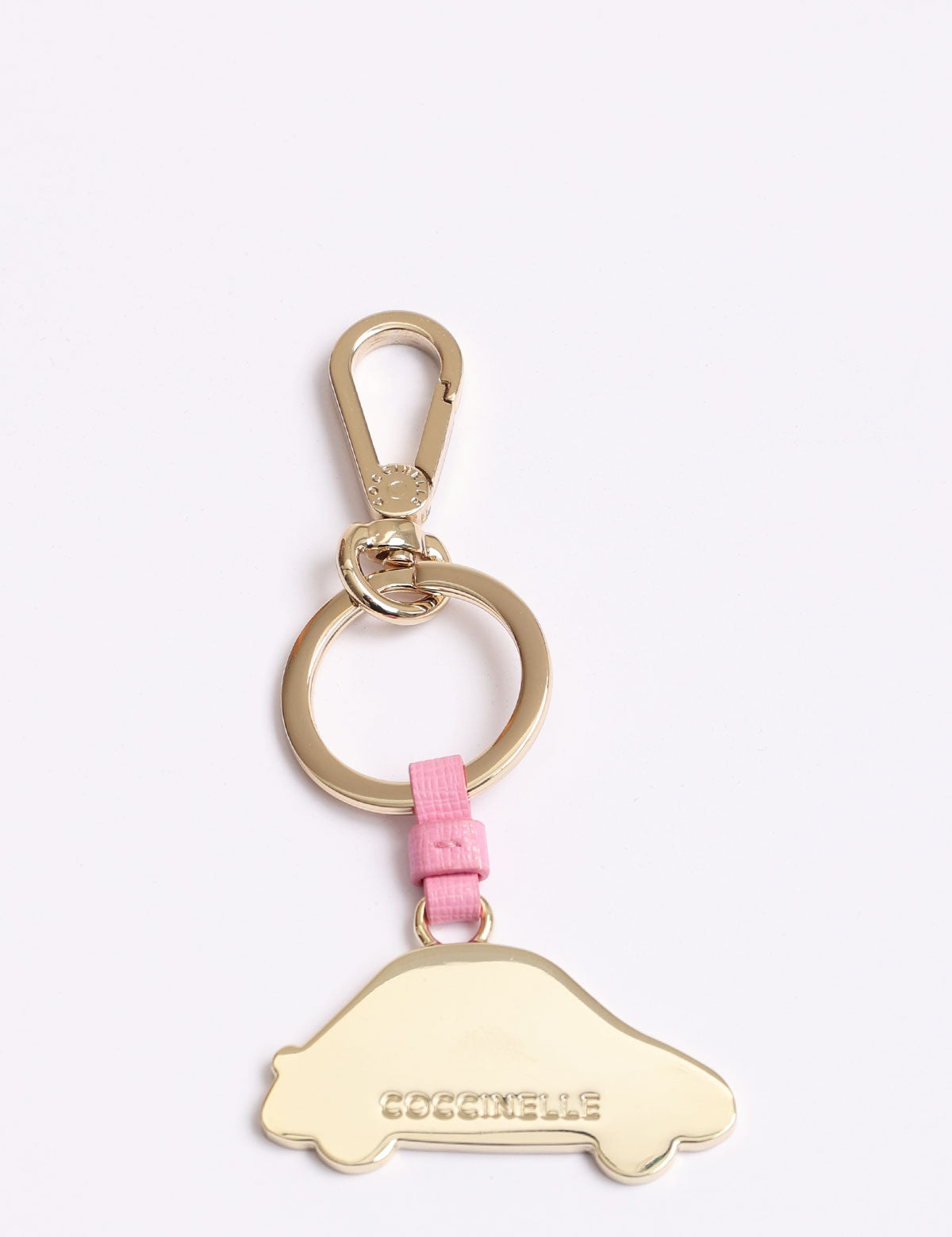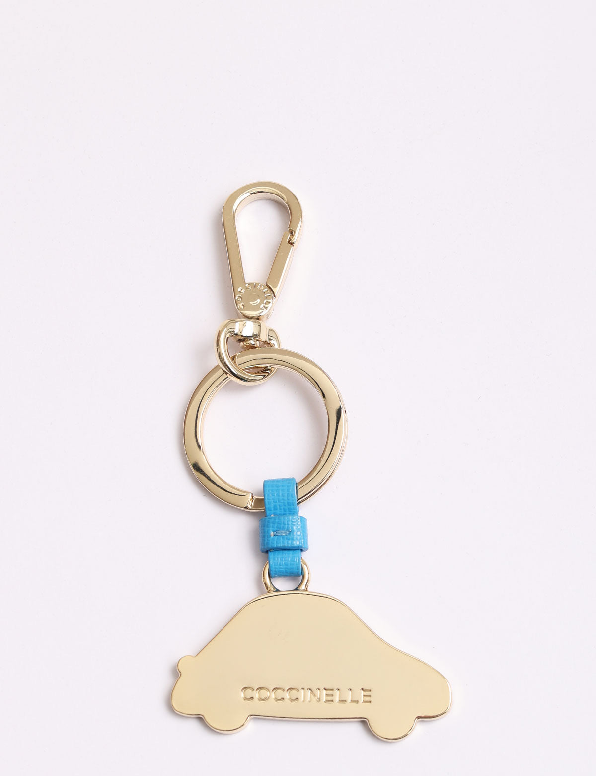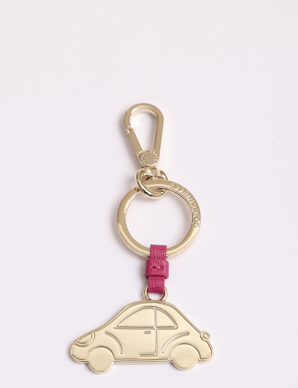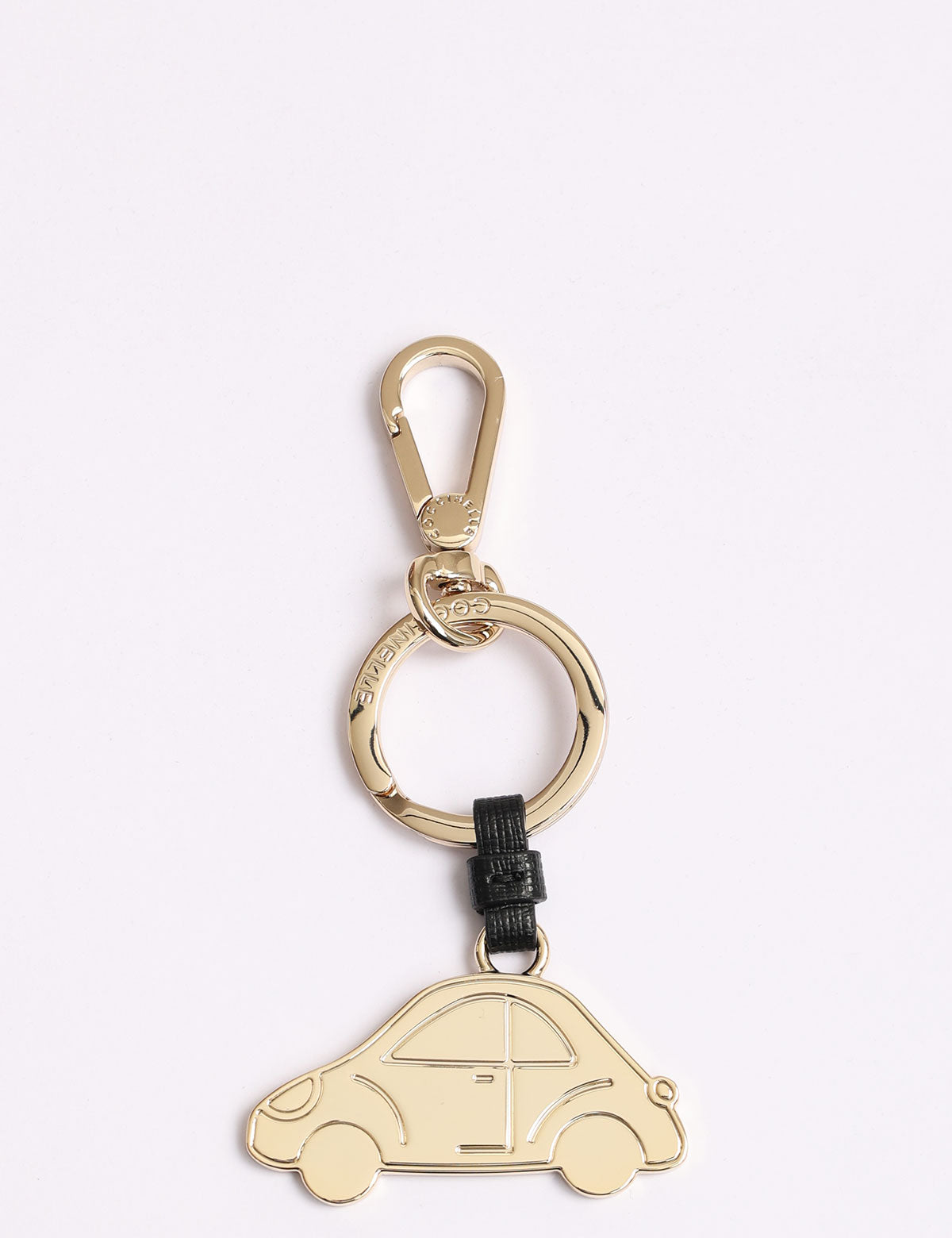 Coccinelle-Schlüsselanhänger aus Stahl in Form eines Autos mit Lederdetails