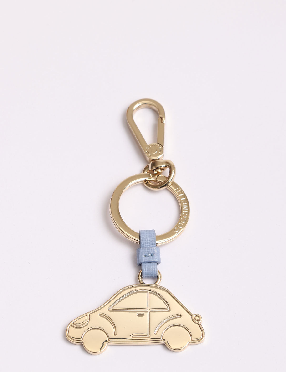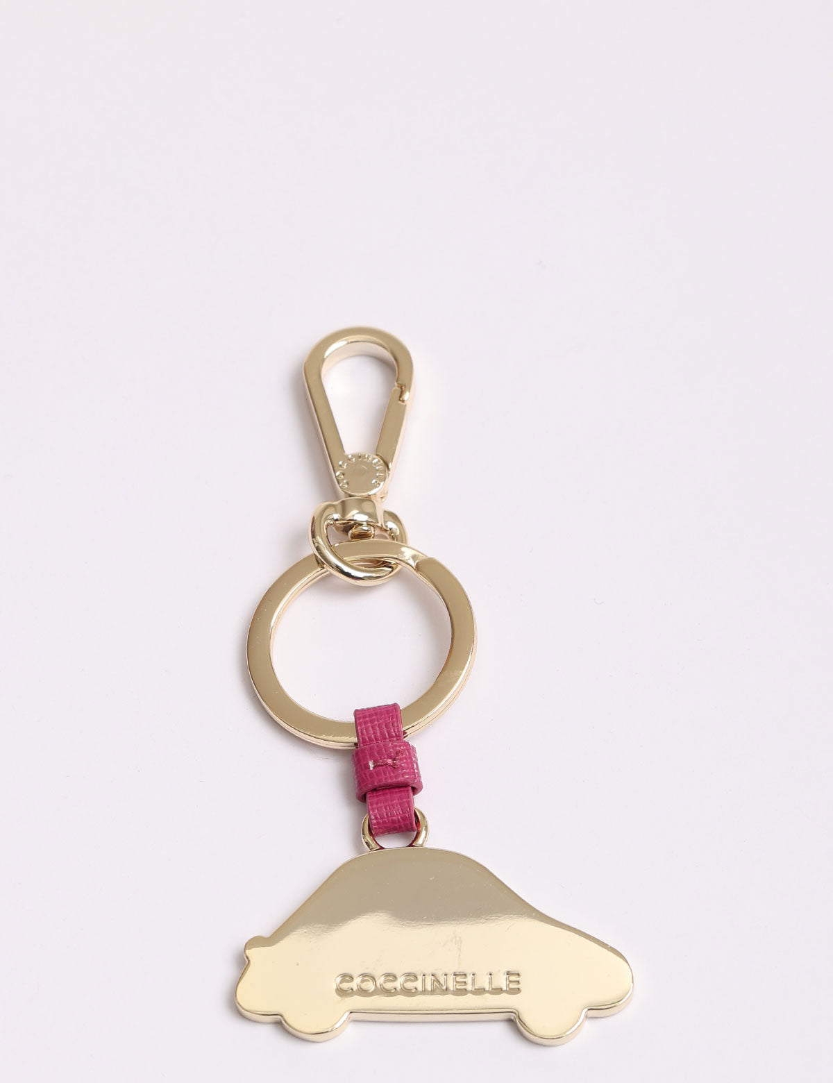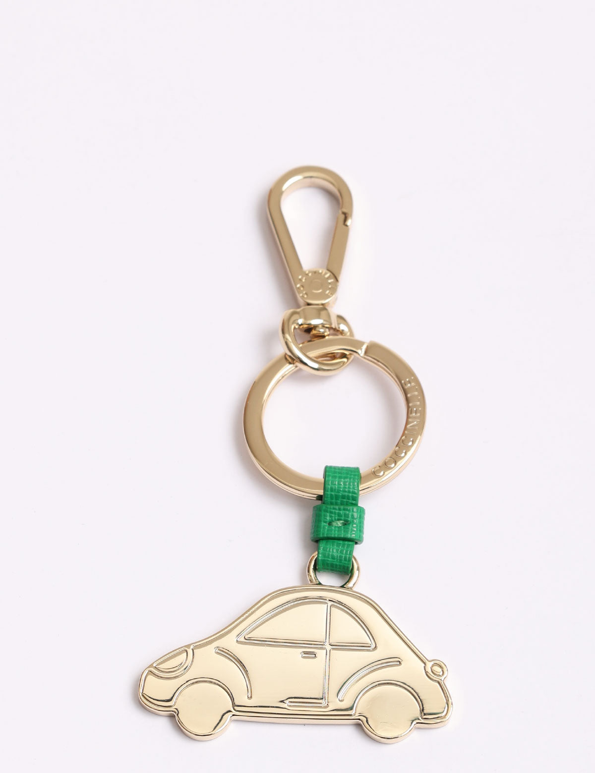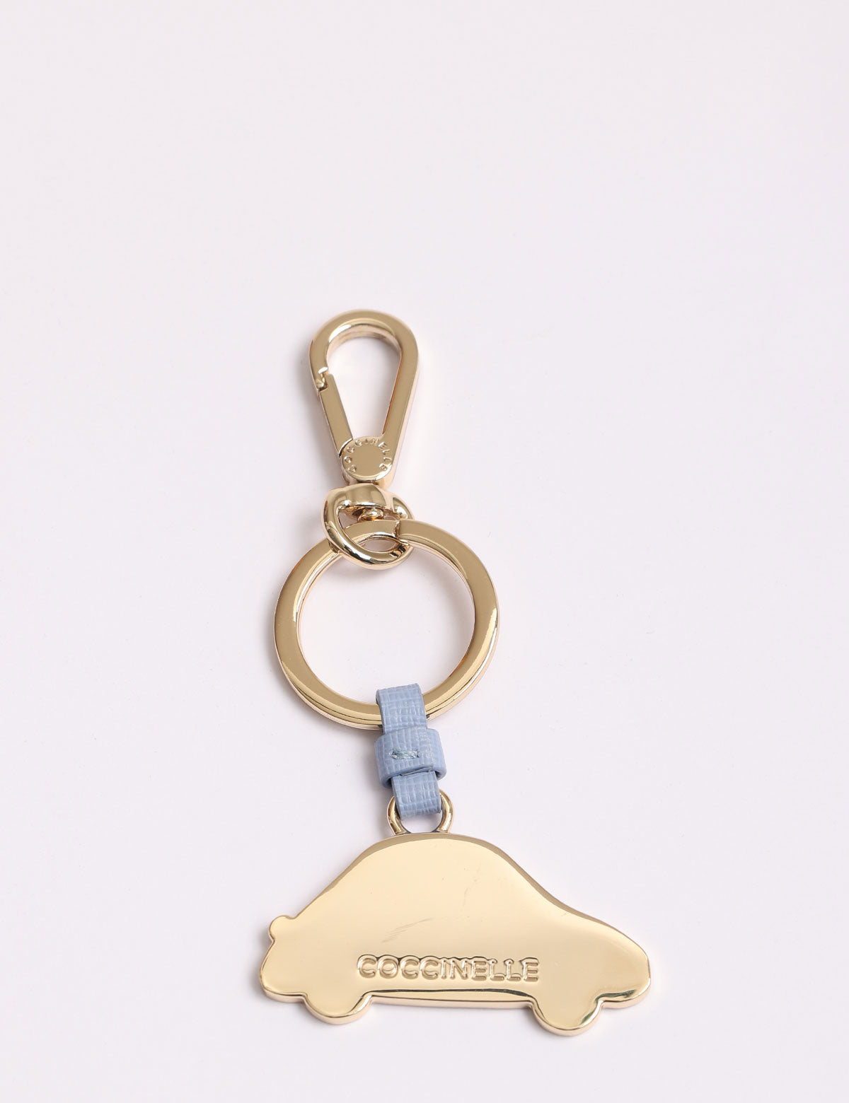 Coccinelle-Schlüsselanhänger aus Stahl in Form eines Autos mit Lederdetails