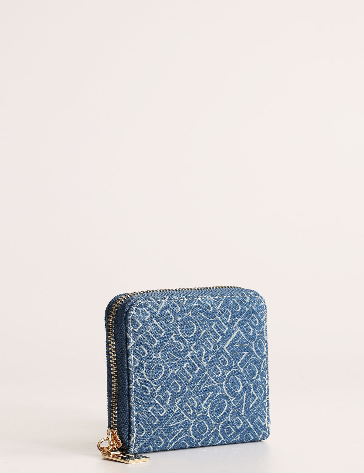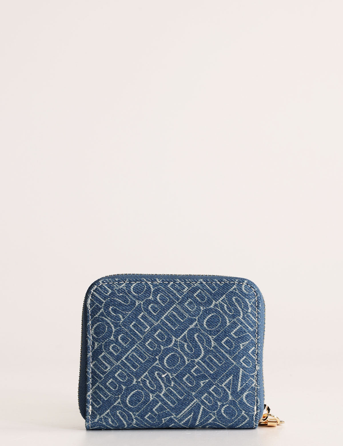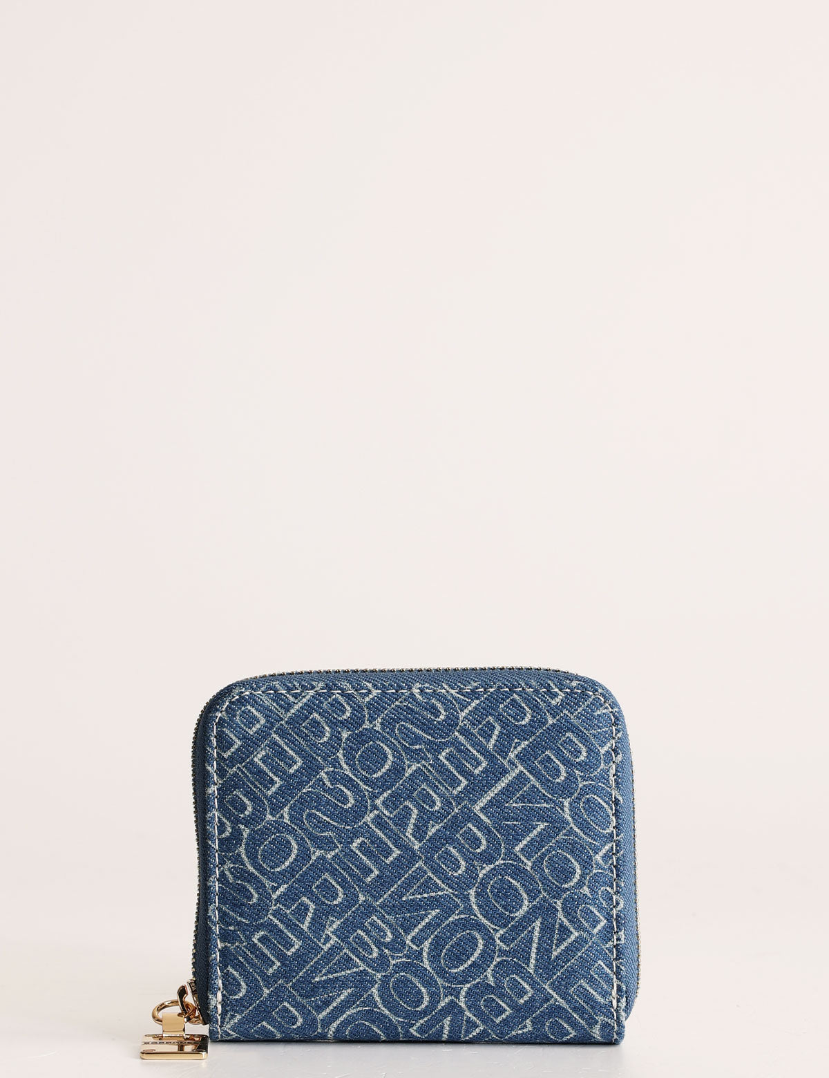 Borbonese-Damenbrieftasche, kompaktes Modell, aus Denim mit vollflächig aufgedrucktem Schriftzug