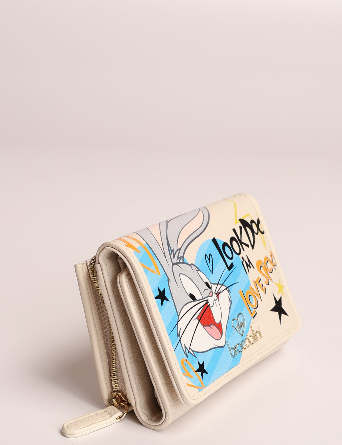 Braccialini Damen-Geldbörse, Modell mit Frontklappe und externem Münzfach mit Reißverschluss, Bugs Bunny-Aufdruck aus der Looney Tunes-Ausgabe