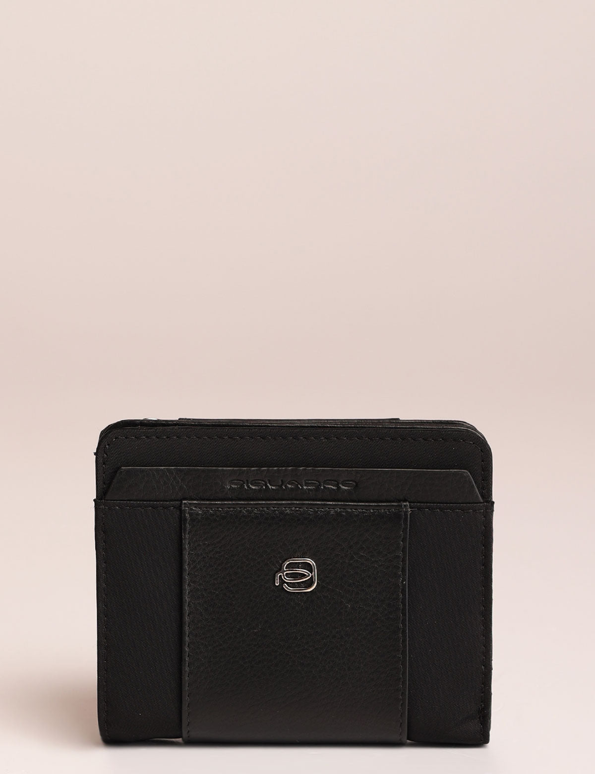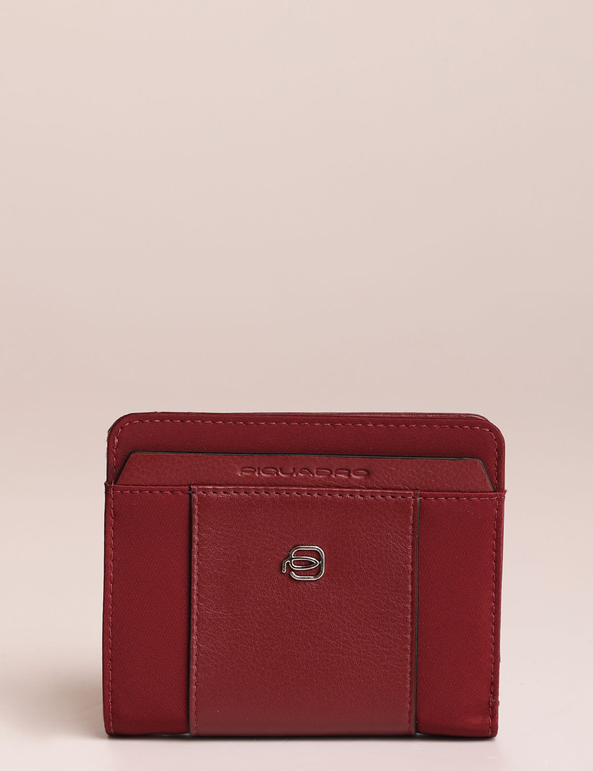 Piquadro Damenbrieftasche, kleines Modell mit externem Münzfach mit Reißverschluss und RFID-Schutzsystem. Aus Stoff und Leder.