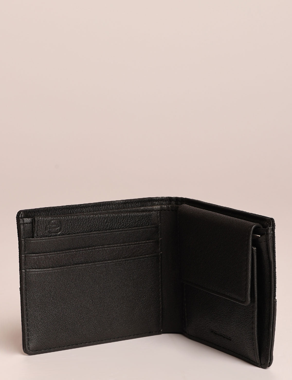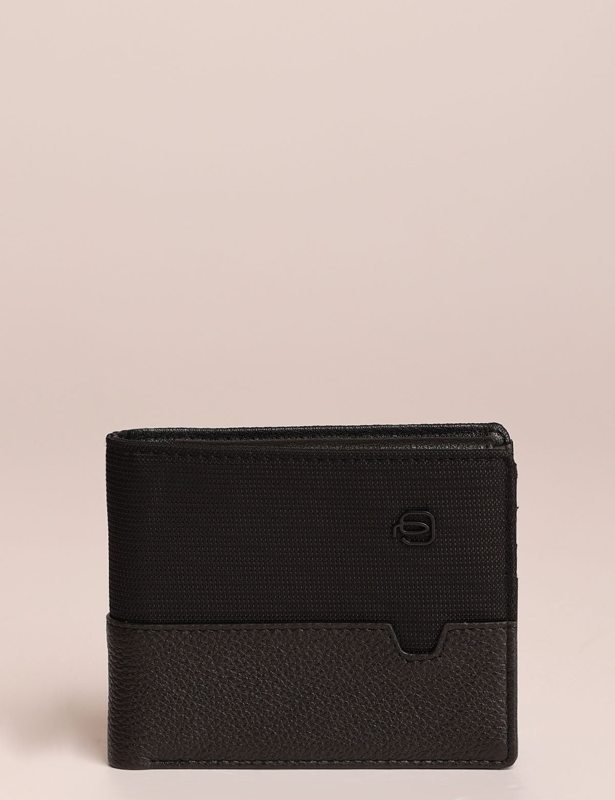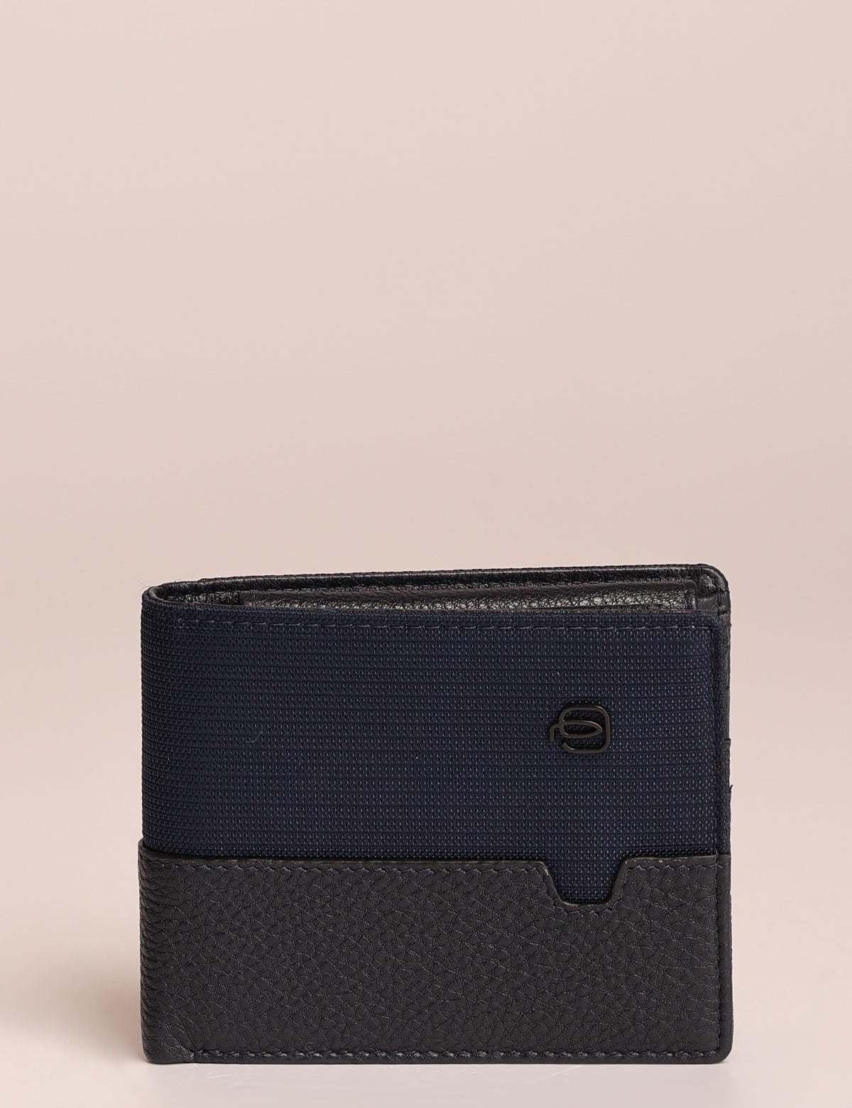 Portafogli da uomo Piquadro in tessuto riciclato e pelle, modello con porta documenti estraibile e sistema di protezione antifrode RFID