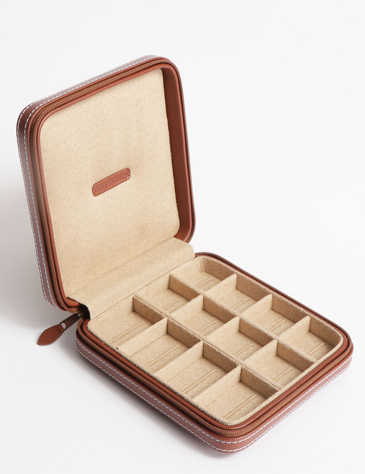 - 12 Fächer unterschiedlicher Größe zur Aufbewahrung von Schmuck oder Manschettenknöpfen