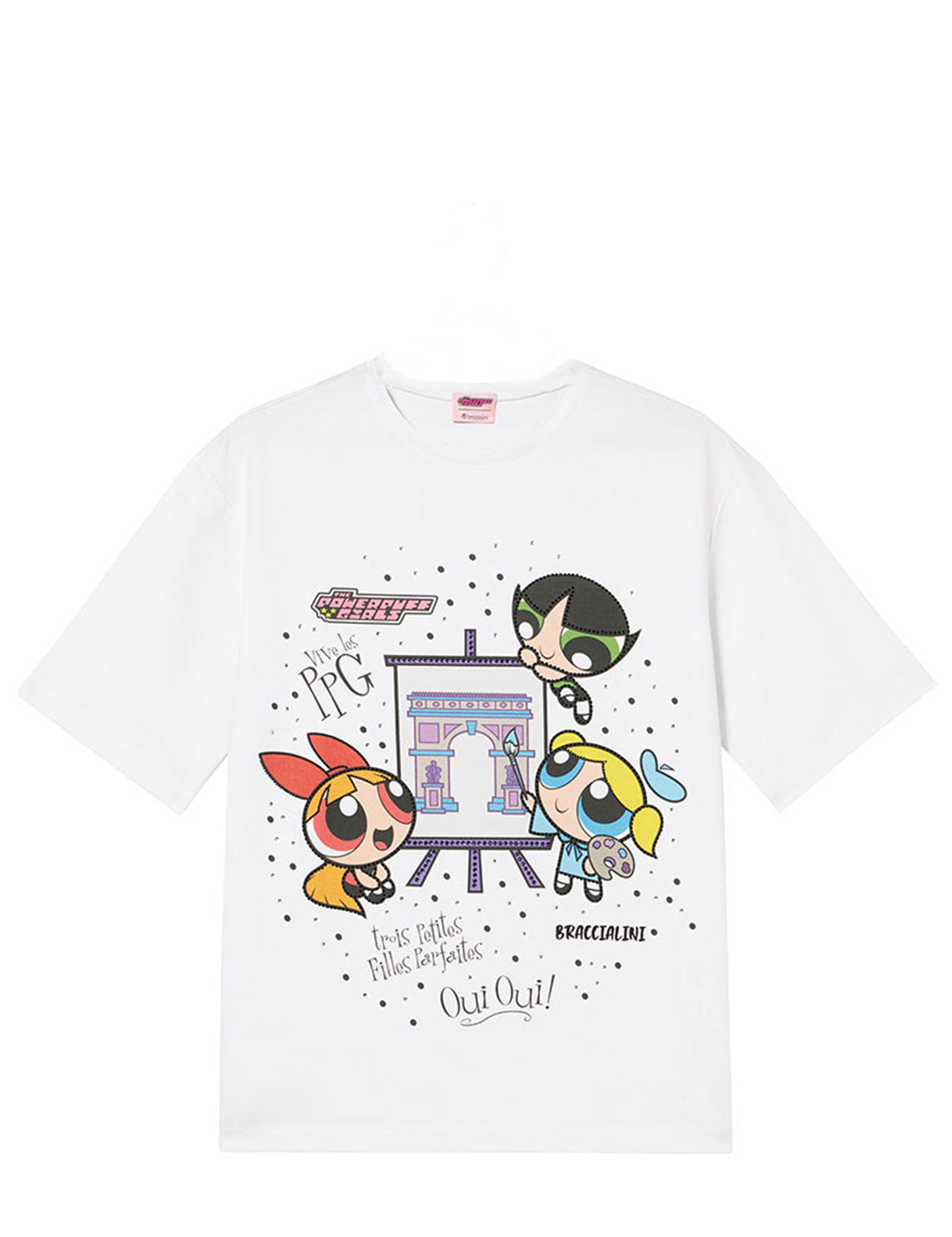 Braccialini T-Shirt aus der Powerpuff Girls -Linie mit Arc de Triomphe-Aufdruck, Produktcode PPGTOP02