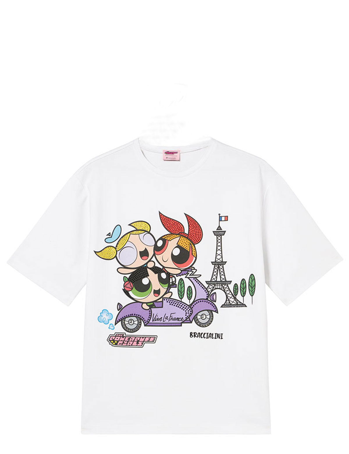 Braccialini T-Shirt aus der Powerpuff Girls -Linie mit Eiffelturm-Aufdruck, Produktcode PPGTOP03