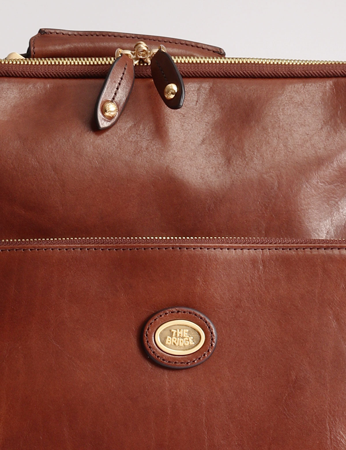 Die Bridge Story Viaggio ist eine Linie für rustikale Lederwaren. The Bridge – Story Viaggio bietet ein Material von absolutem Wert: Es handelt sich um handgepuffertes Pflanzenleder. Dieses exklusive Material von The Bridge stellt ein authentisches Einzelstück dar, das im Laufe der Jahre an Wert und Schönheit gewinnen wird. Das Leder wurde mit tierischen Fetten und Pflanzenölen gegerbt, von Hand mit Anilin gepuffert und mit einer Bernsteinwalze in der typischen The-Bridge-Handwerkskunst poliert, was die natürliche Schönheit des Leders hervorhebt.