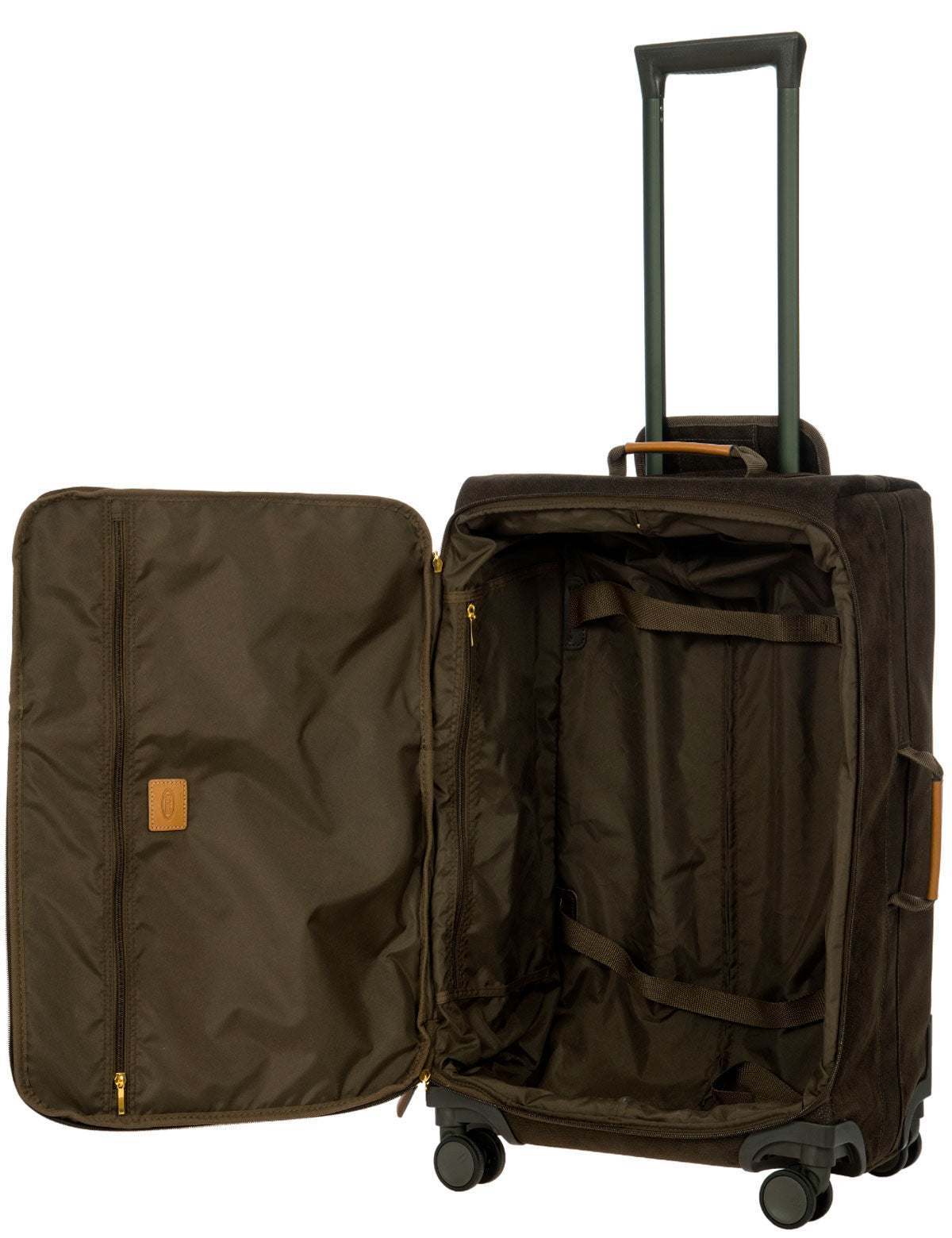 Mittelgroßes Bric's-Gepäck mit 4 Rollen und praktischen Vordertaschen aus Stoff in Wildlederoptik mit Lederdetails