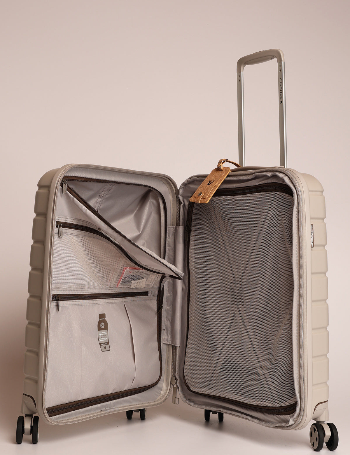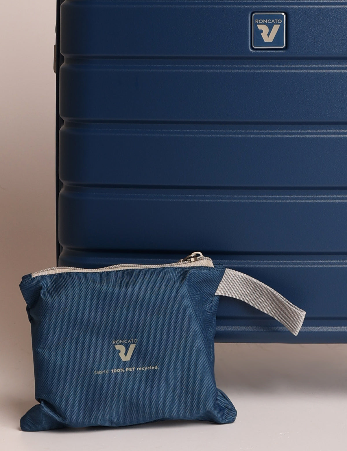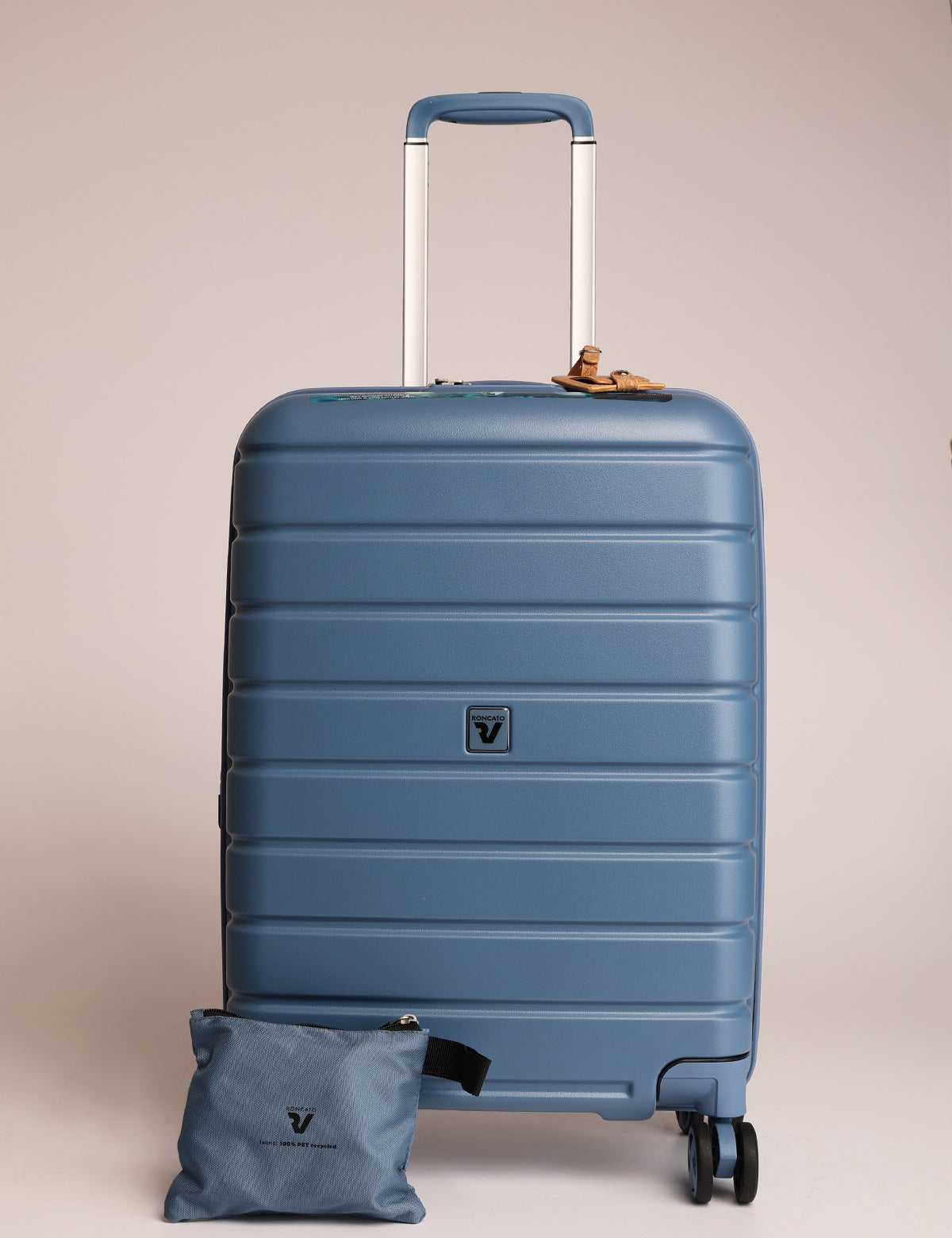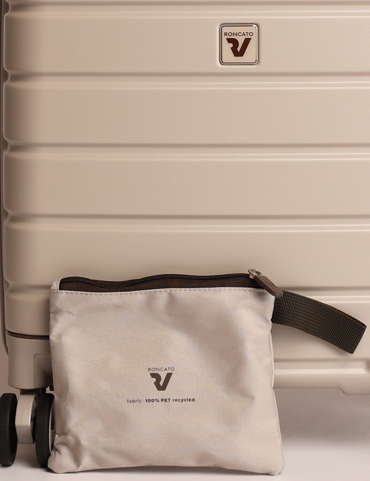 Die Relife-Linie von Roncato ist eine Kollektion ökologisch nachhaltiger Koffer aus RPET, das aus recycelten Plastikflaschen gewonnen wird. Erhältlich in drei Größen (Kabinenkoffer, mittel und groß), bietet er abnehmbare Doppelräder, ein erweiterbares System und ein TSA-Schloss. Italienisches Design vereint Funktionalität und Umweltschutz mit Details wie dem Kork-Adresshalter und dem Sicherheitsreißverschluss