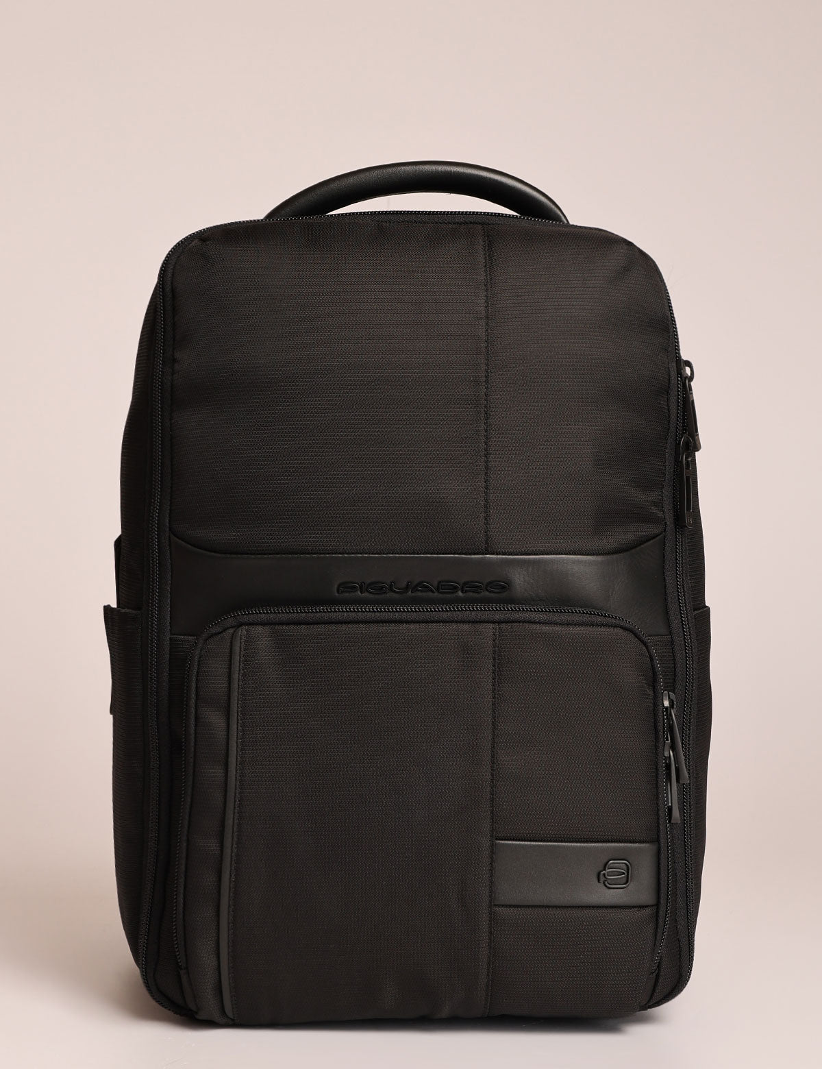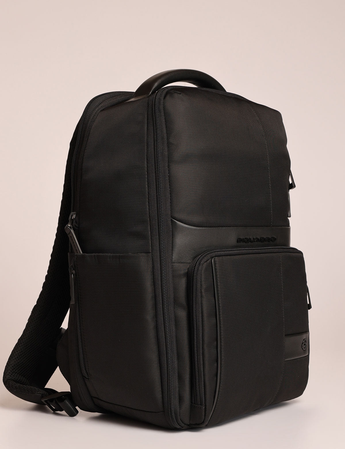 Zaino Piquadro in tessuto tecnico e pelle. Modello ideale sia per il business che per il viaggio grazie agli scomparti interni e alla tasca porta pc e tablet