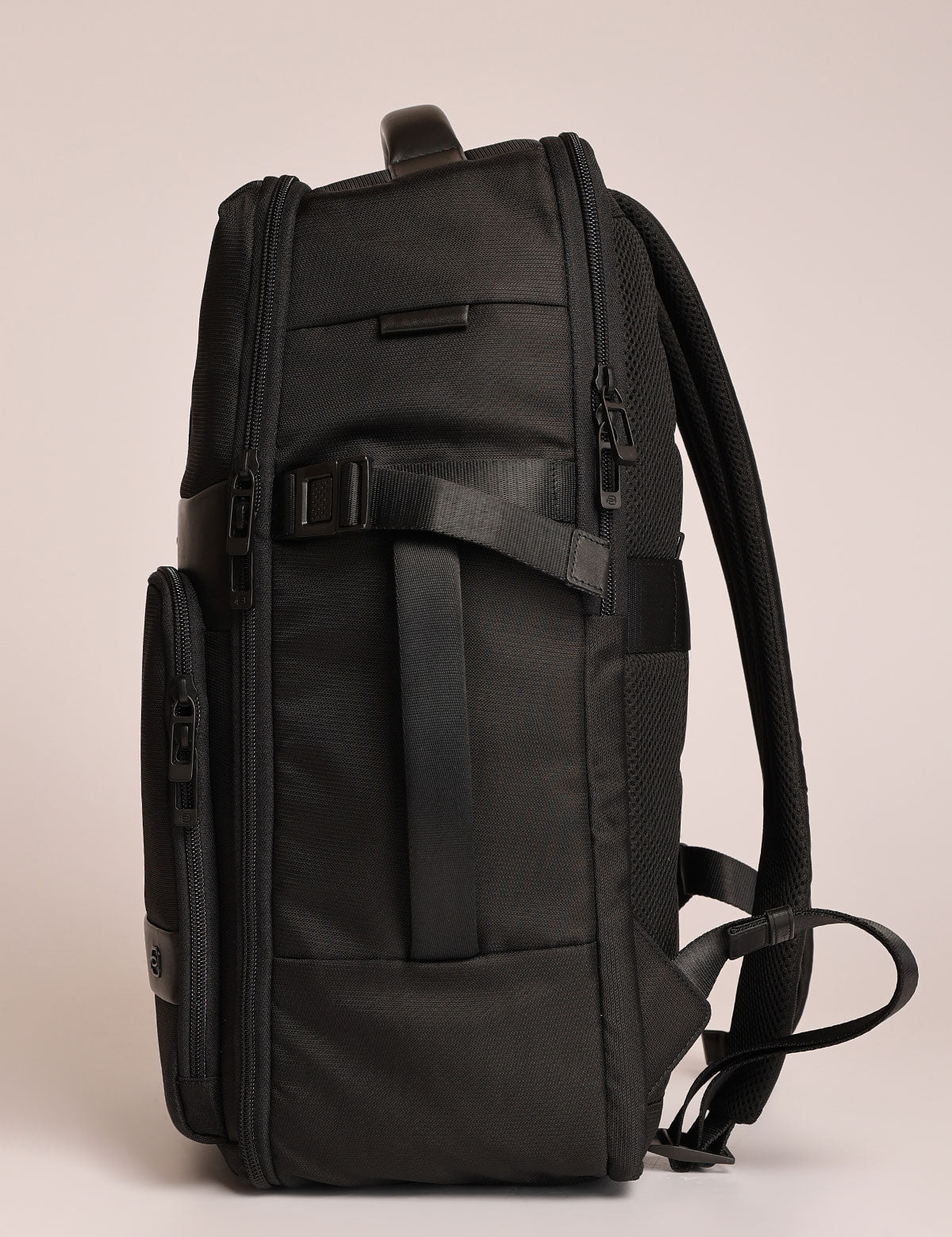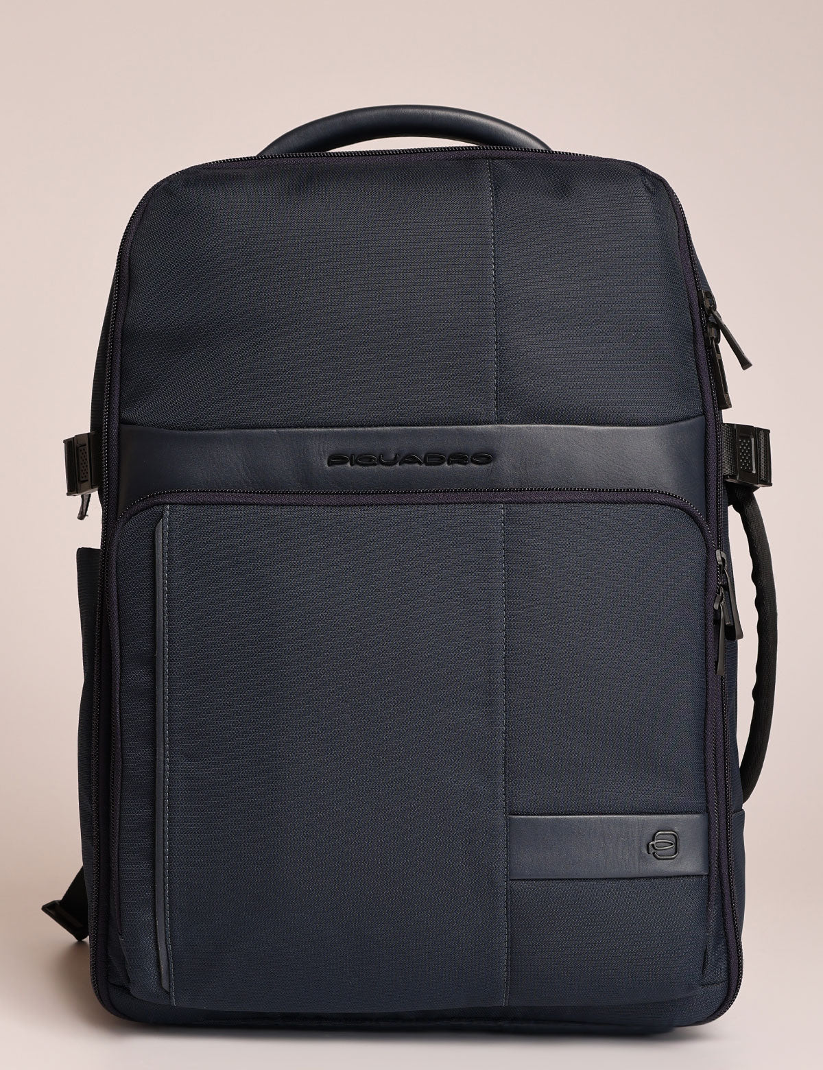 Zaino Piquadro in tessuto tecnico e pelle. Modello ideale sia per il business che per il viaggio grazie agli scomparti interni e alla tasca porta pc e tablet