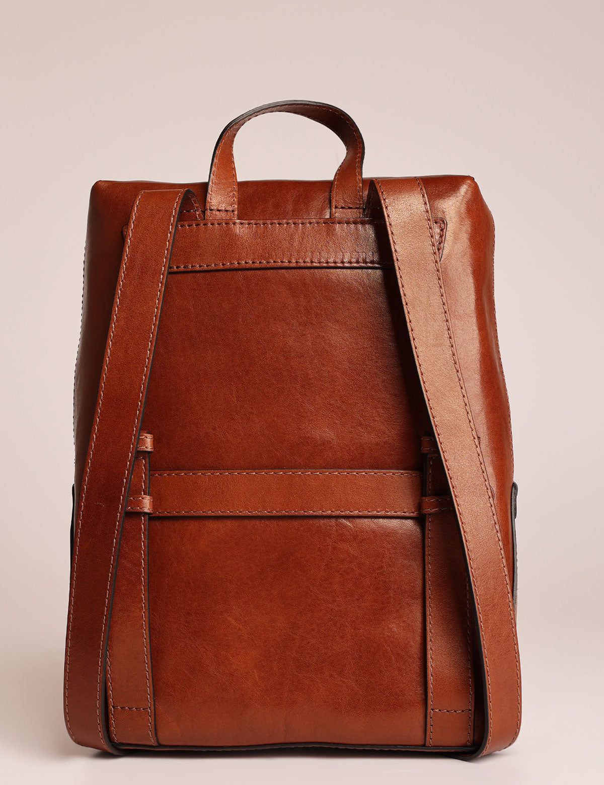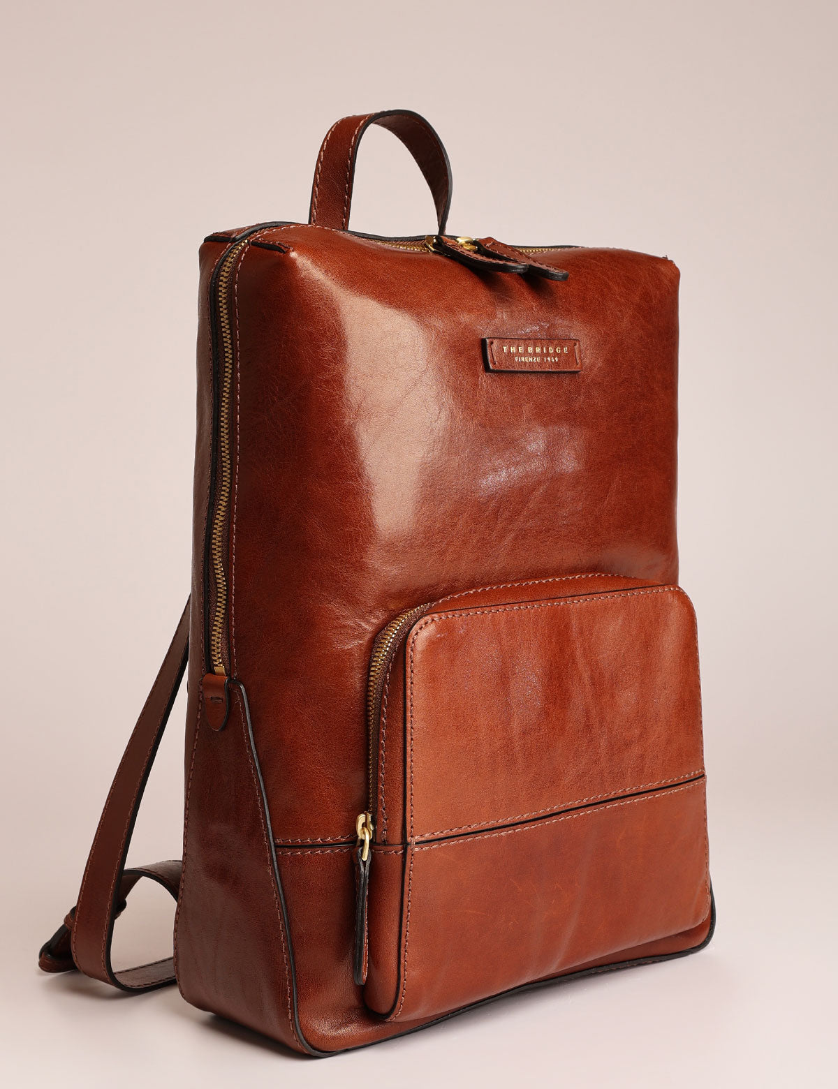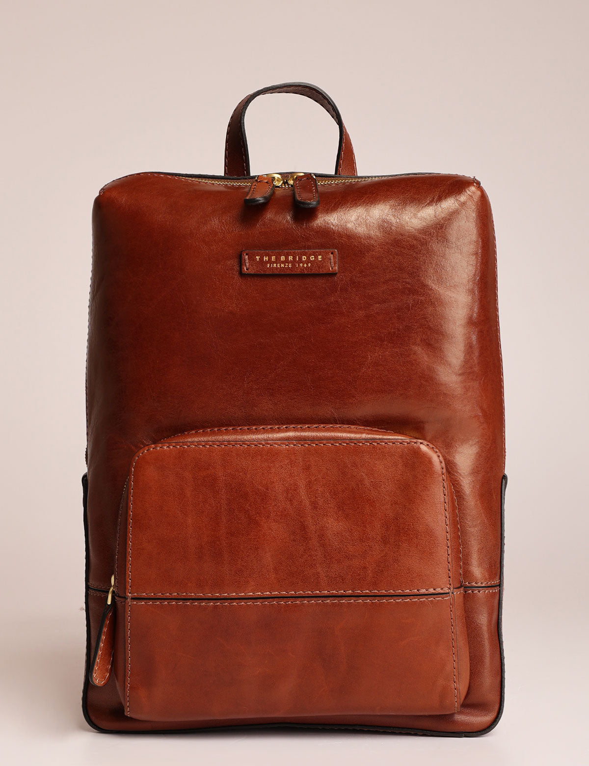 The Bridge Damenrucksack aus Leder, Modell mit großer Fronttasche und hinterer Schlaufe zur Befestigung an einem Trolley