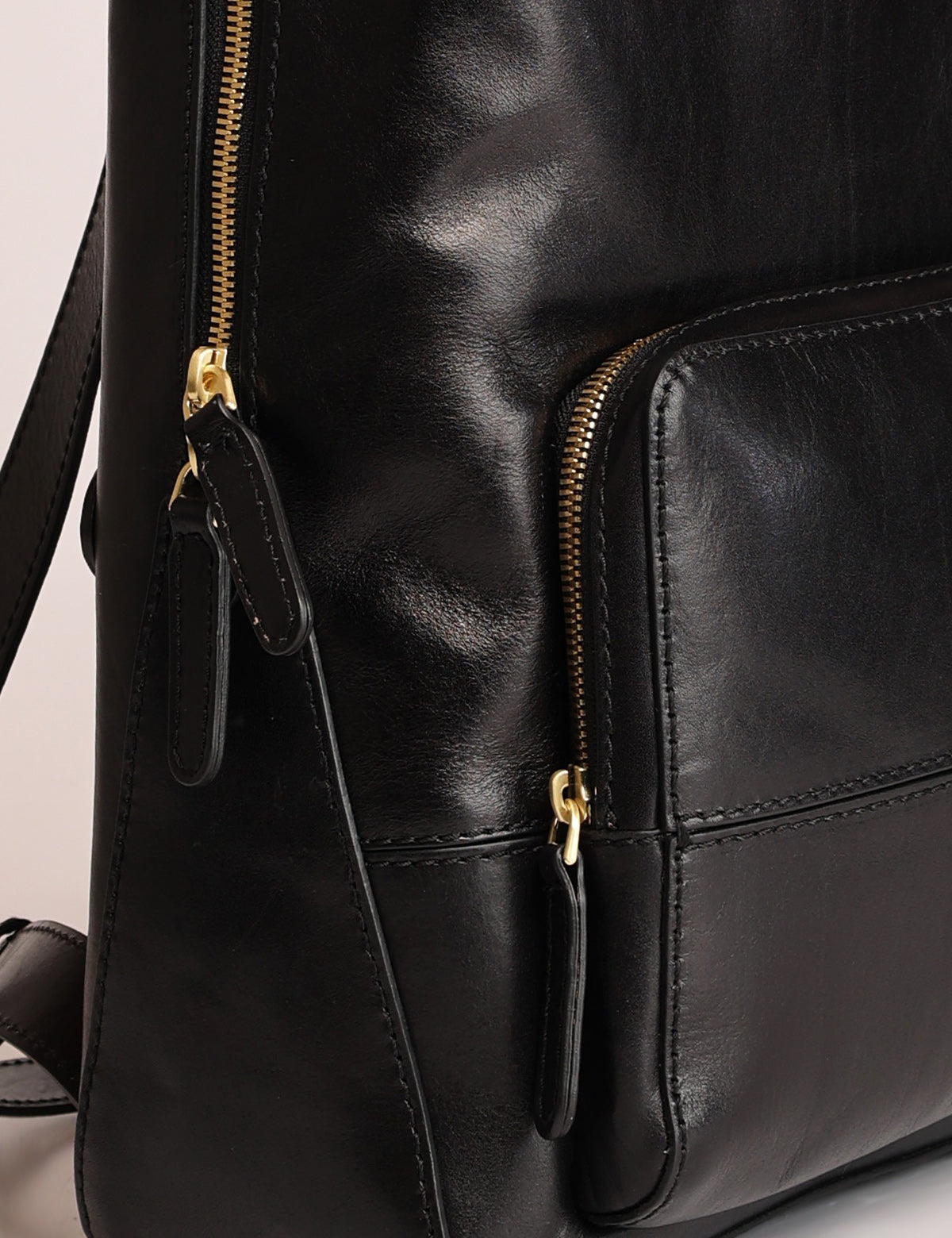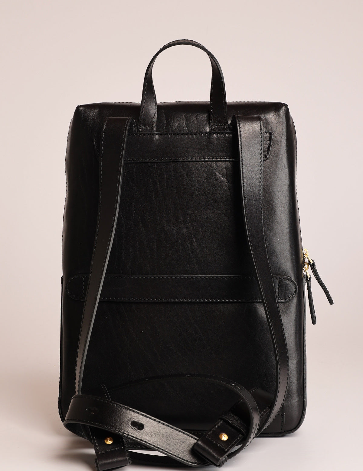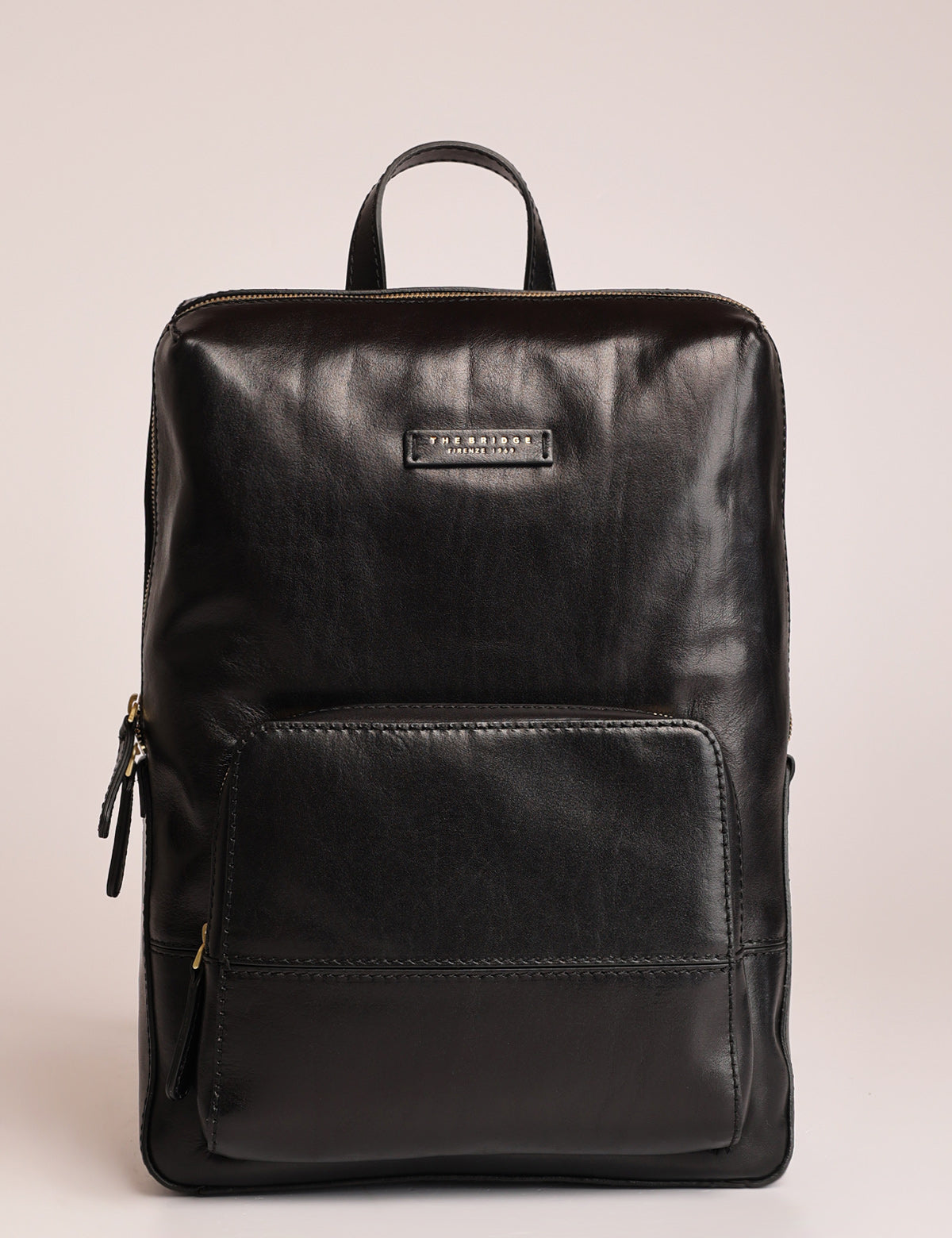 The Bridge Damenrucksack aus Leder, Modell mit großer Fronttasche und hinterer Schlaufe zur Befestigung an einem Trolley