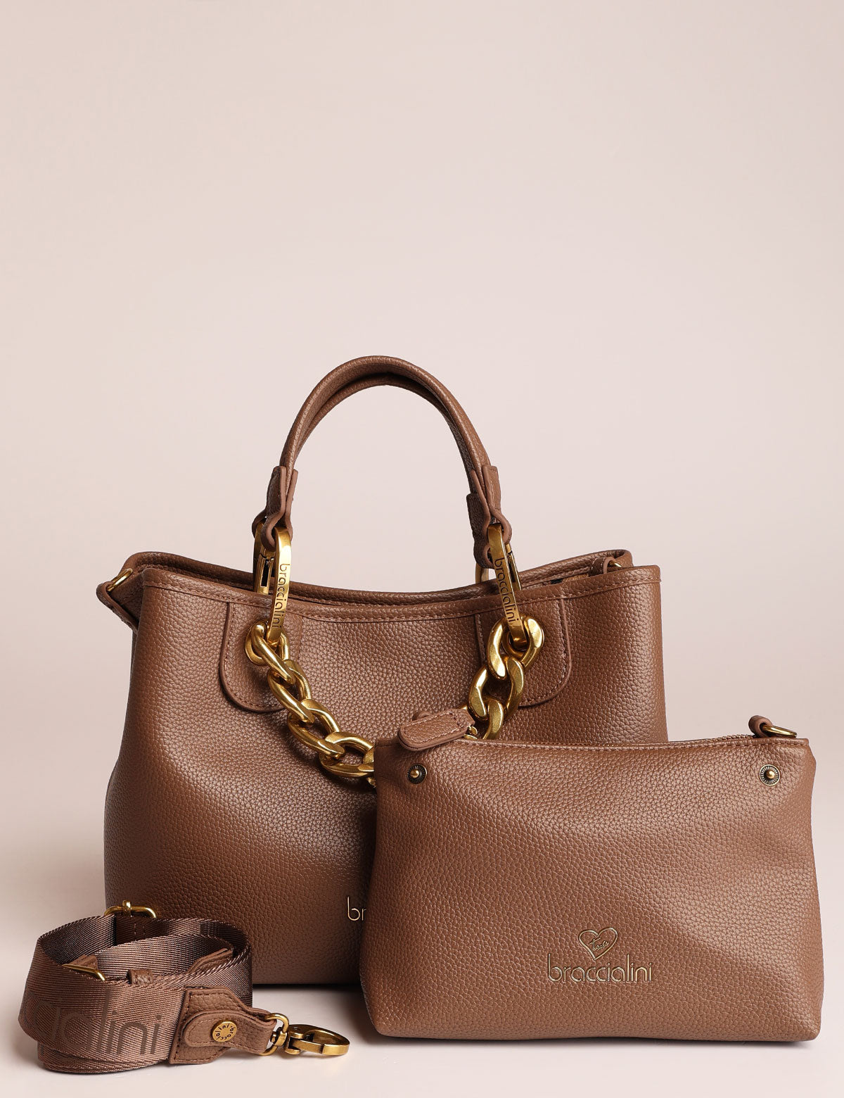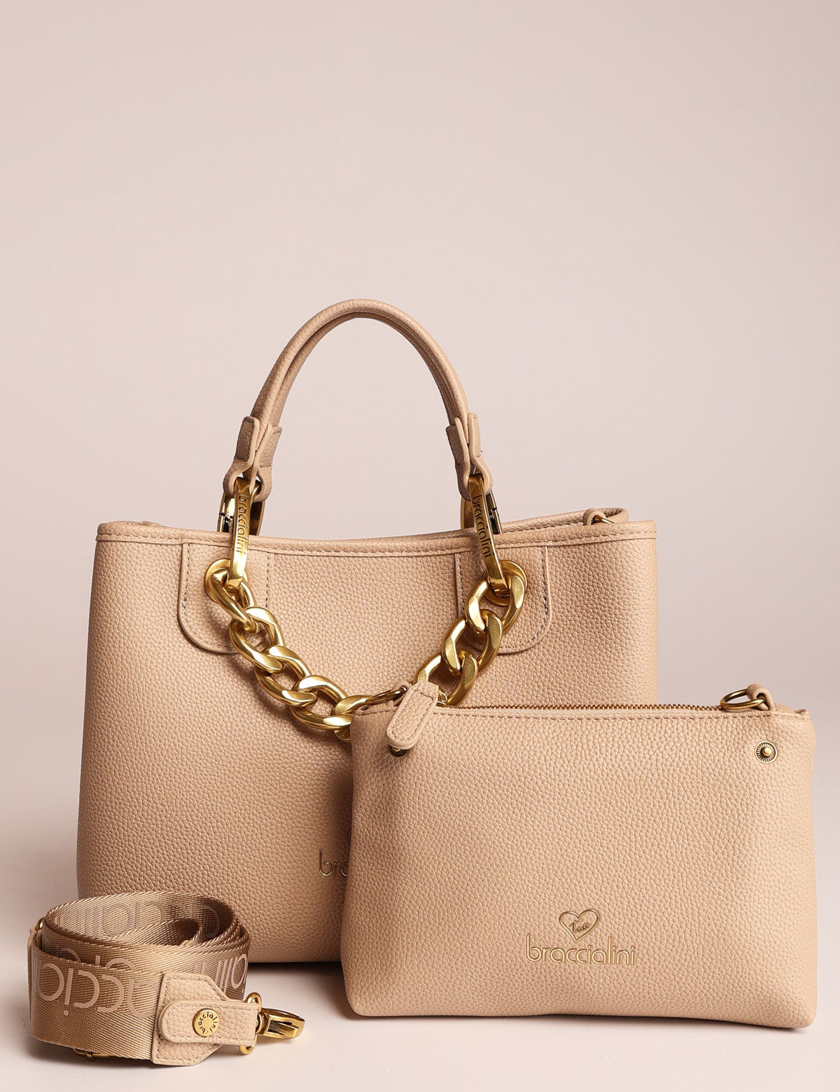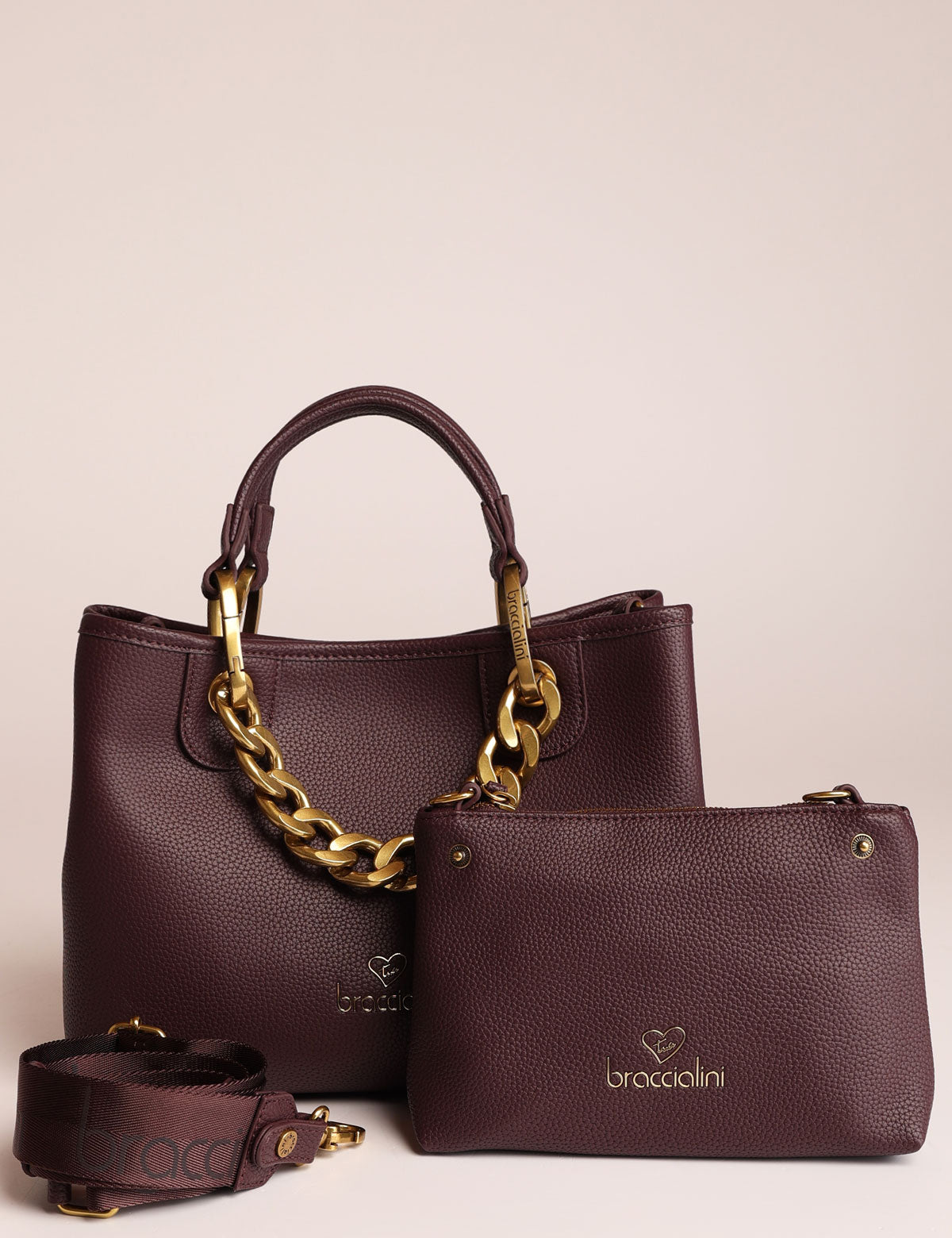 Braccialini women's handbag with chain handles and removable pouch that can also be worn as a shoulder bag