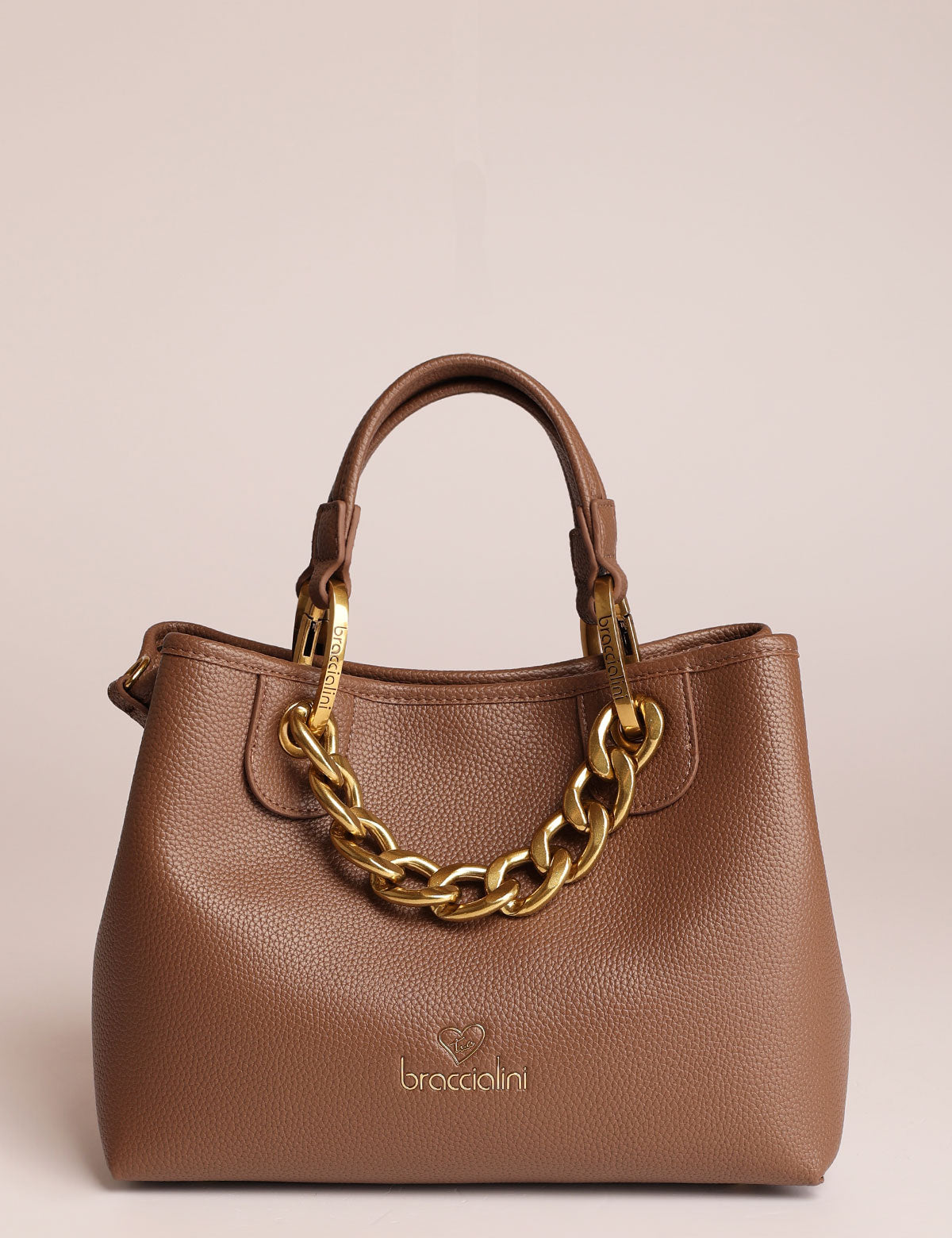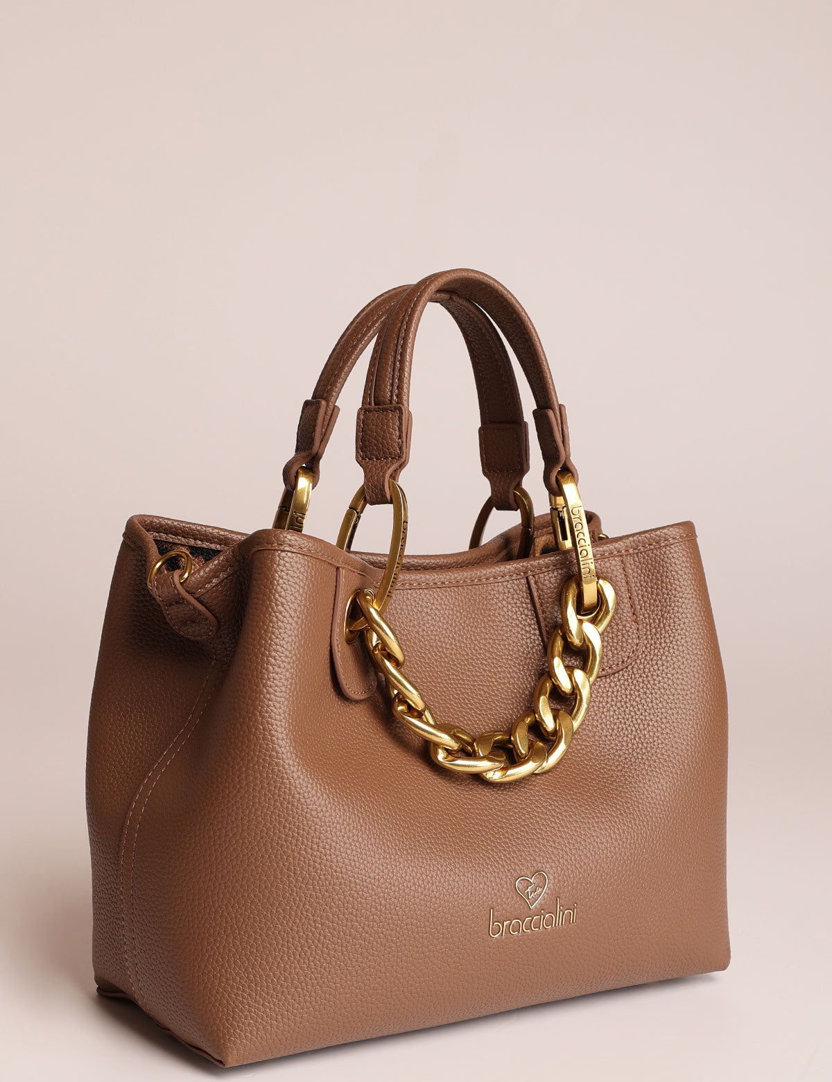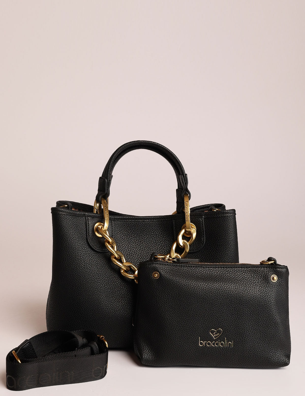 Braccialini women's handbag with chain handles and removable pouch that can also be worn as a shoulder bag