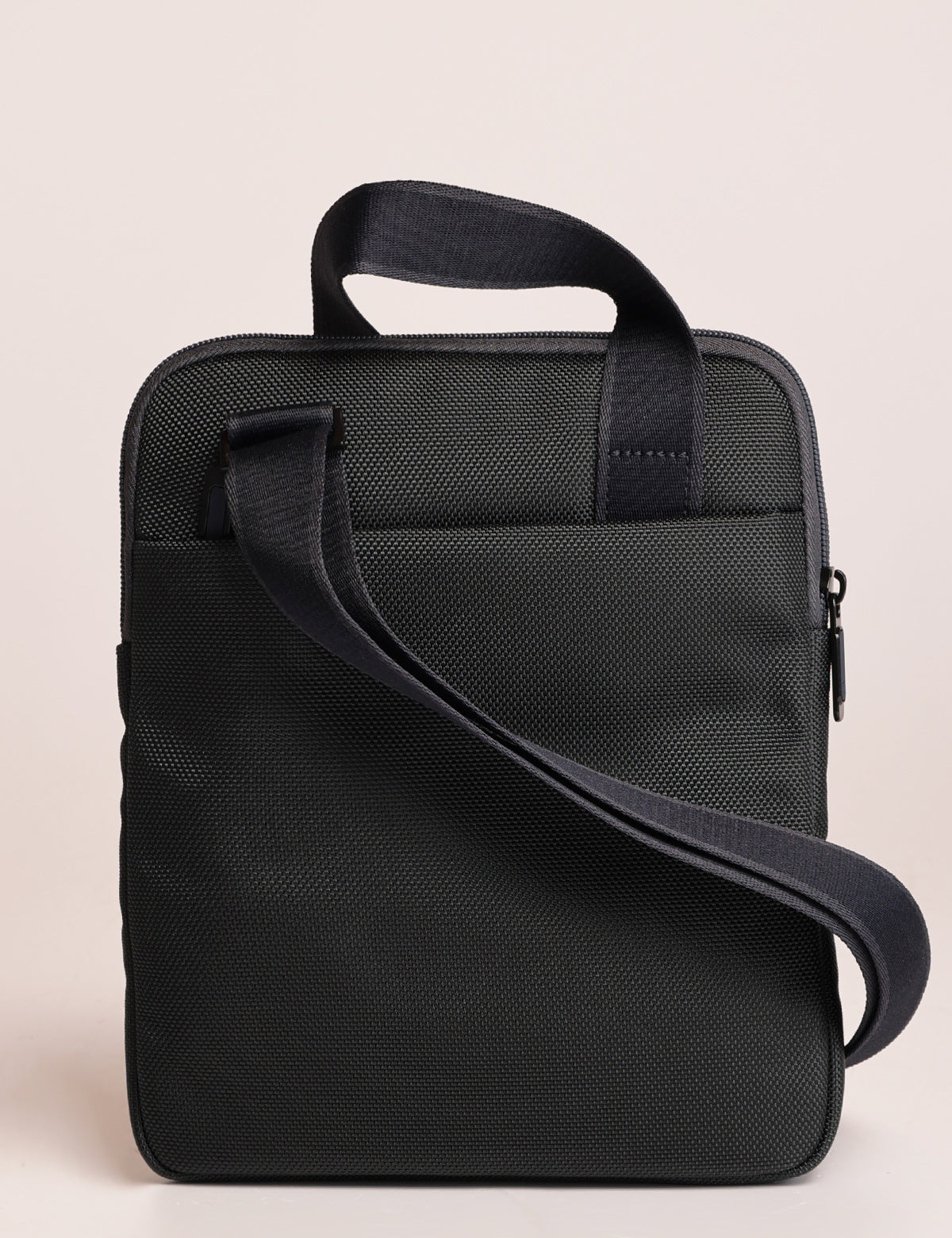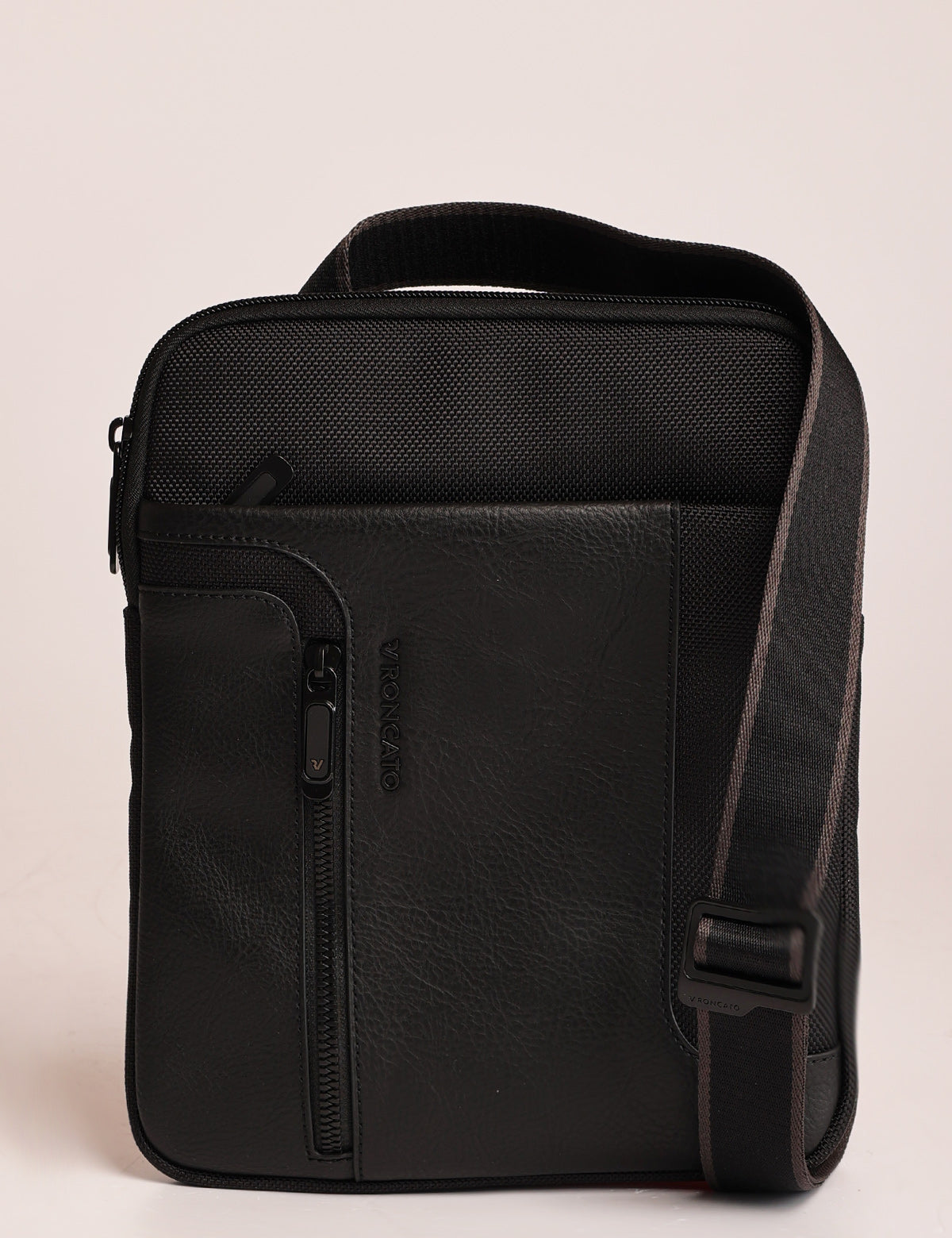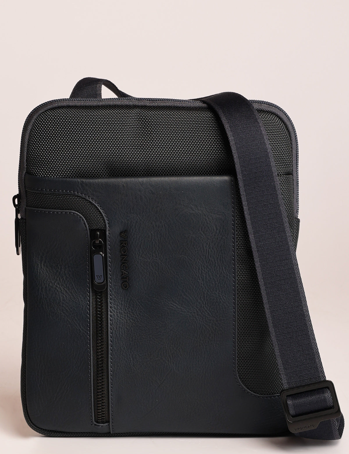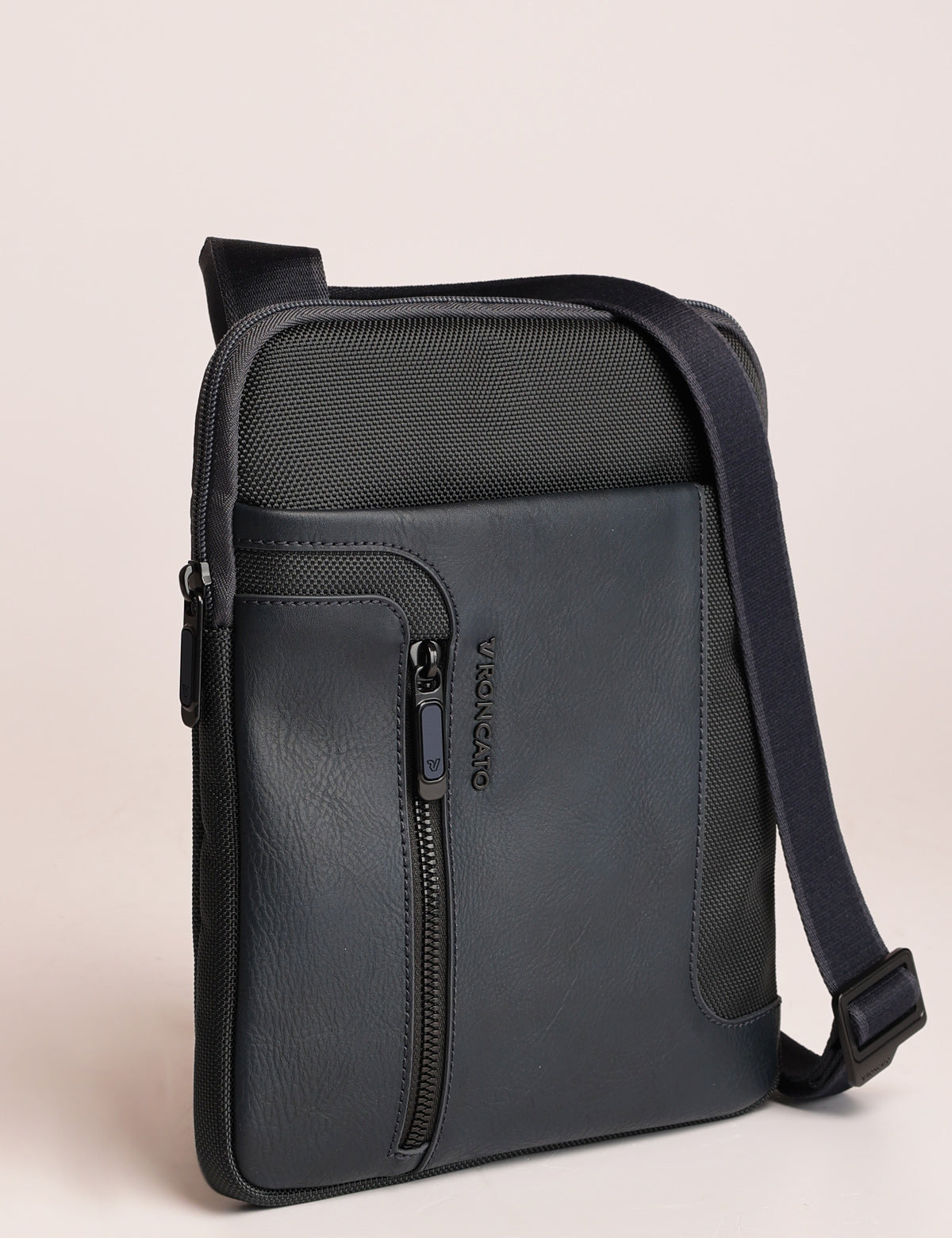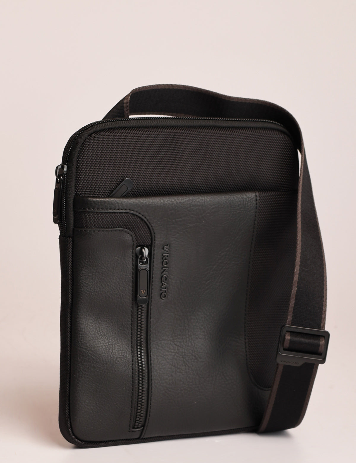 Roncato slim men's shoulder bag in technical fabric and leather, with iPad slot