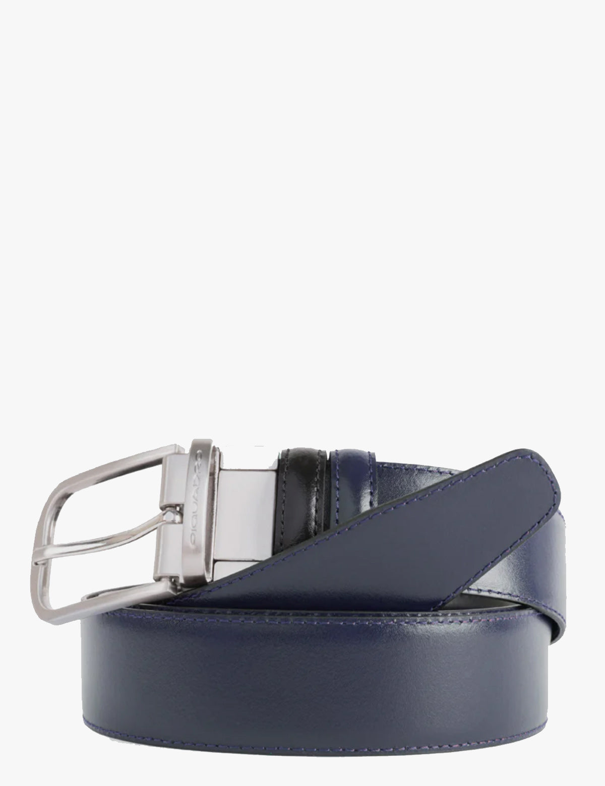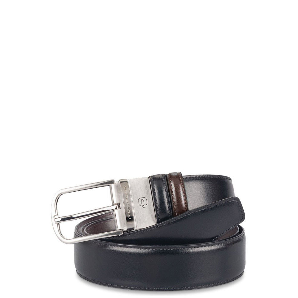Piquadro men's belt made of double-face leather in black on one side and dark brown on the other