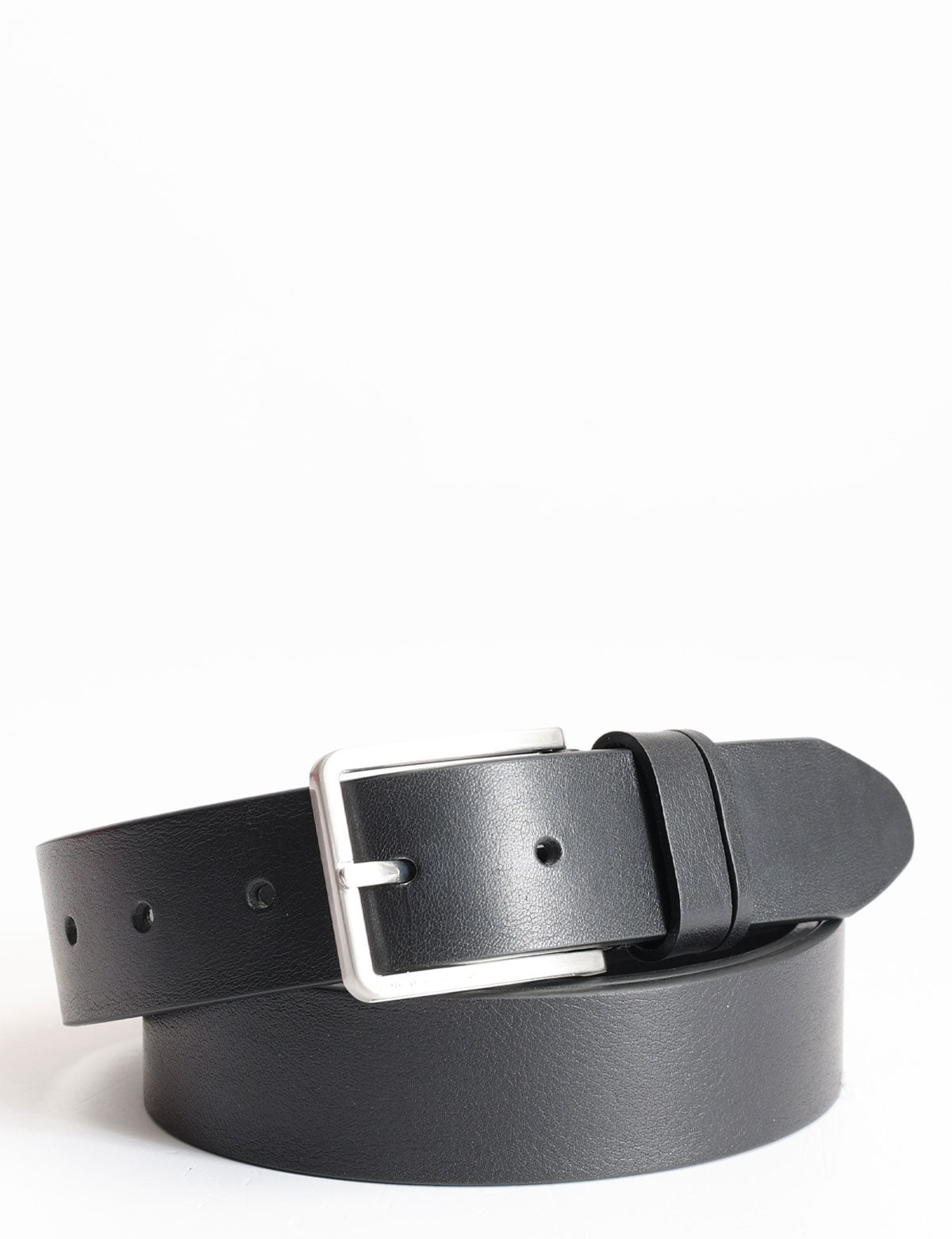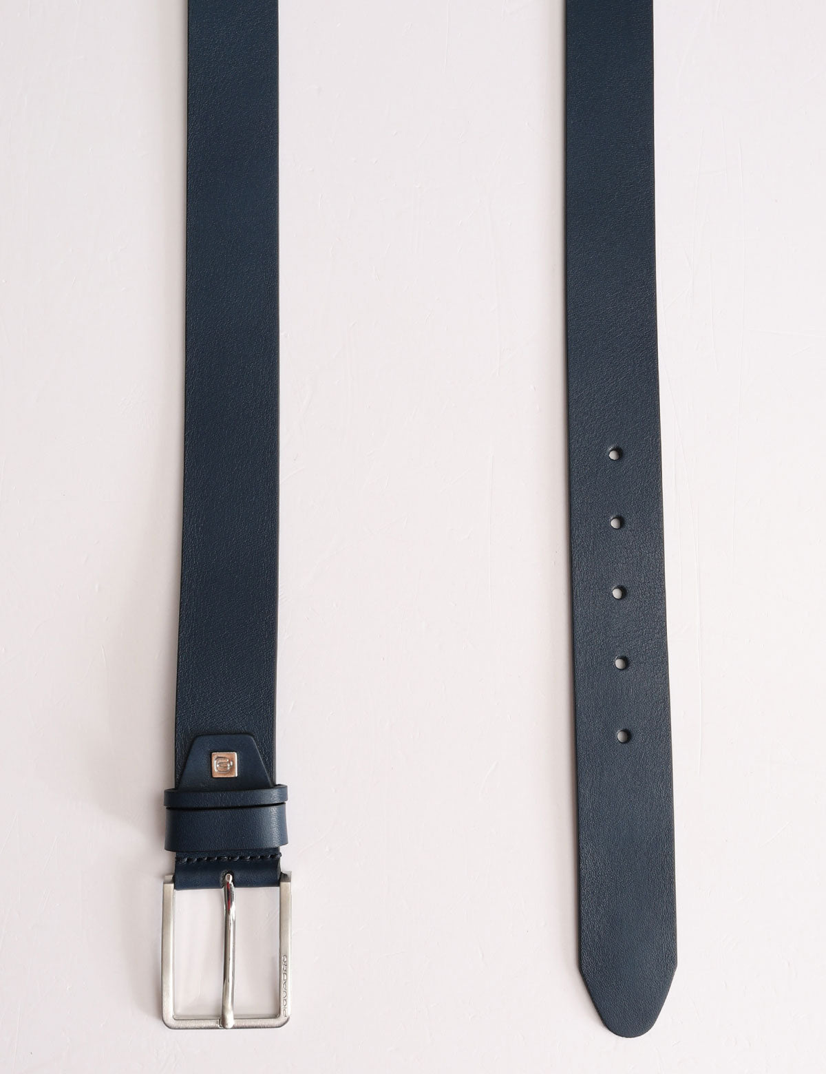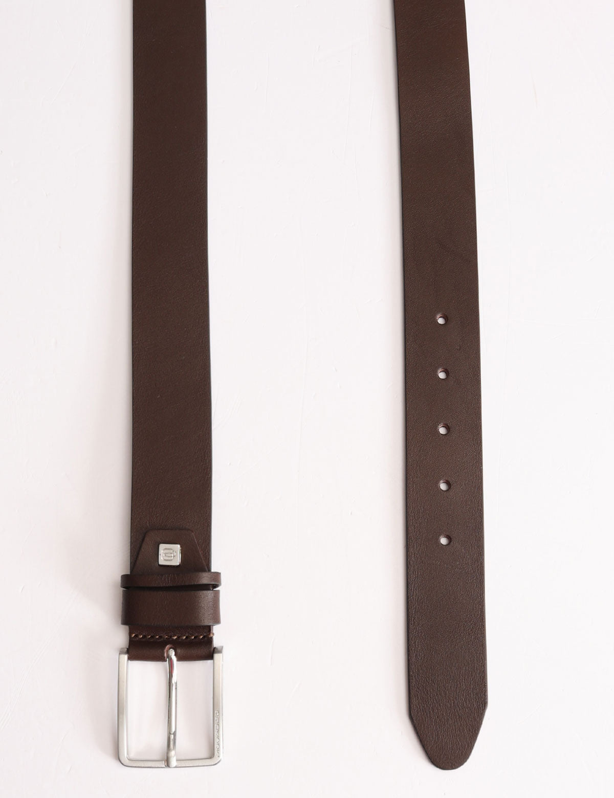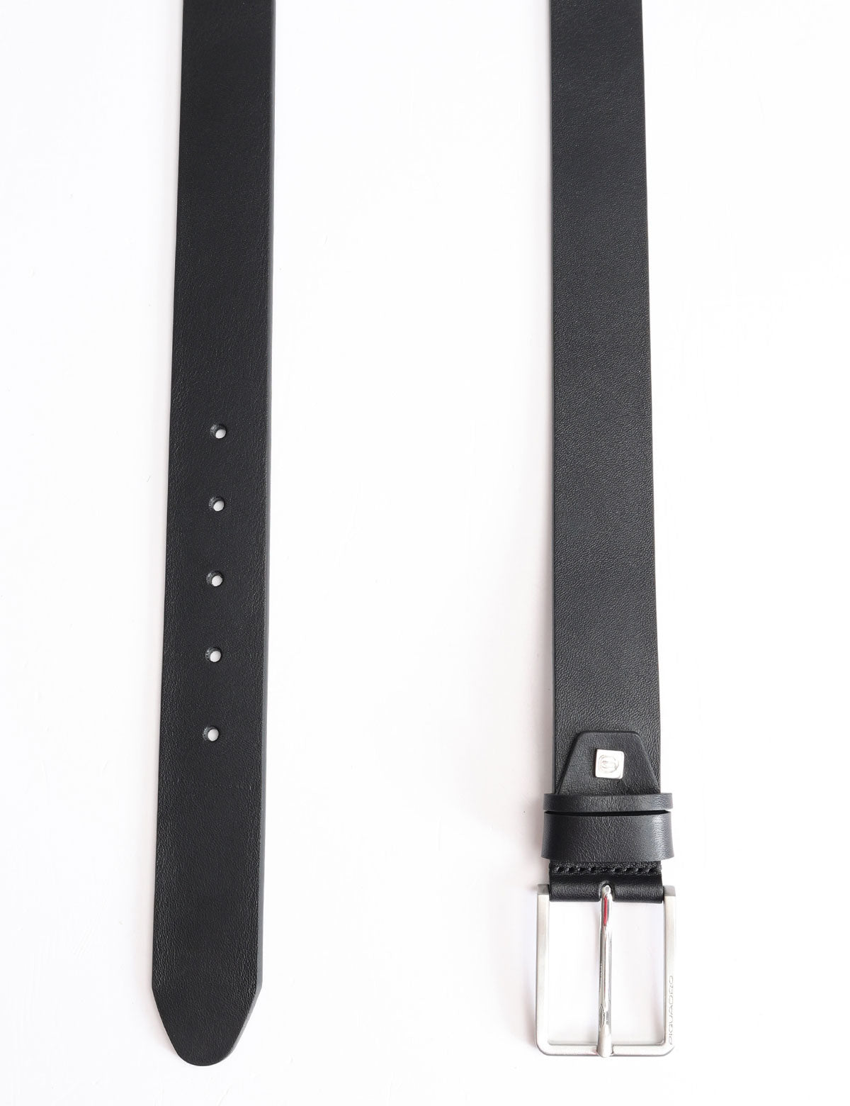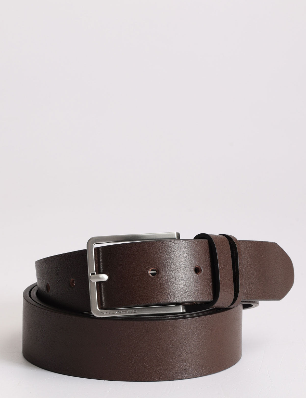 Piquadro men's belt made of leather with steel-colored square buckle and raw-cut edges