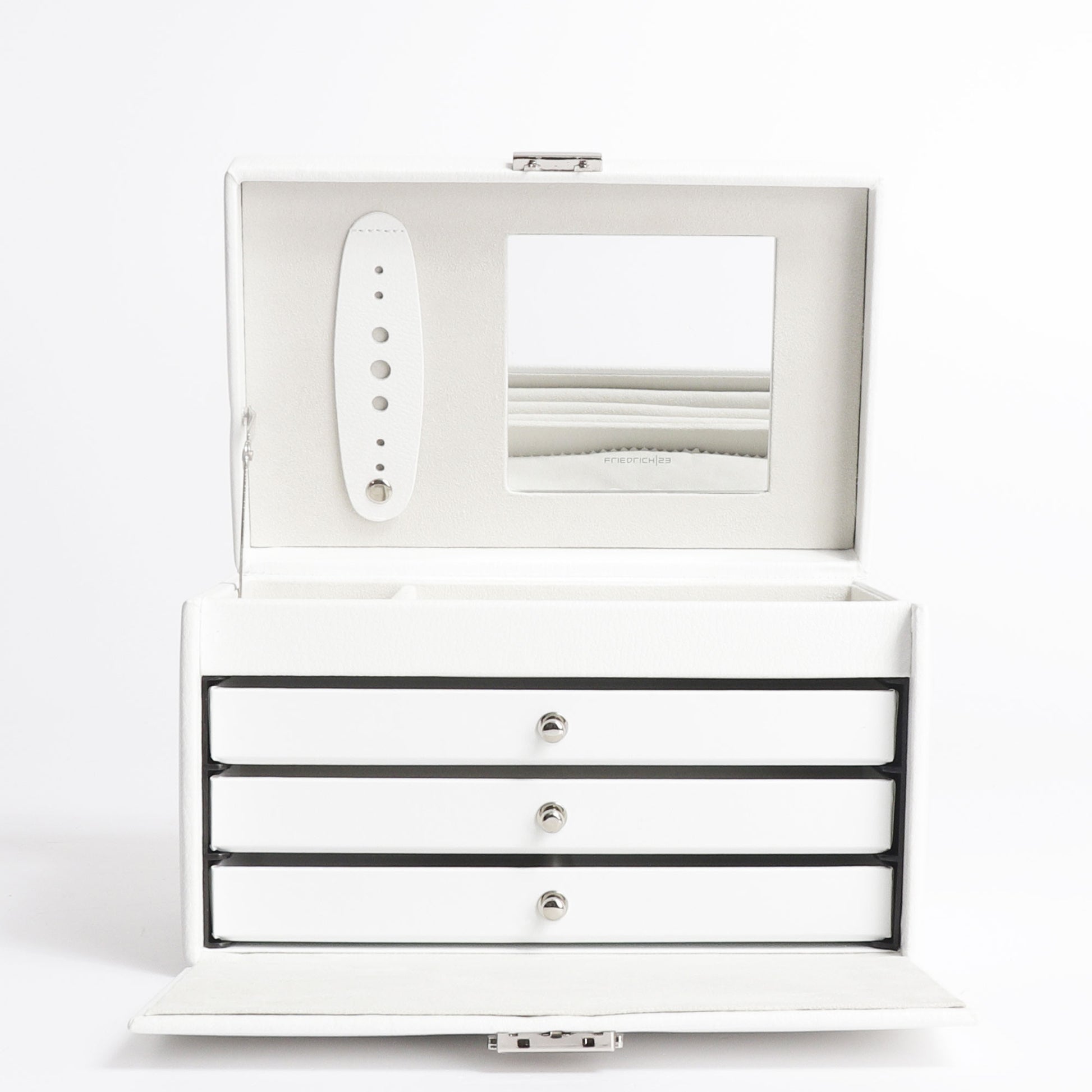 Friedrich23 multi-compartment jewelry box with drawers and internal mirror. Model with upper handle