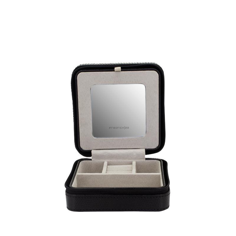 Friedrich23 jewelry box ideal for traveling thanks to the practical zip closure, internal mirror and compartments where you can safely store your jewelry