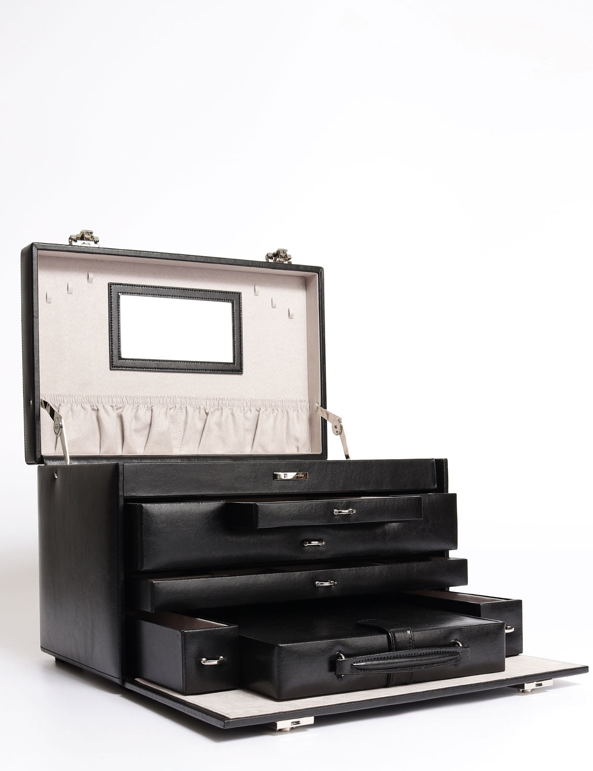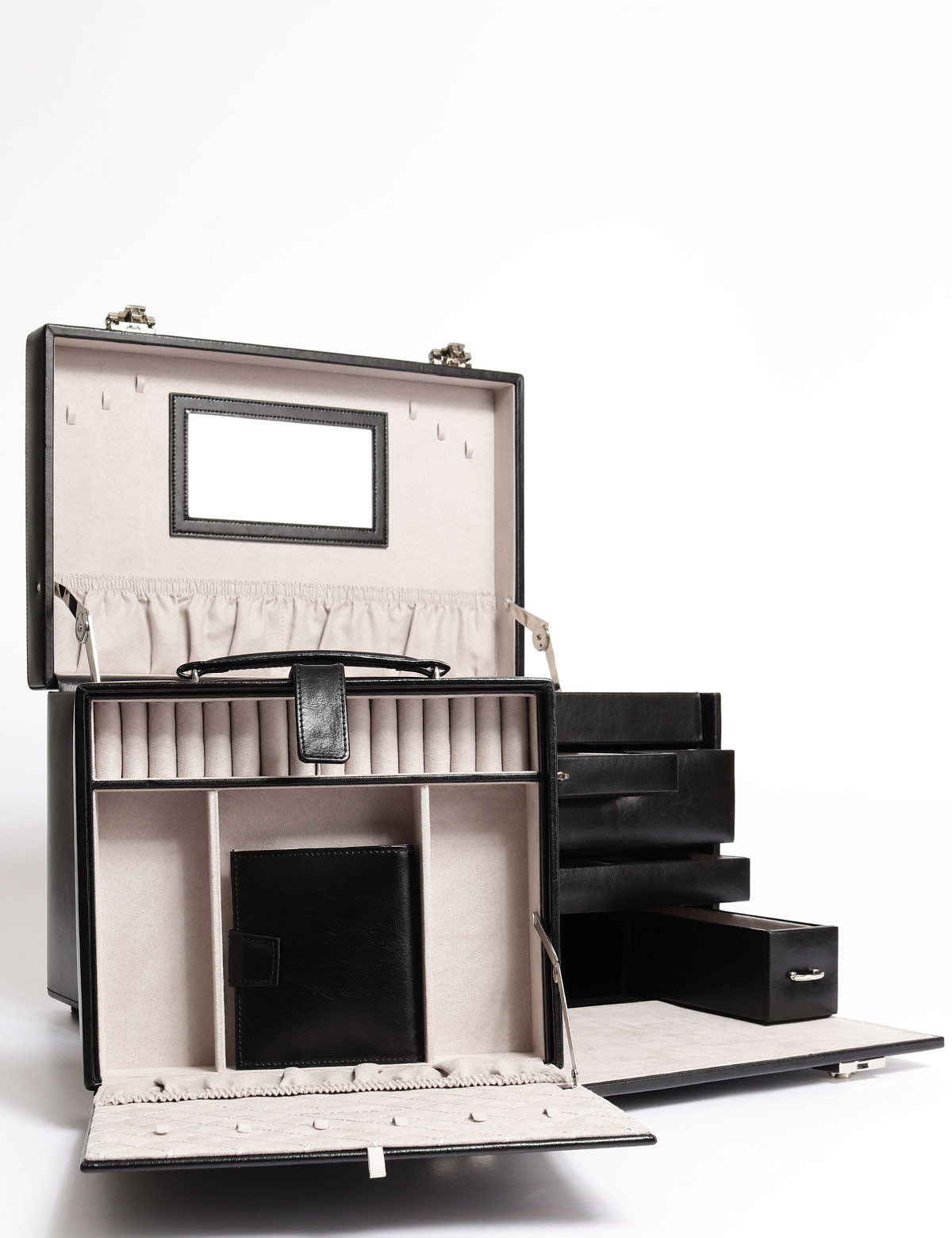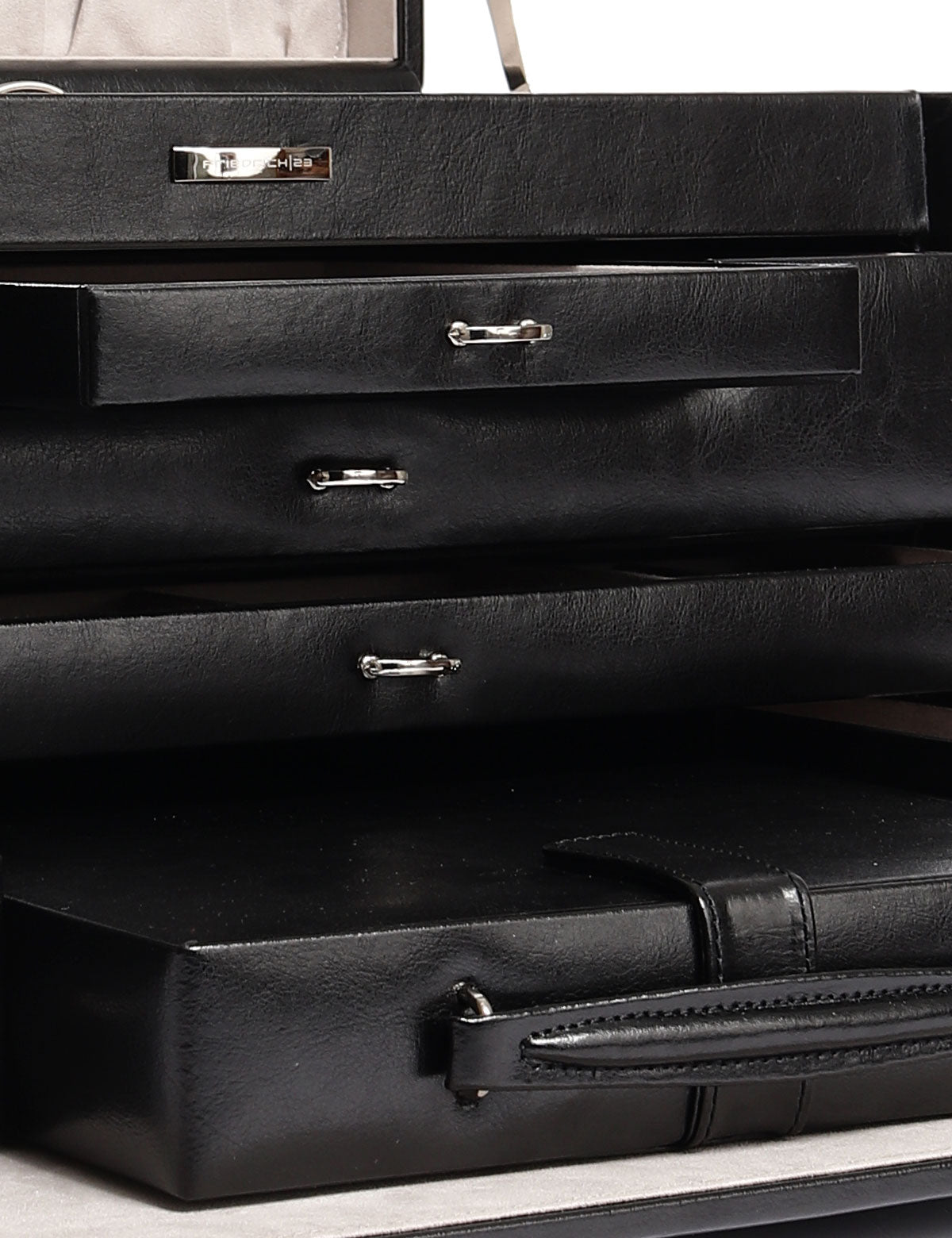 Friedrich23 large jewelry and watch box, equipped with several drawers and removable cases to take on trips. Model handmade in genuine leather