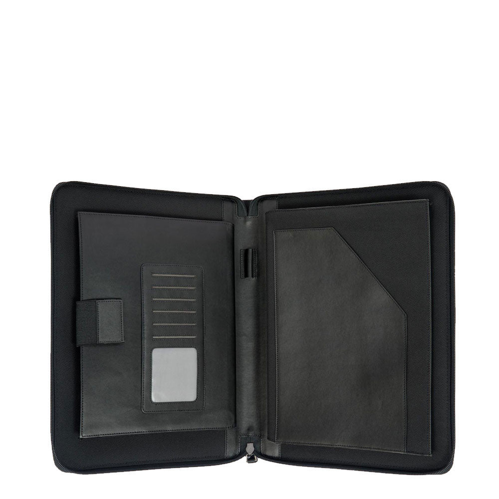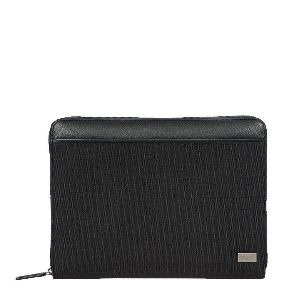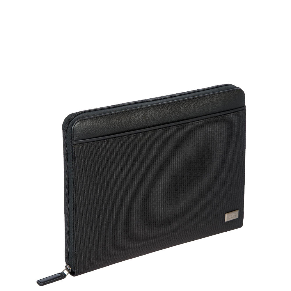 Bric's document holder with zip closure and made of leather and technical fabric. The flat design allows the accessory to be stored in any bag or suitcase