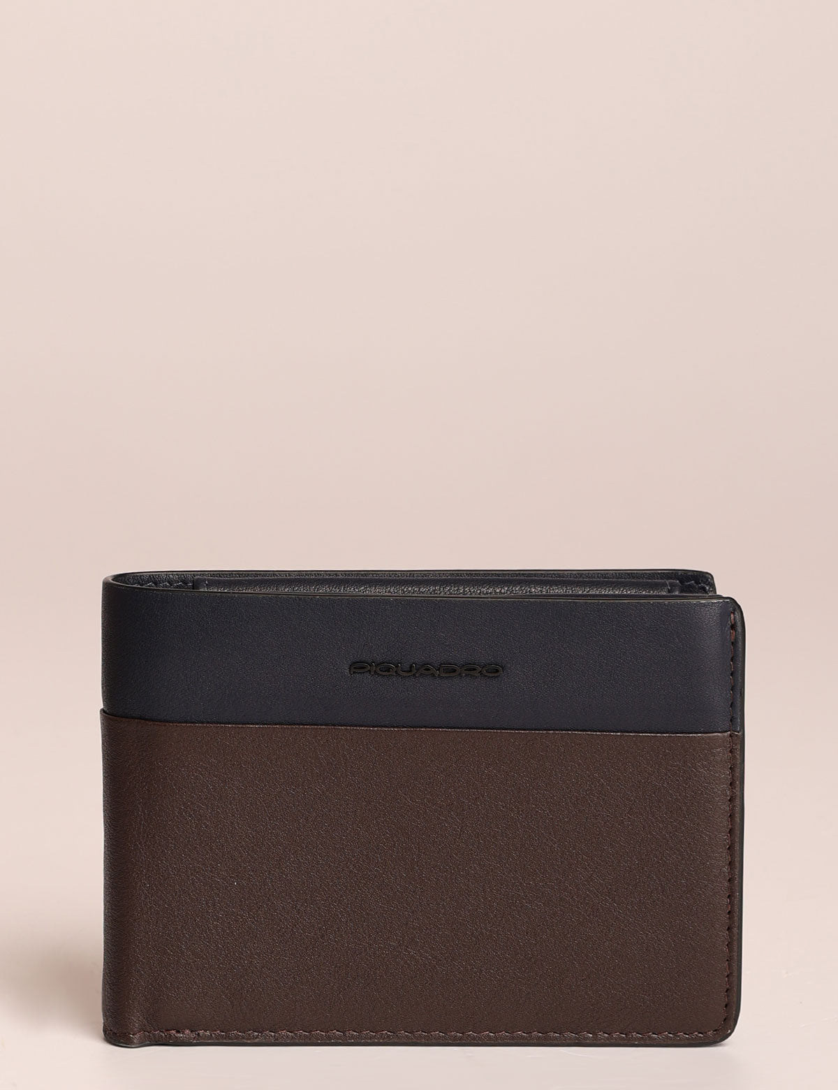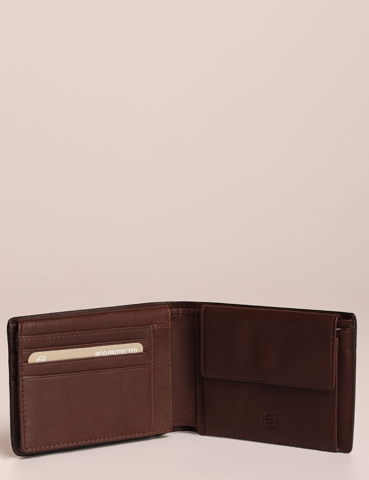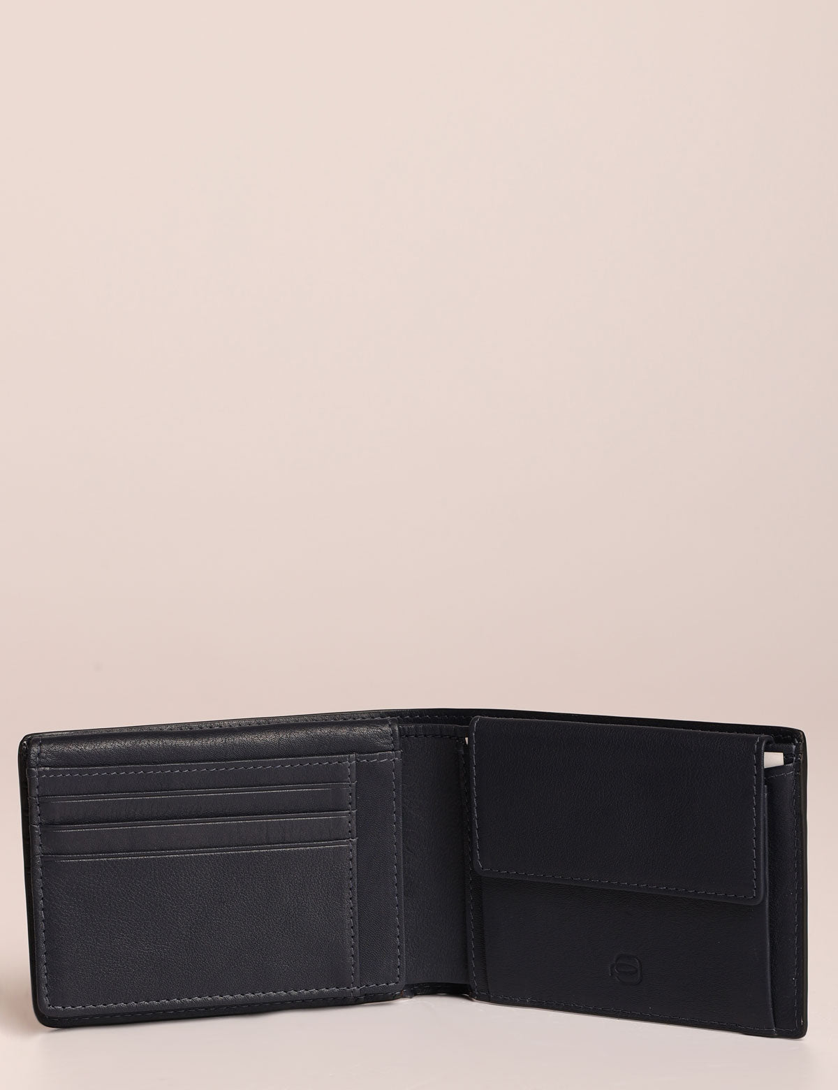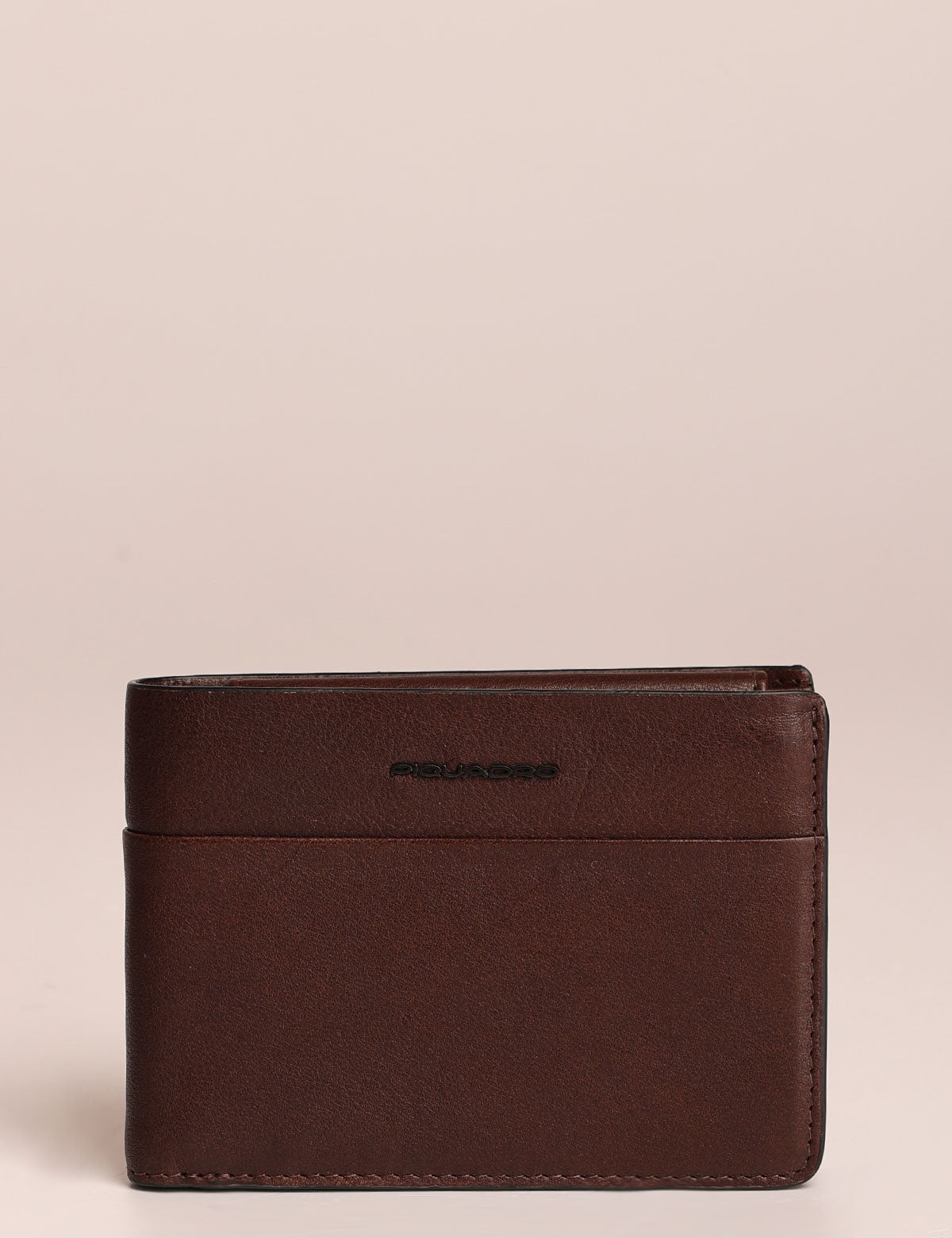 Portafogli da uomo Piquadro modello in pelle, dotato di volantino porta carte e portamonete con bottone a pressione