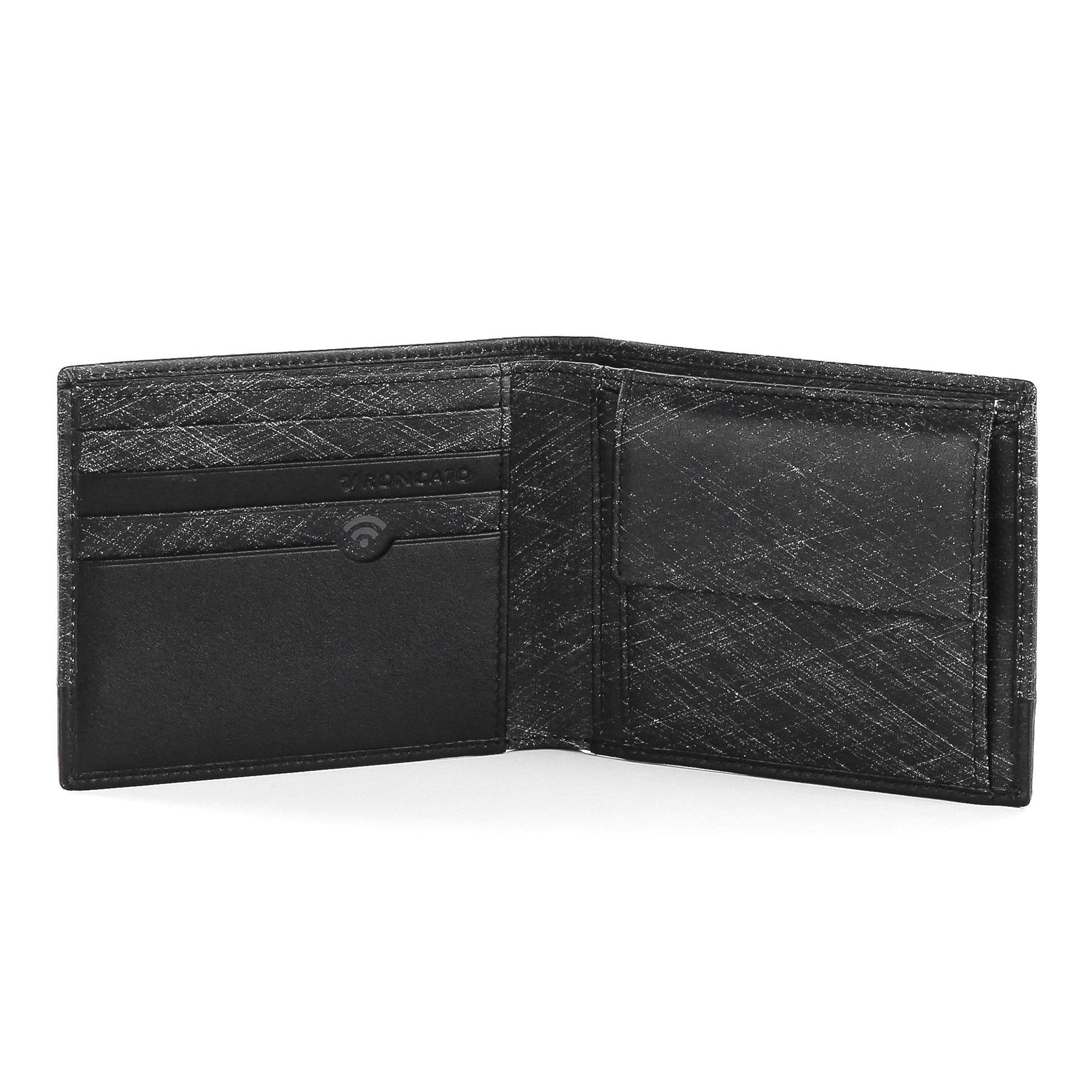 Roncato men's wallet made of leather with card slots and coin pocket. The model is equipped with an RFID protection system