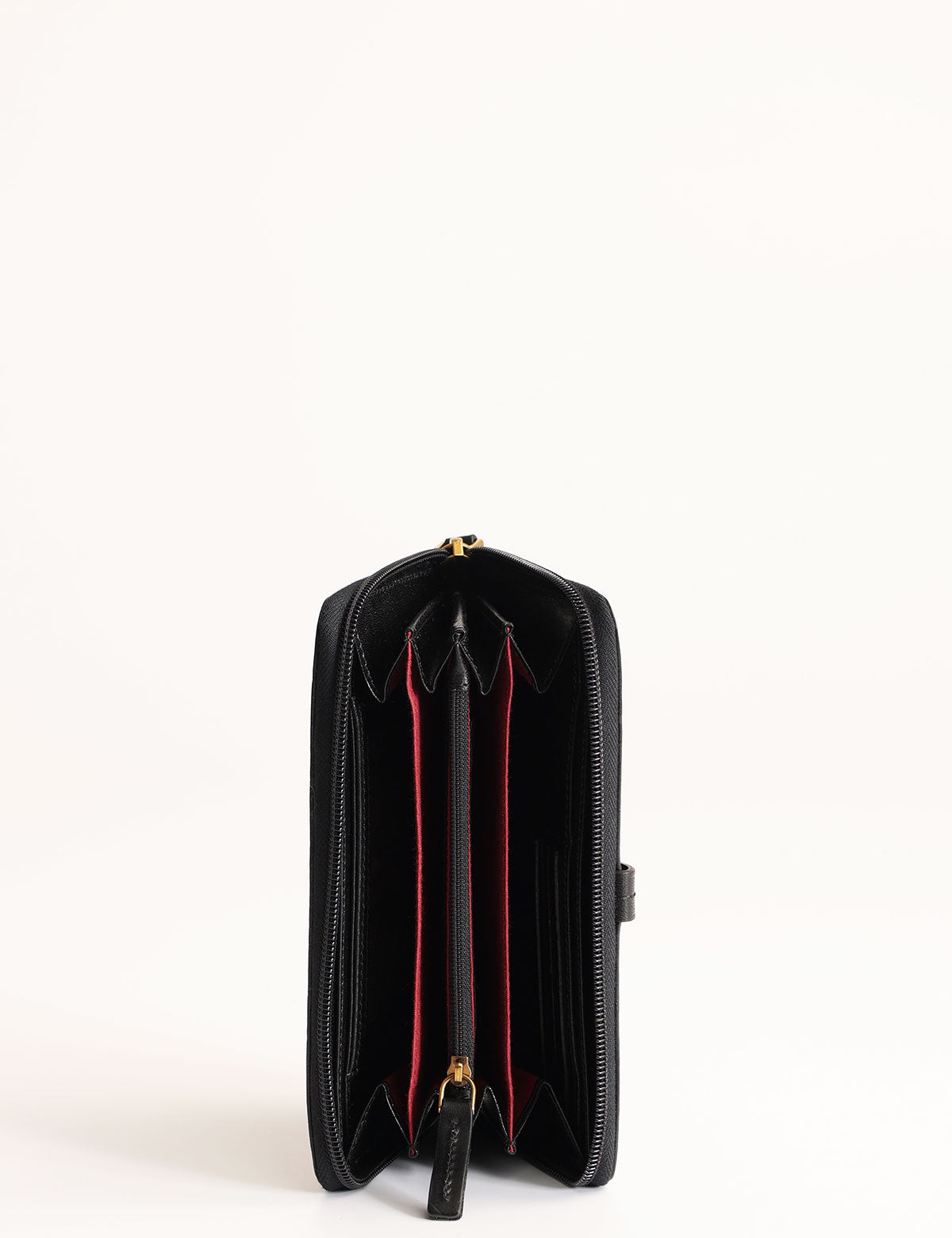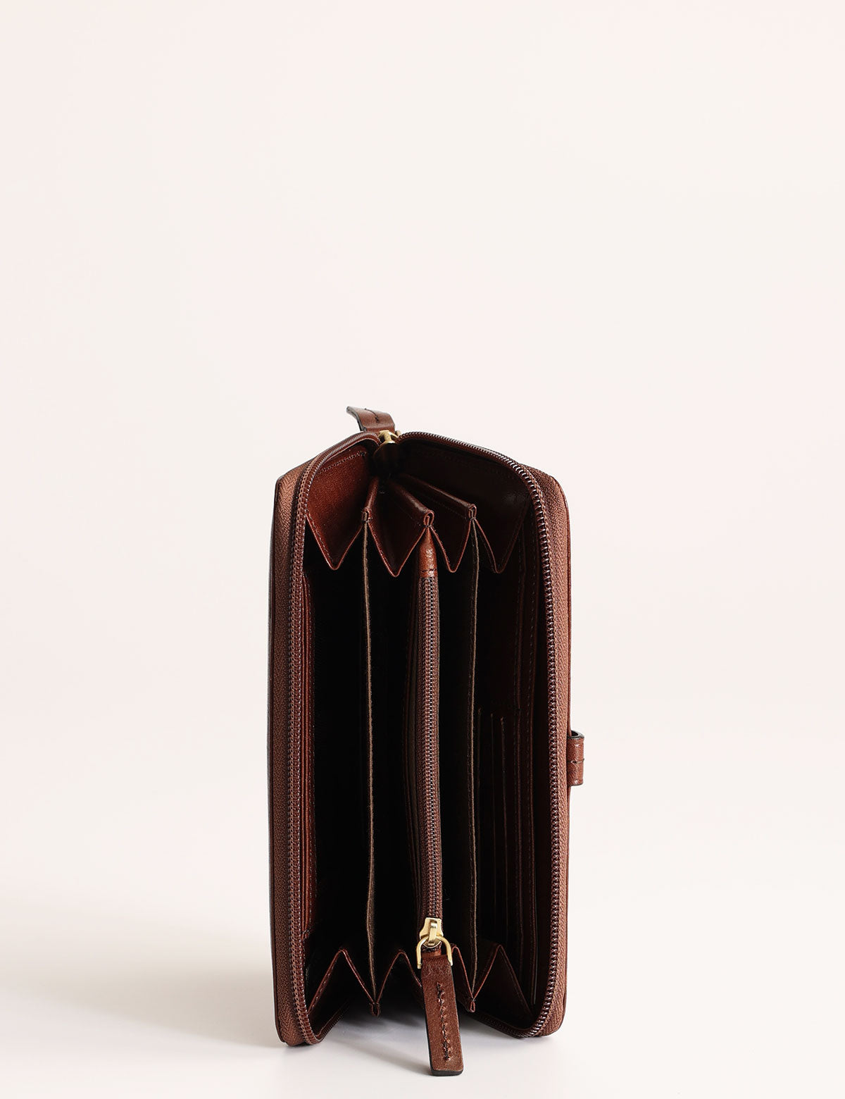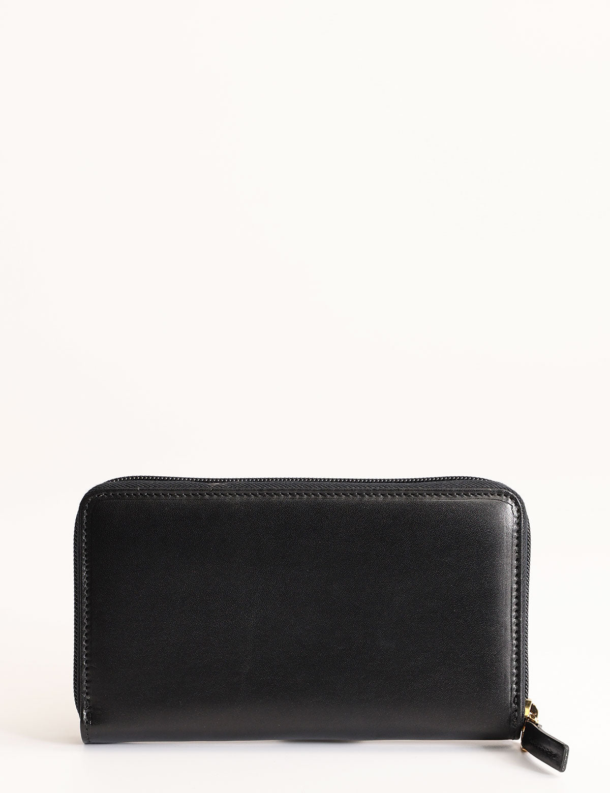 Leather wallet with zip closure and bellows opening. Inside the classic and elegant model there is a coin purse with zip closure, credit card slots, a document compartment and compartments for banknotes.