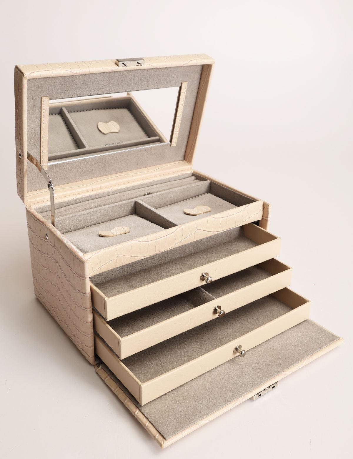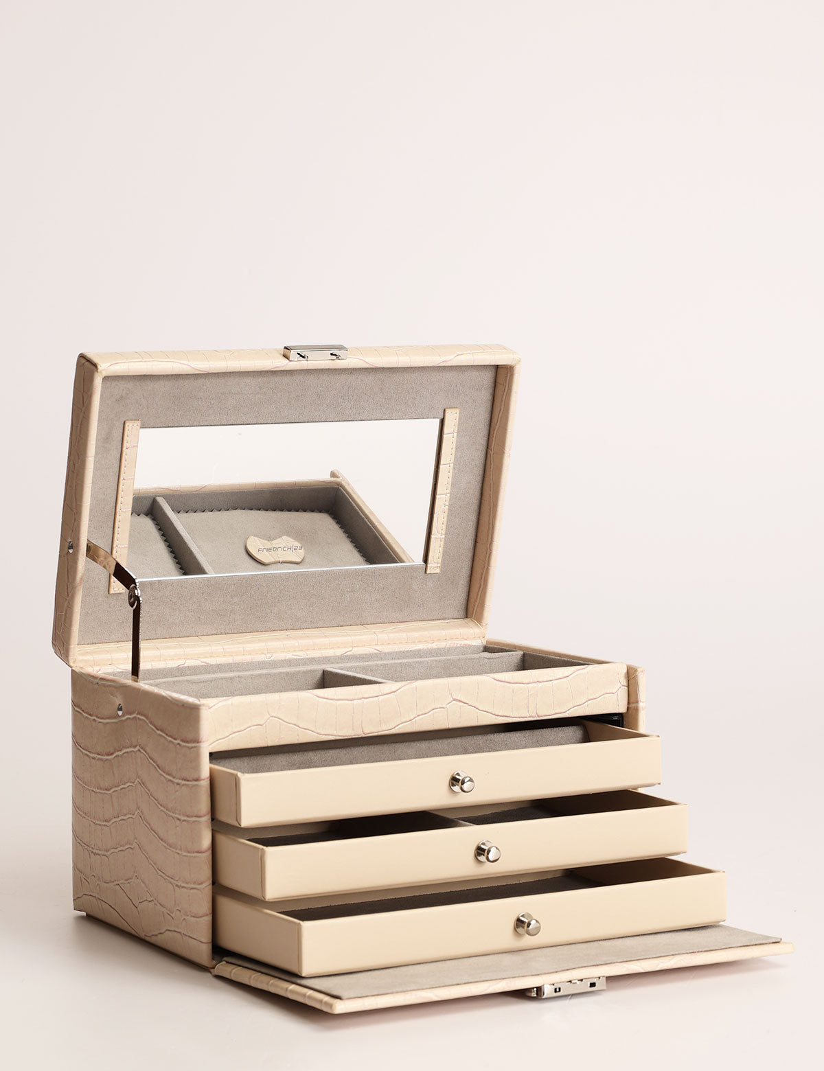 Friedrich23 jewelry box suitable for travel thanks to the top handle and multiple compartments to neatly store your jewelry