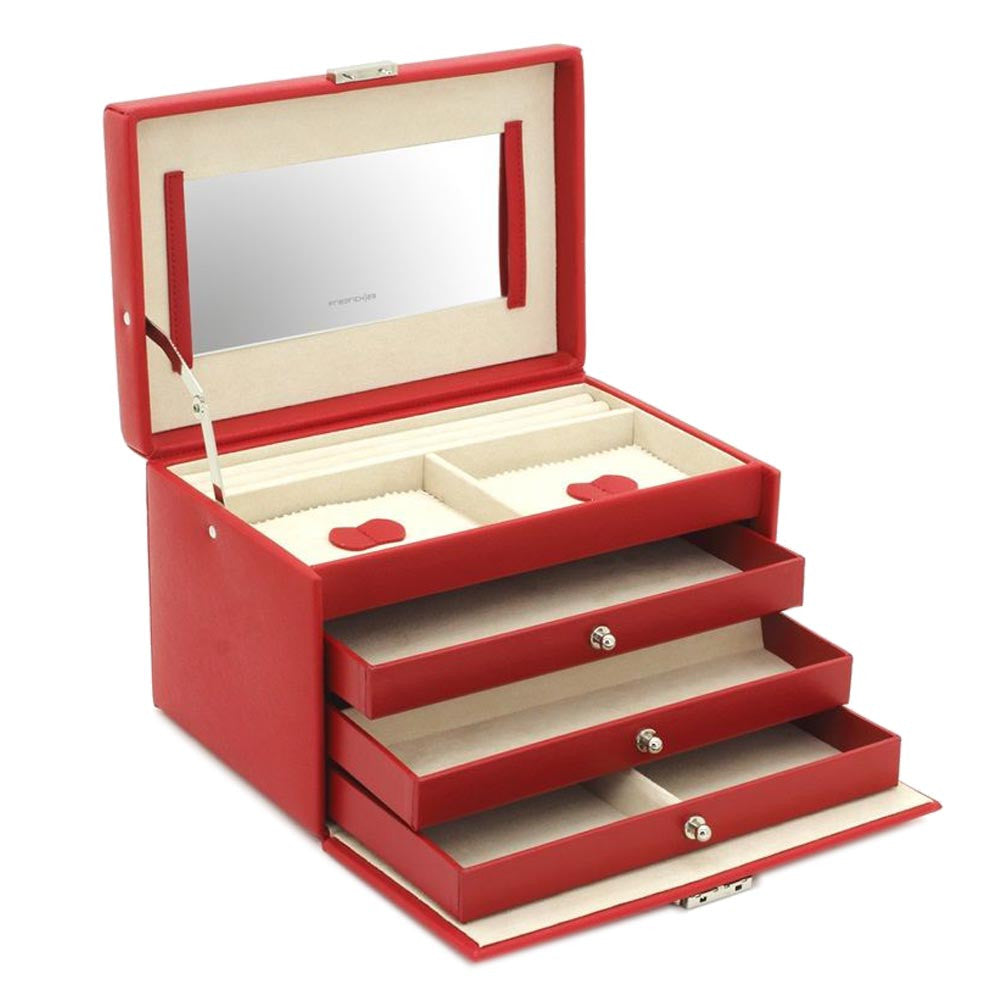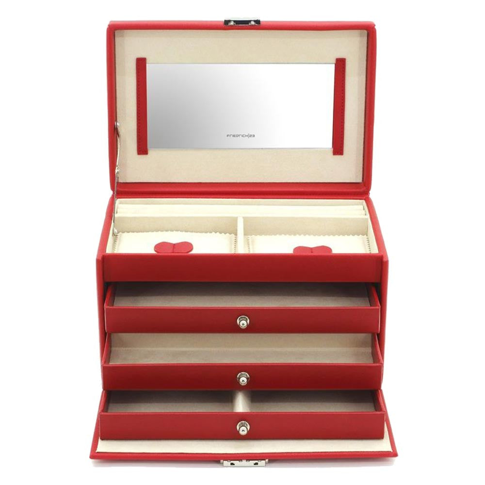 Friedrich23 Jewelry Box with Handle and 3 Drawers Red