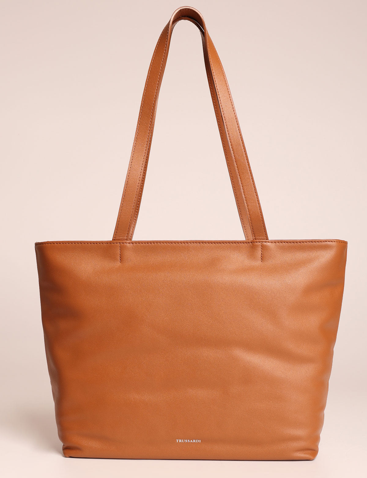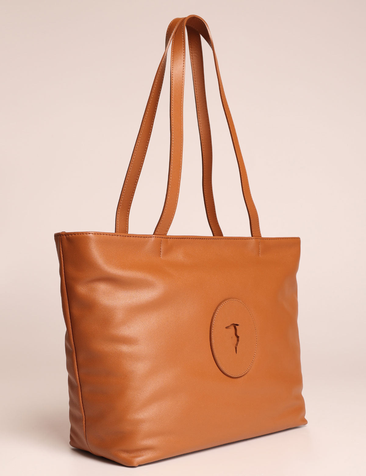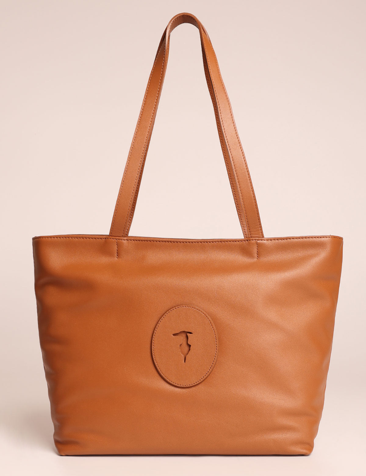 Trussardi women's bag made of smooth leather, shopper model with front logo detail