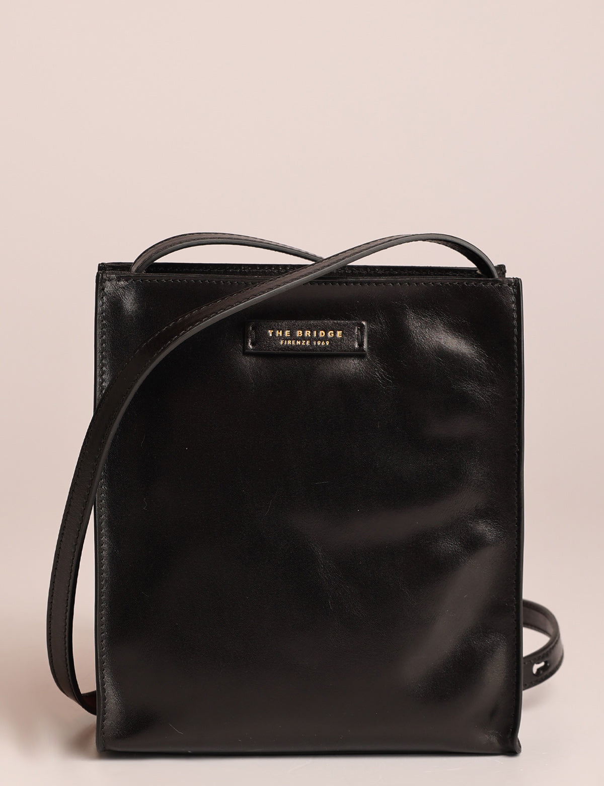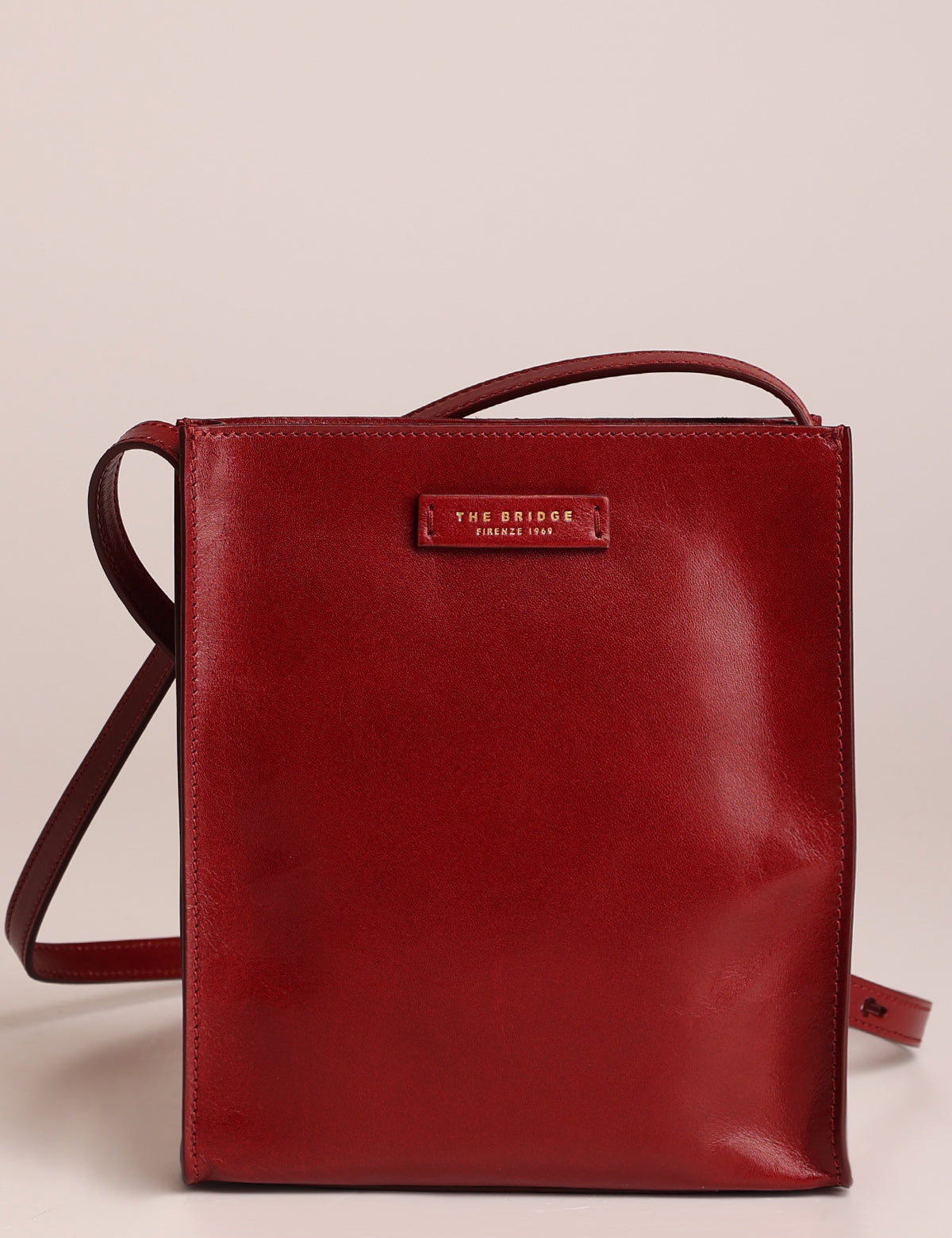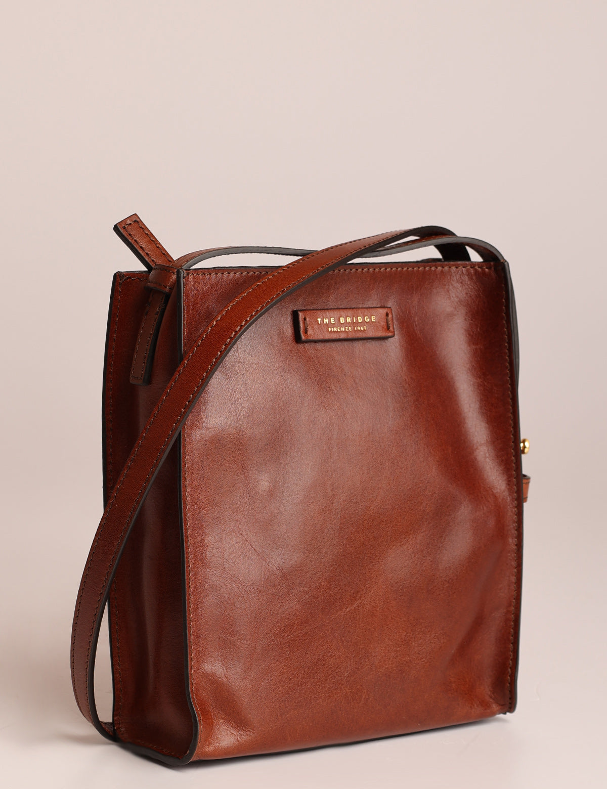 The Bridge women's shoulder bag with a square and linear design, made of fine leather.