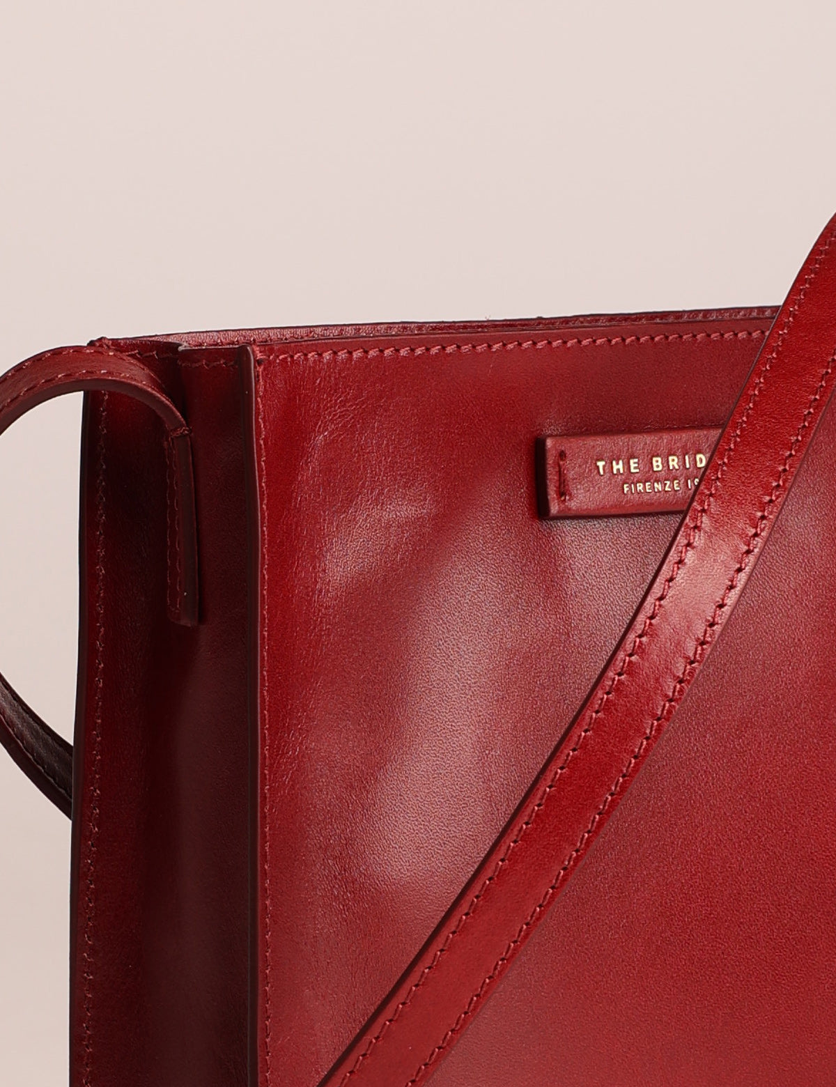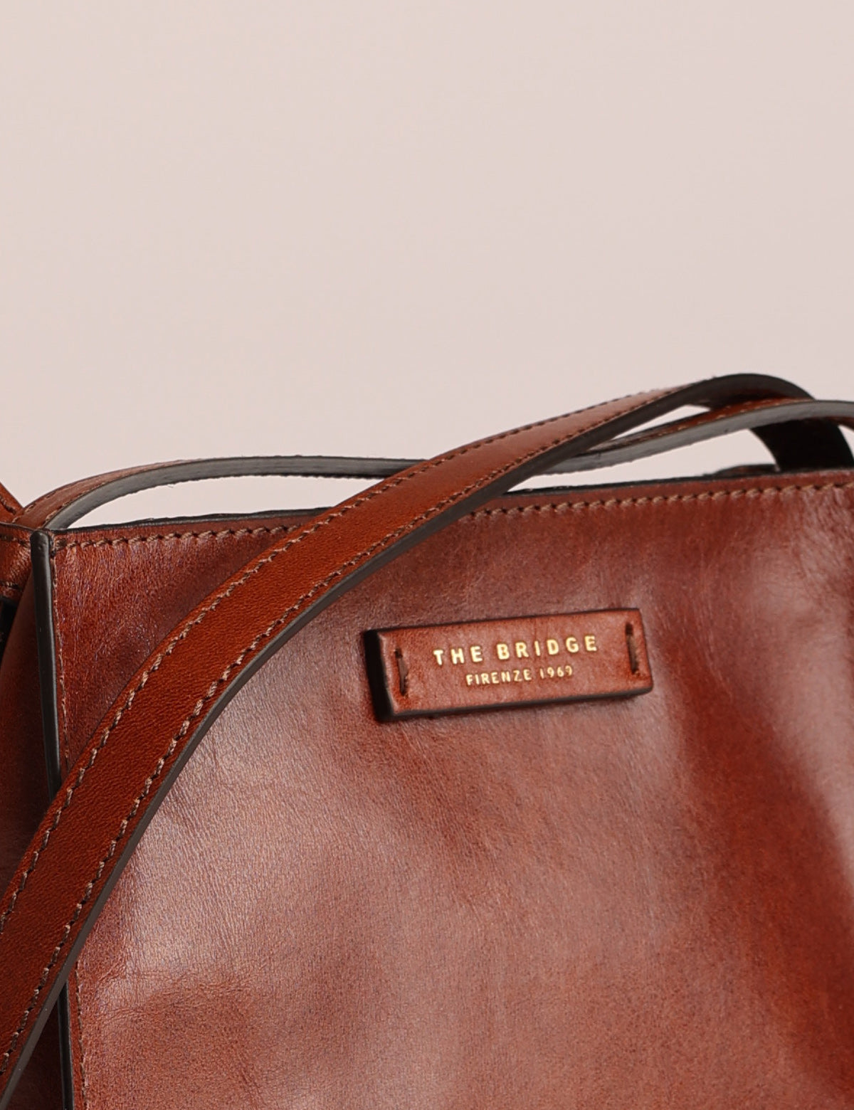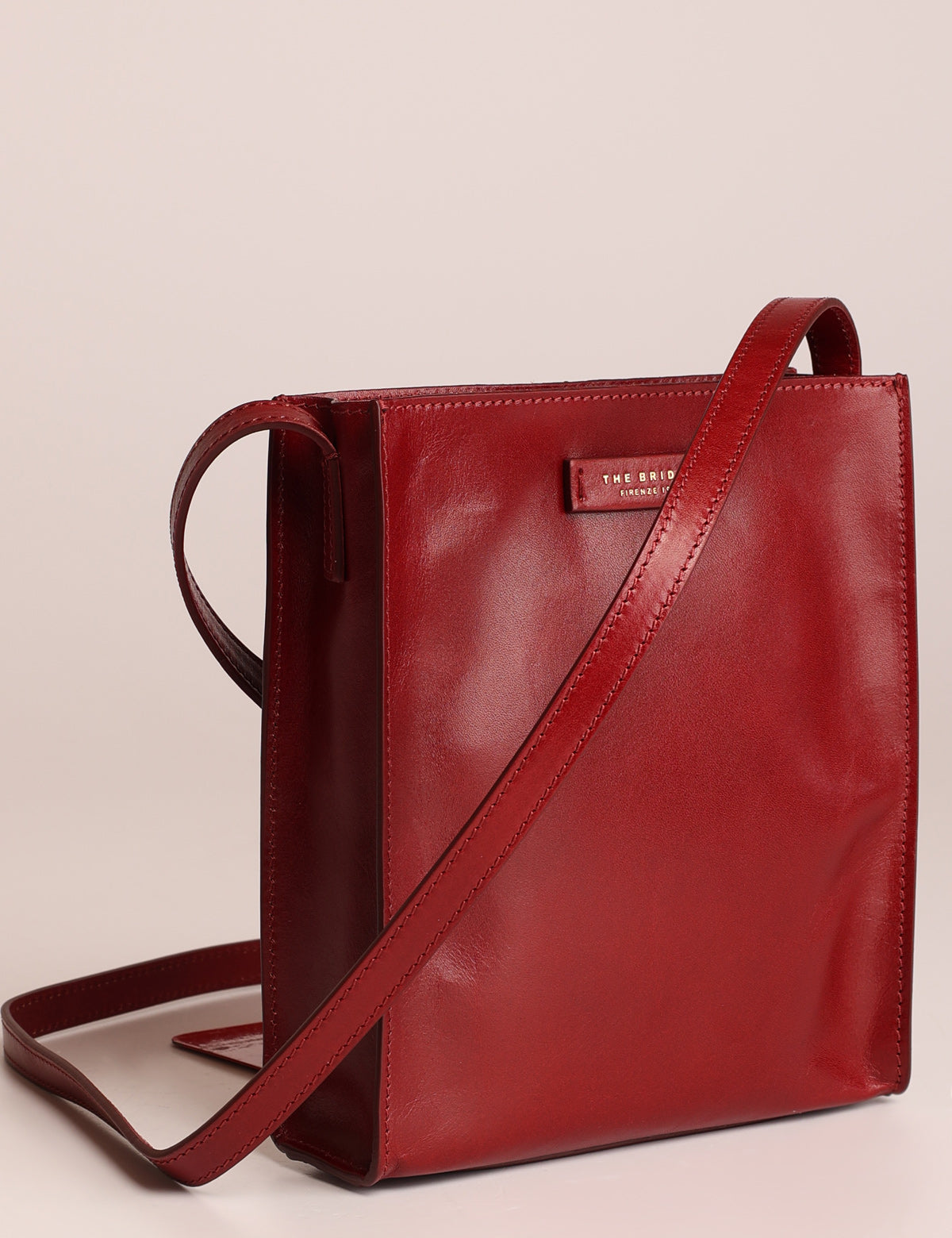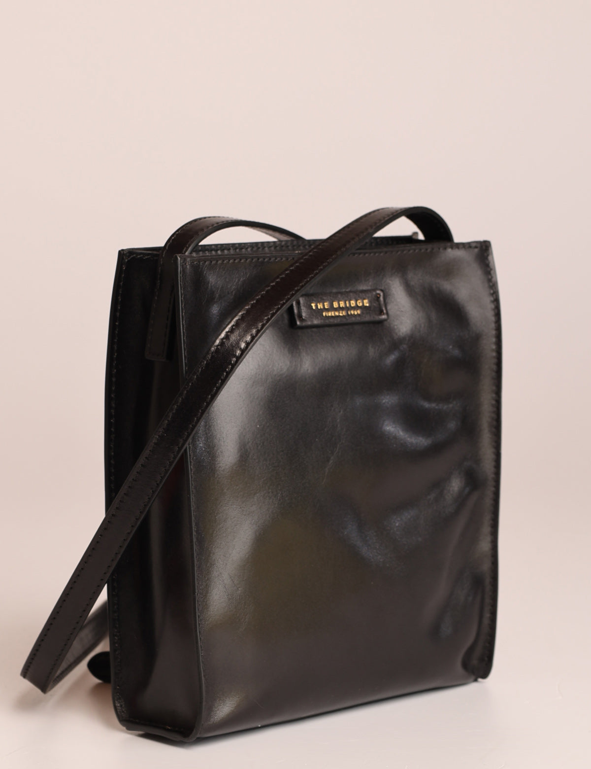 The Bridge women's shoulder bag with a square and linear design, made of fine leather.