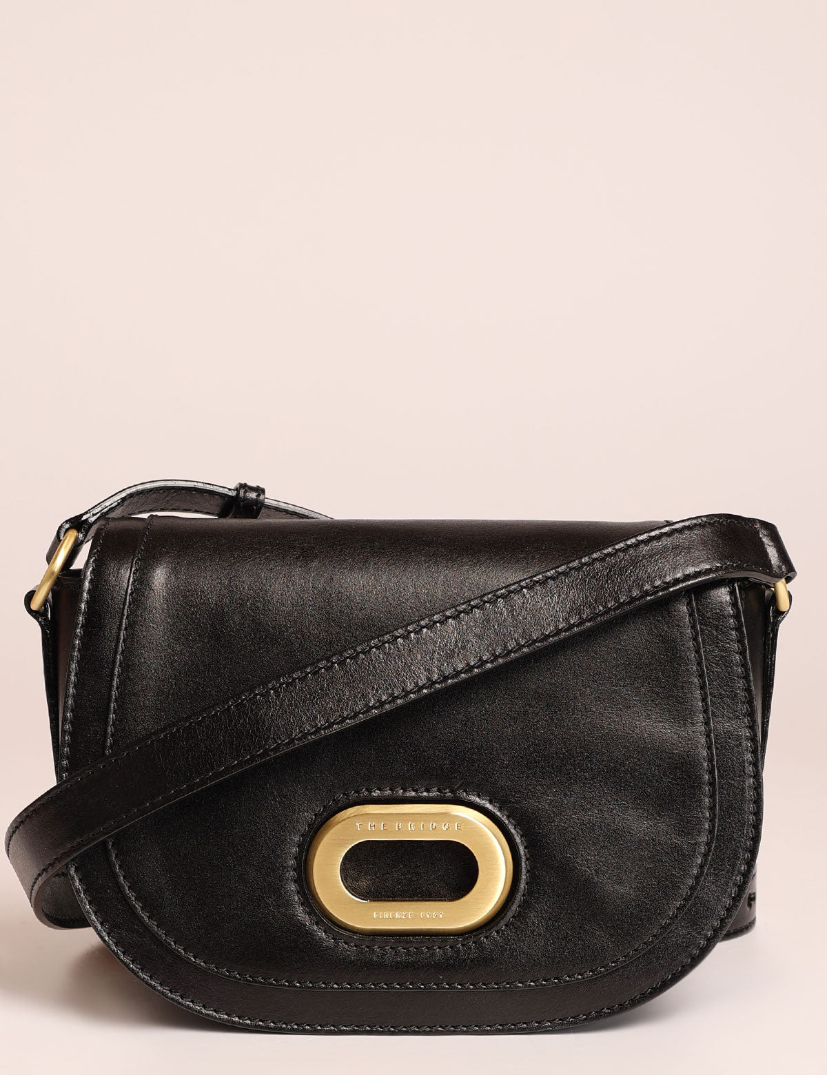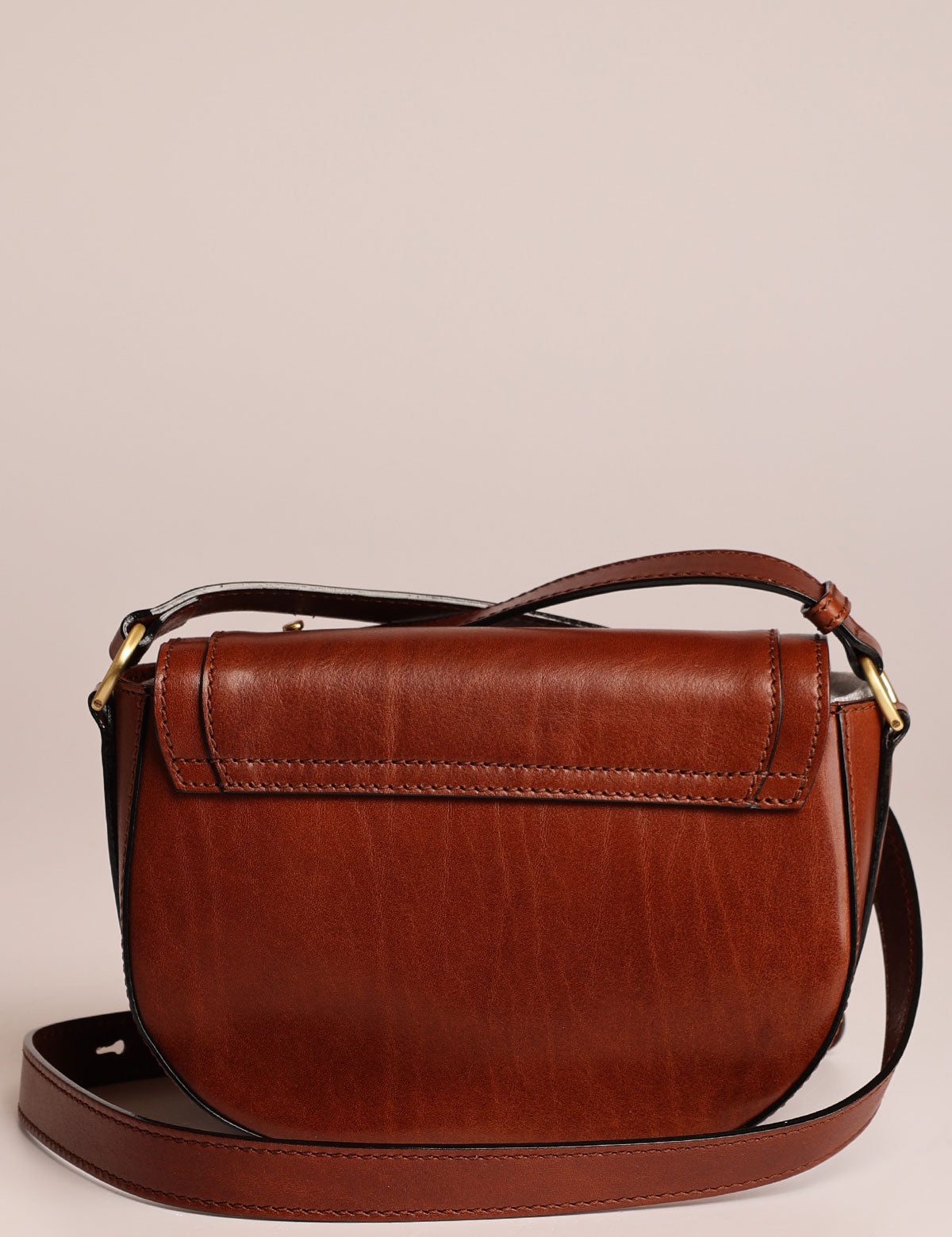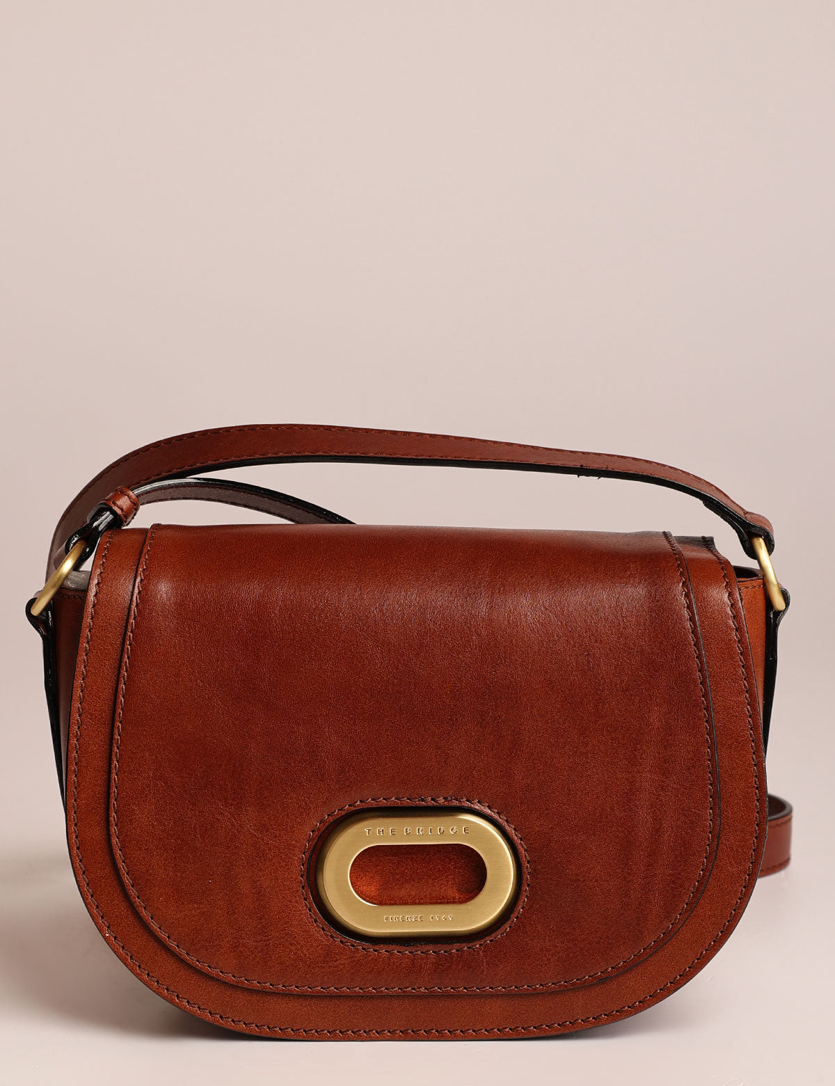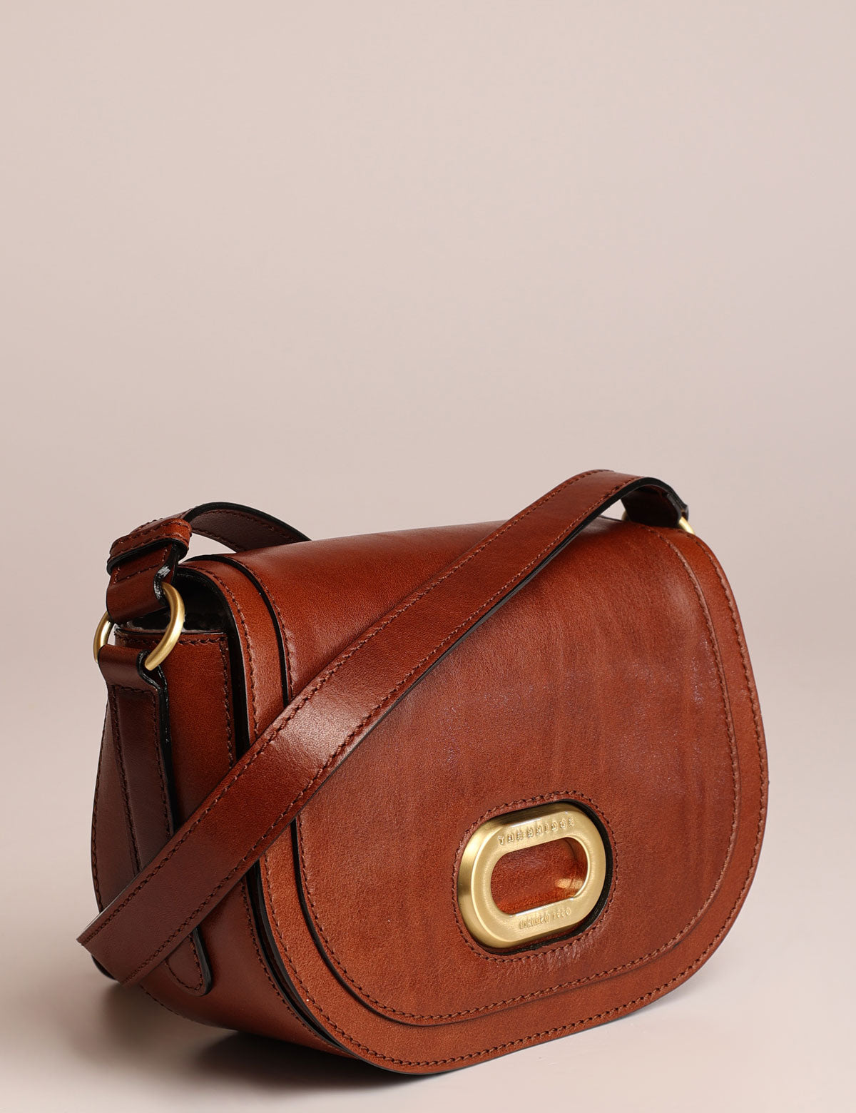 The Bridge women's leather shoulder bag with front flap and brass metal detail