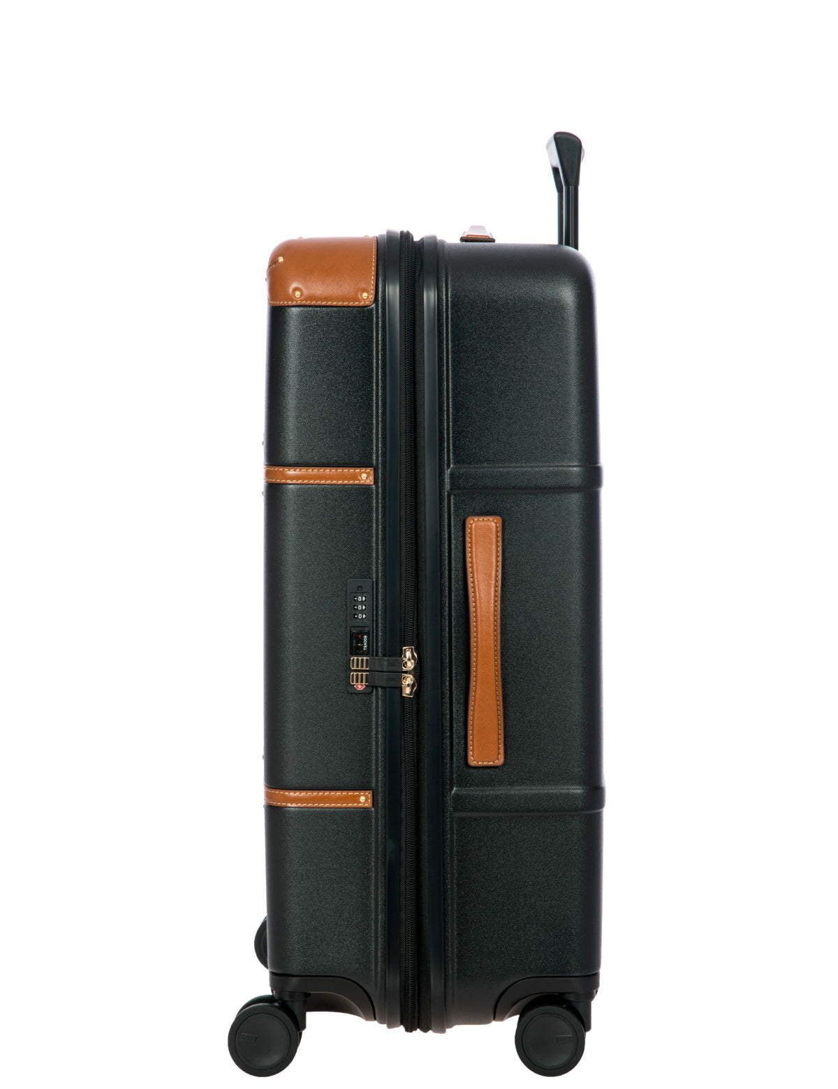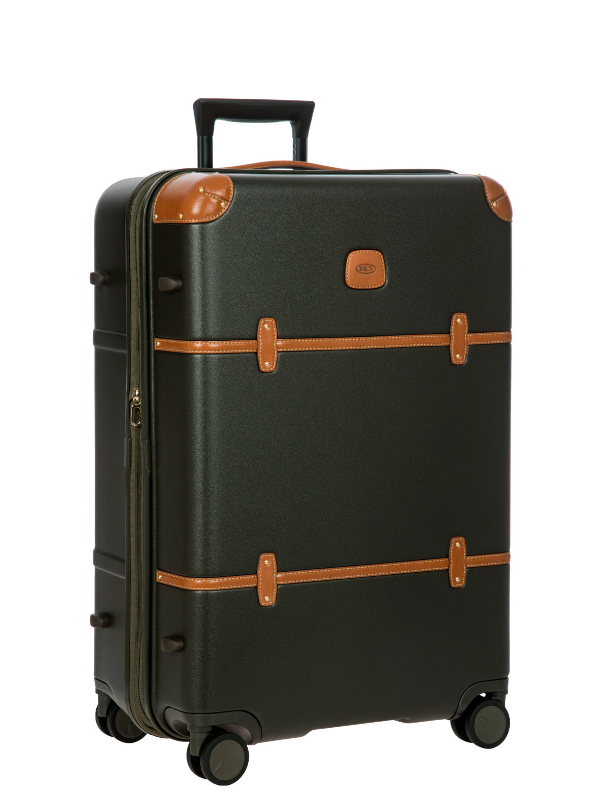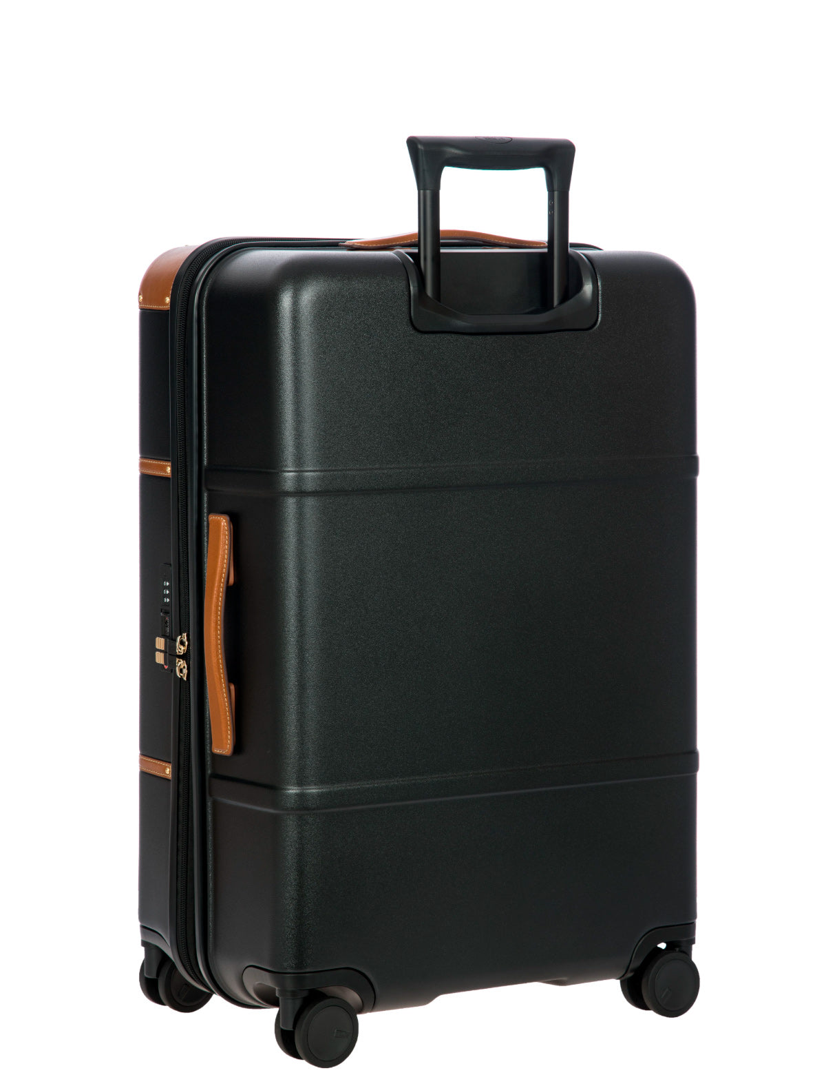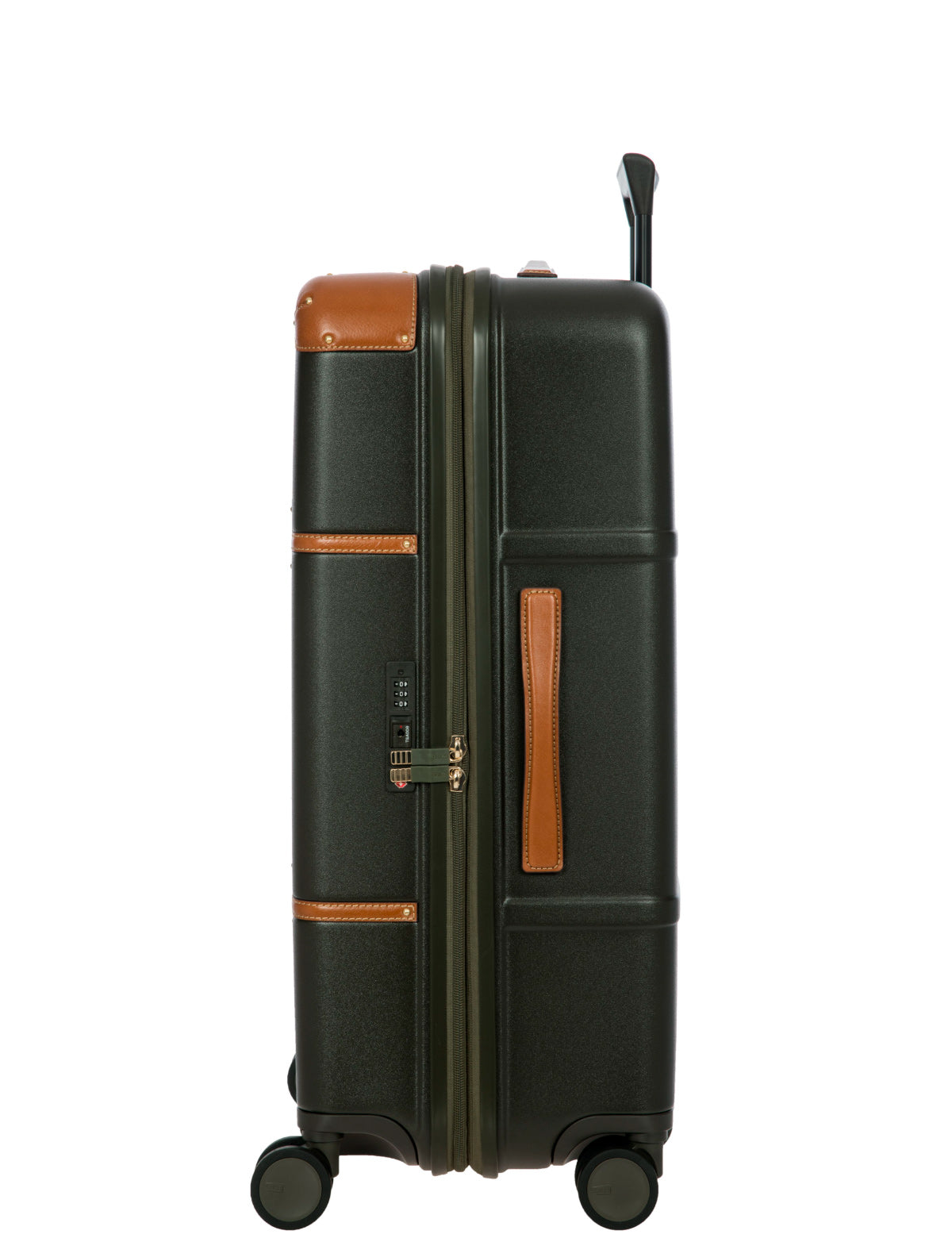 Bric's medium 70 cm suitcase with zip expandability. Made of recycled polycarbonate with leather details