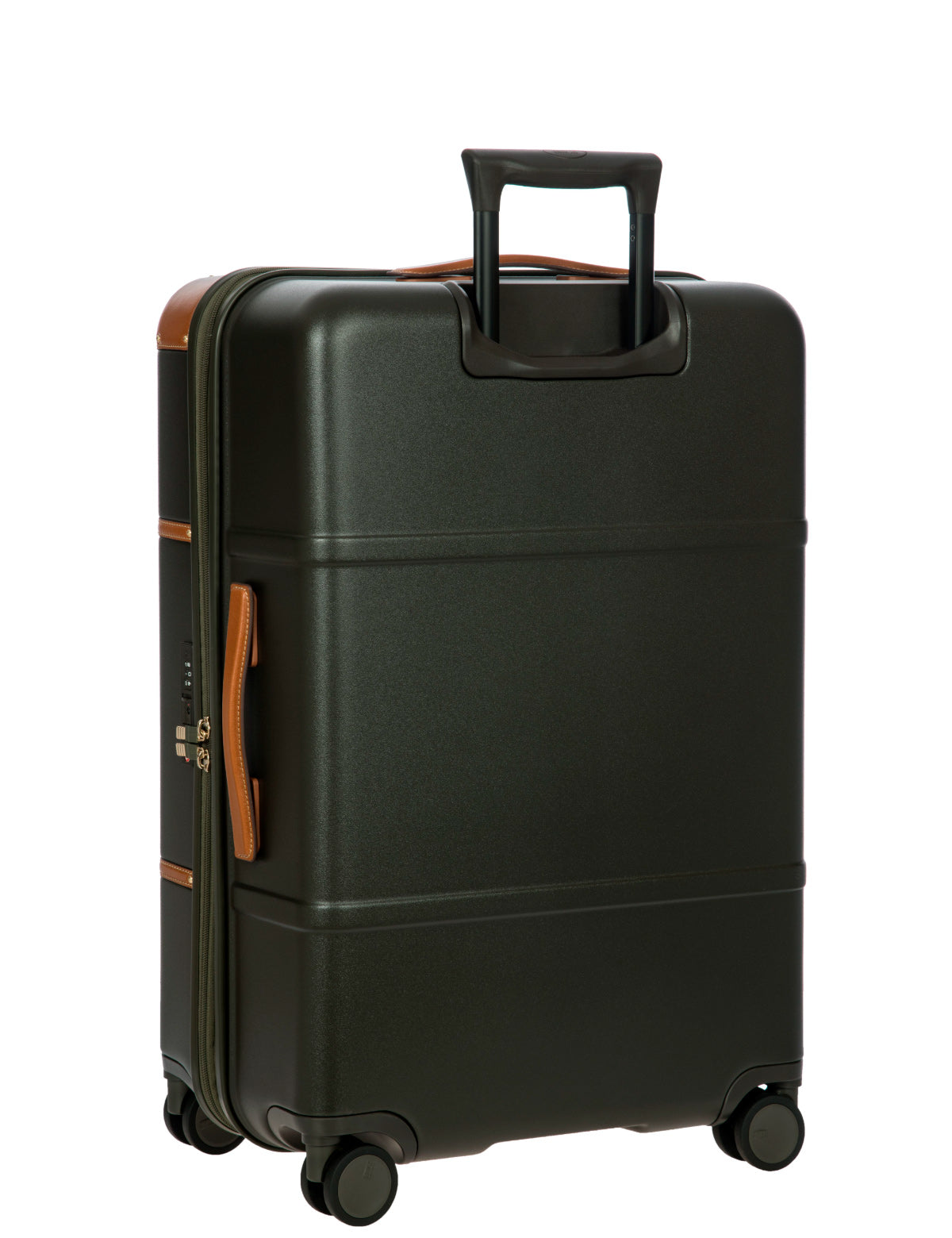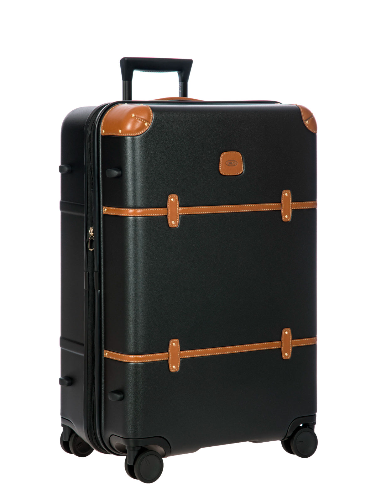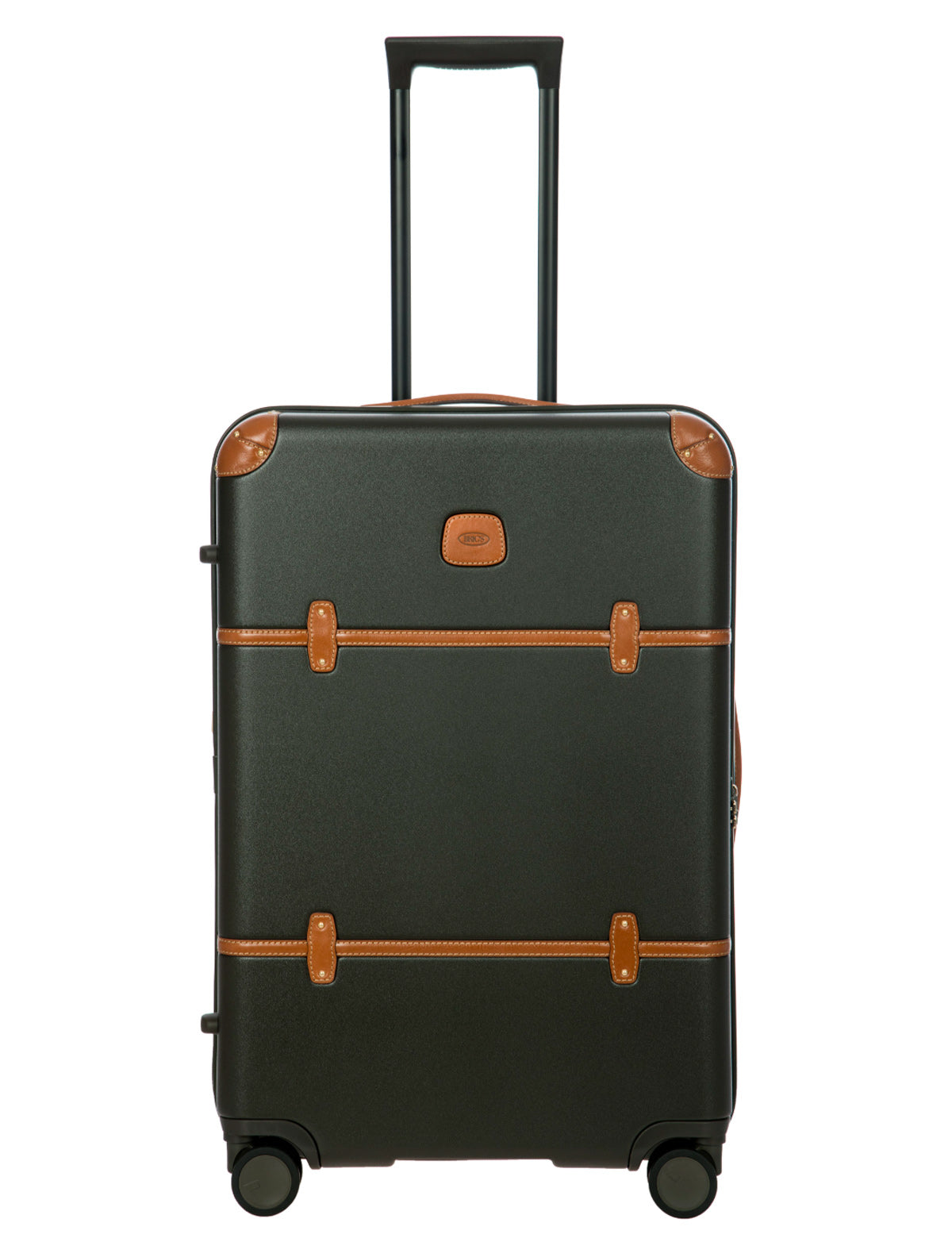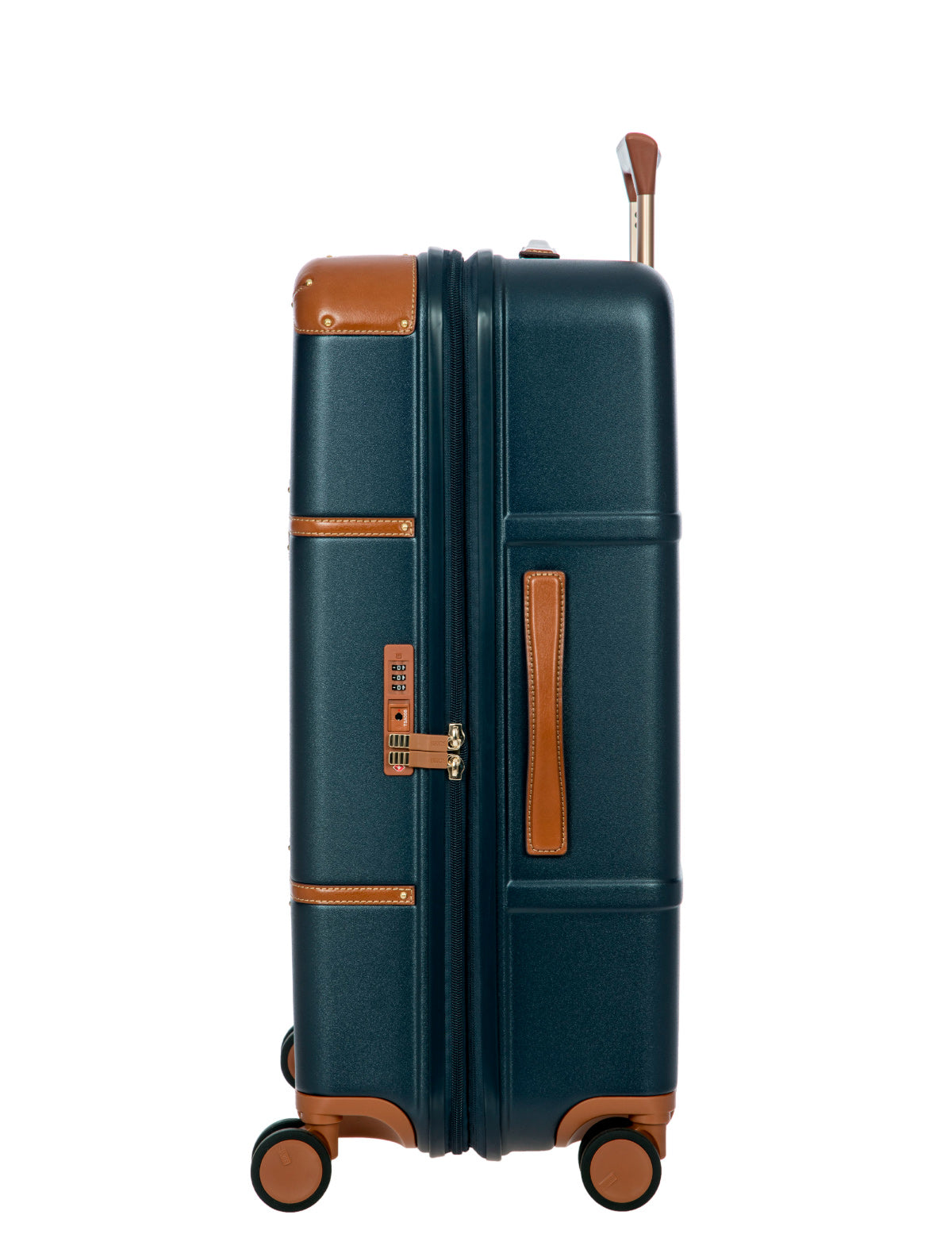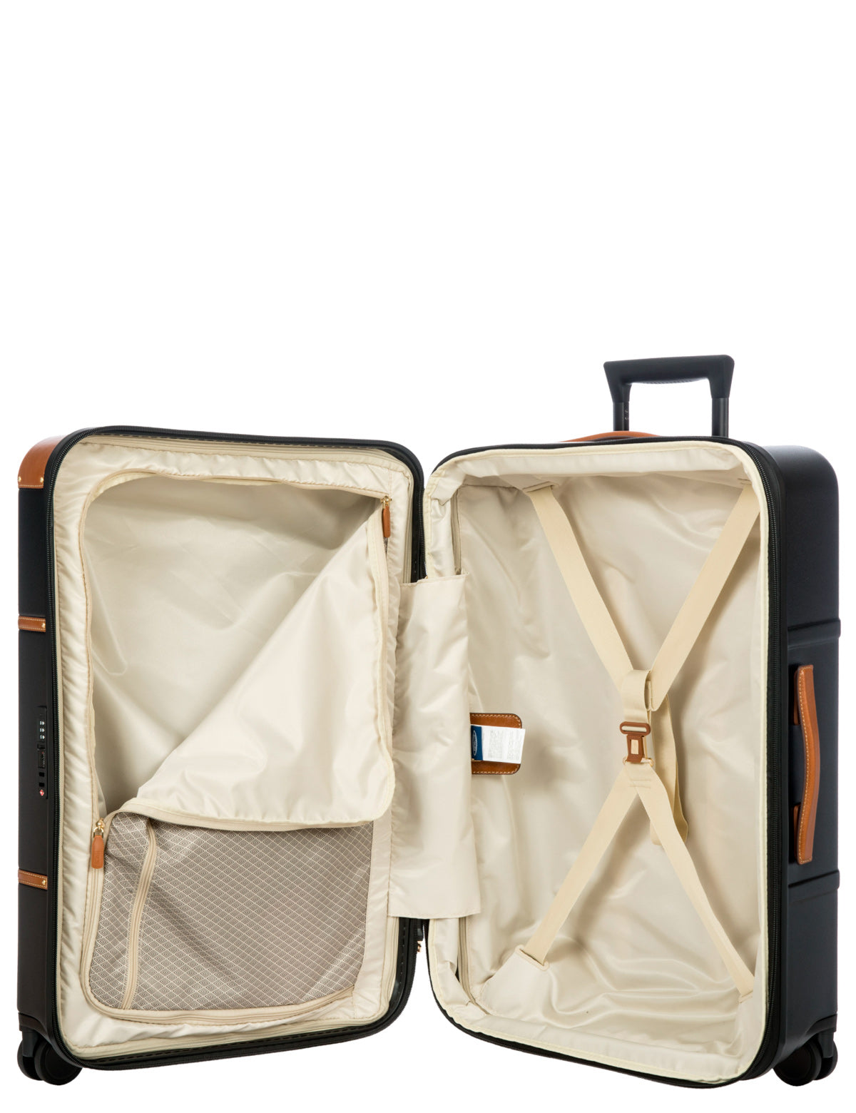 Bric's medium 70 cm suitcase with zip expandability. Made of recycled polycarbonate with leather details