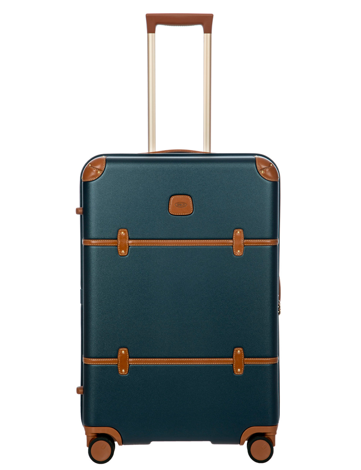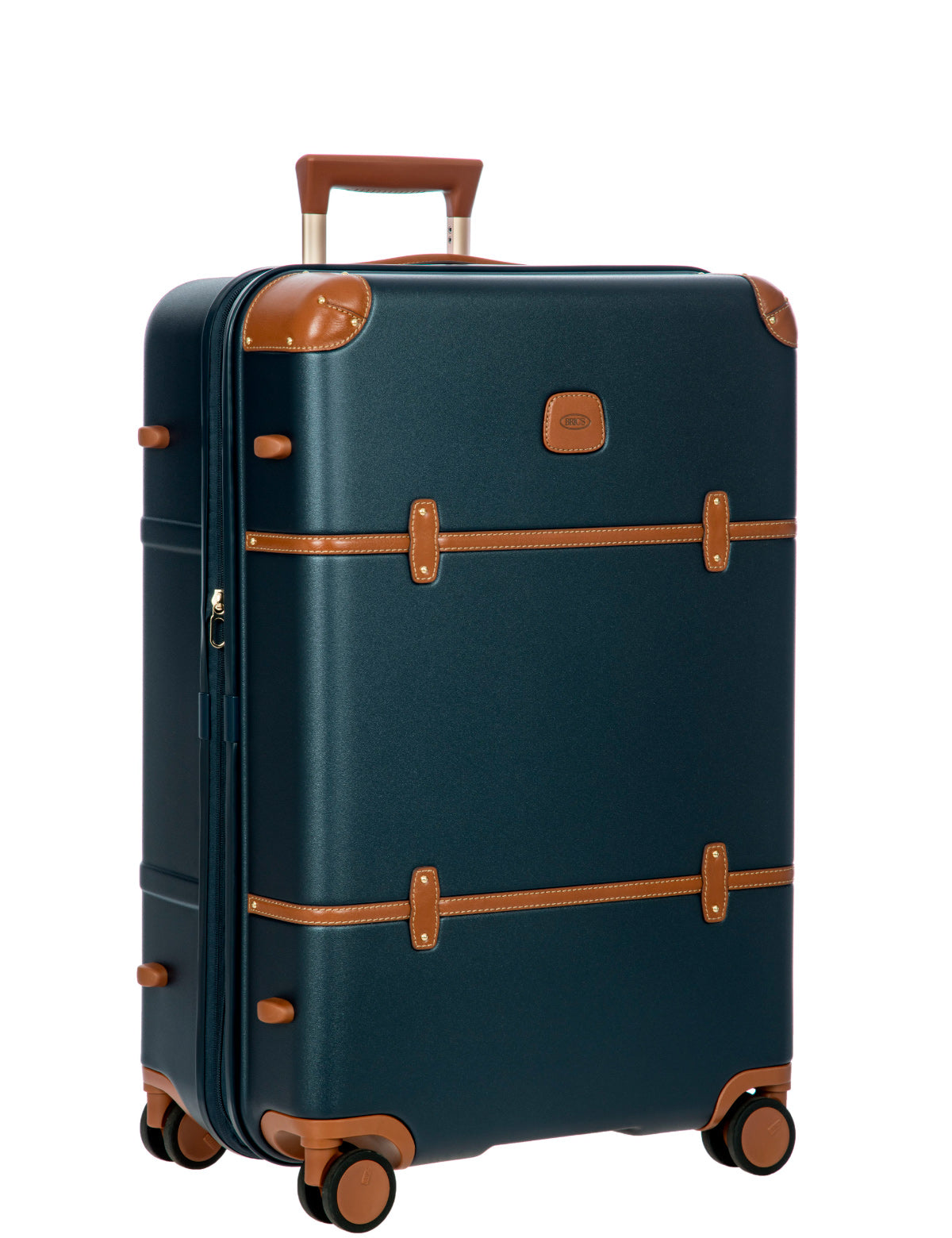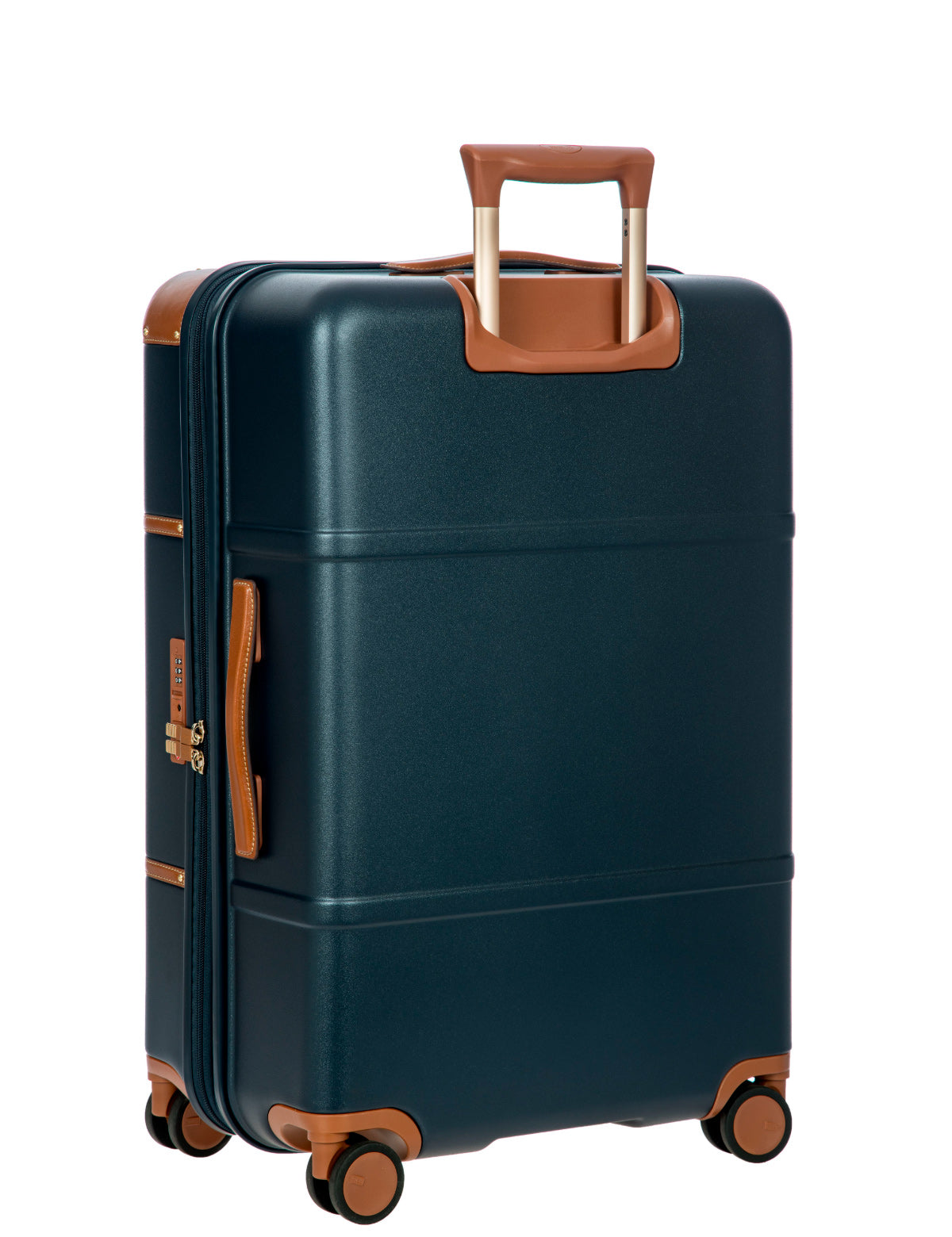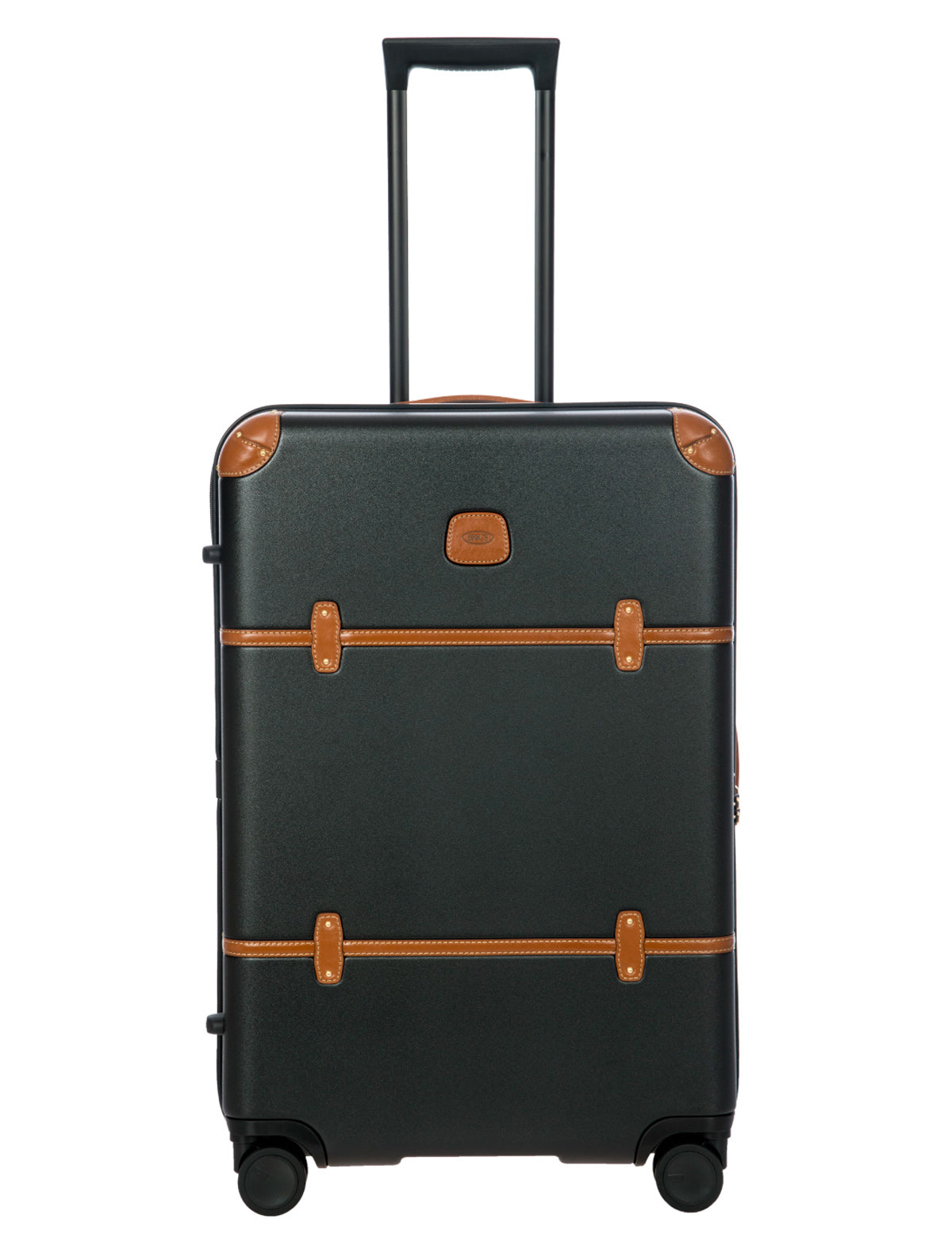 Bric's medium 70 cm suitcase with zip expandability. Made of recycled polycarbonate with leather details