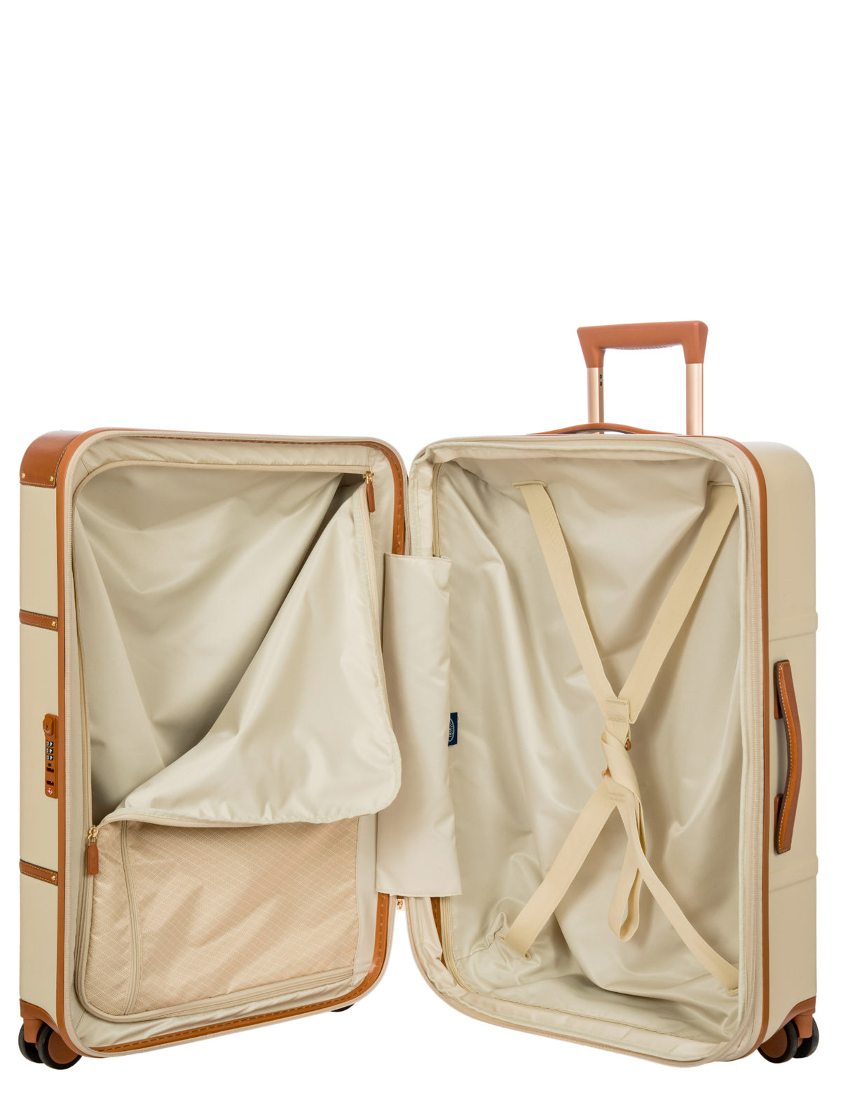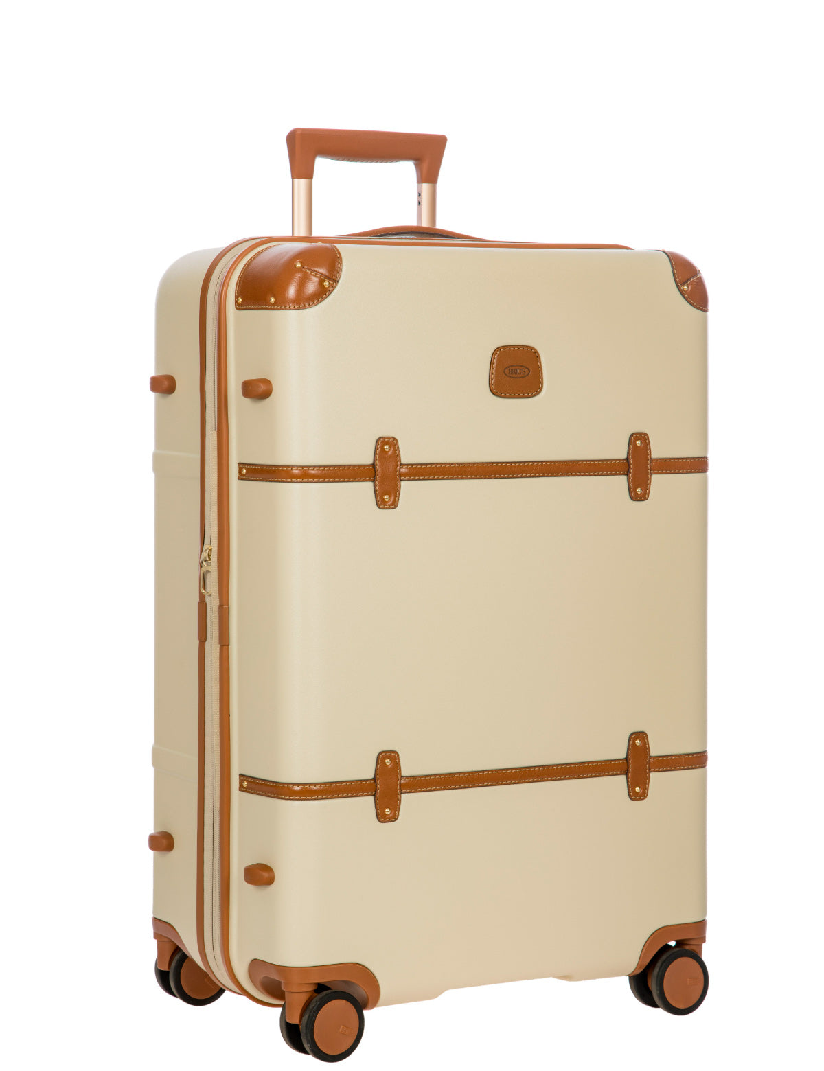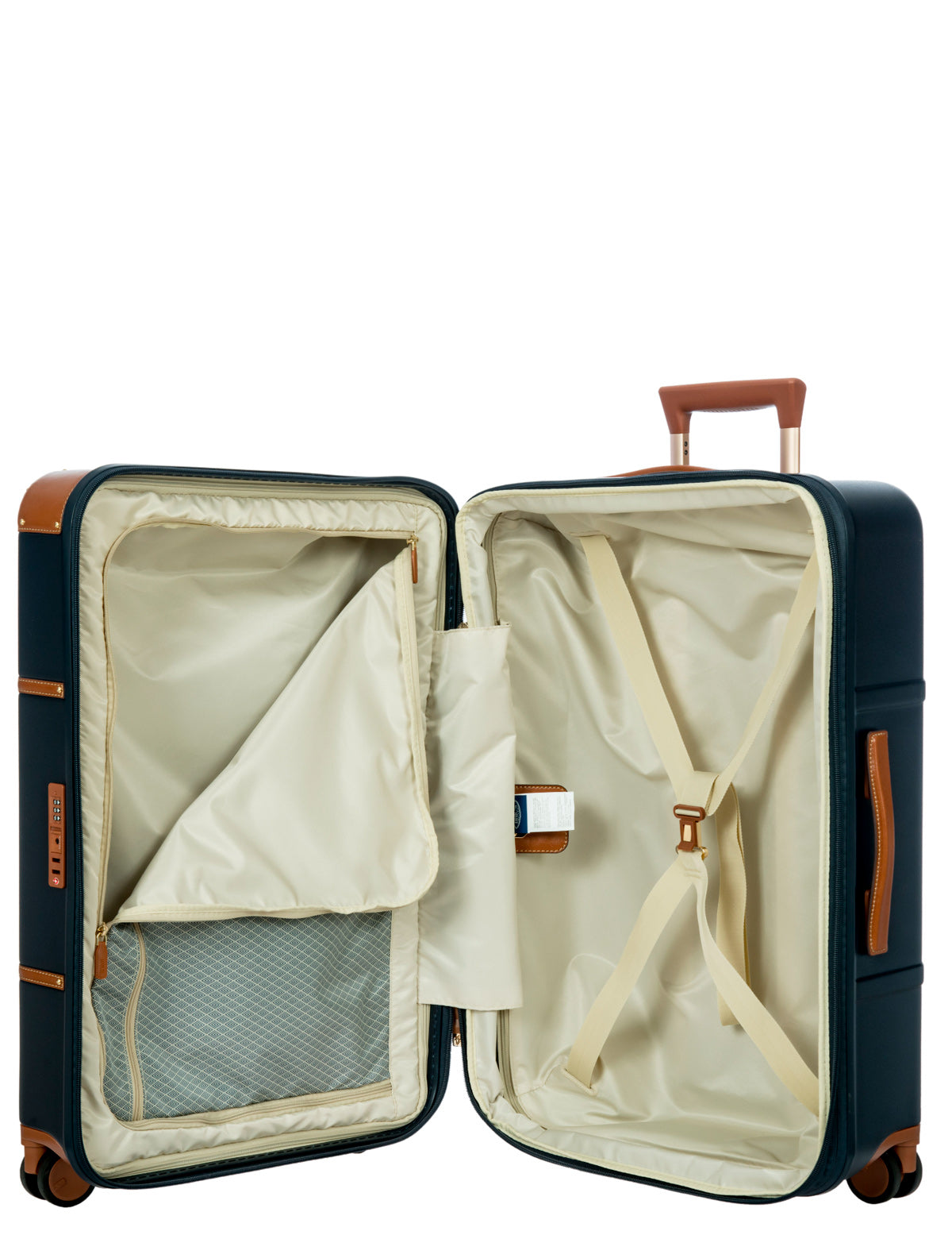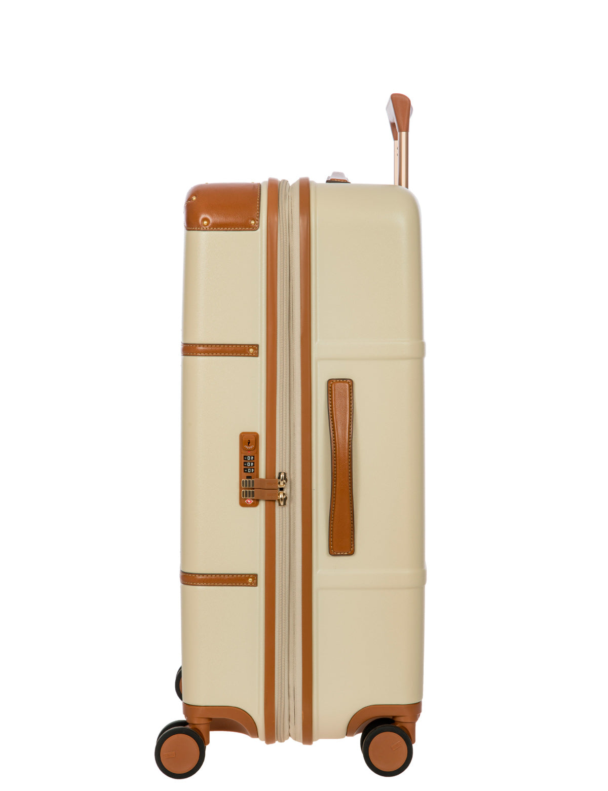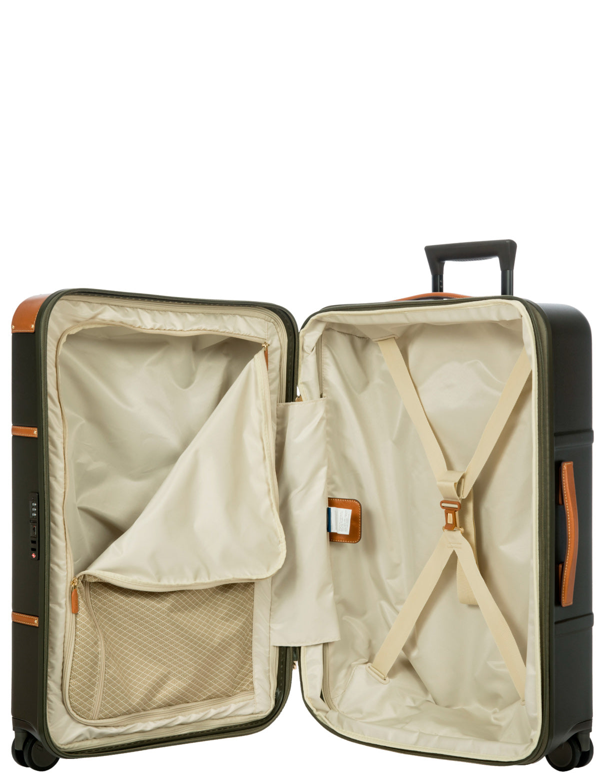 Bric's medium 70 cm suitcase with zip expandability. Made of recycled polycarbonate with leather details