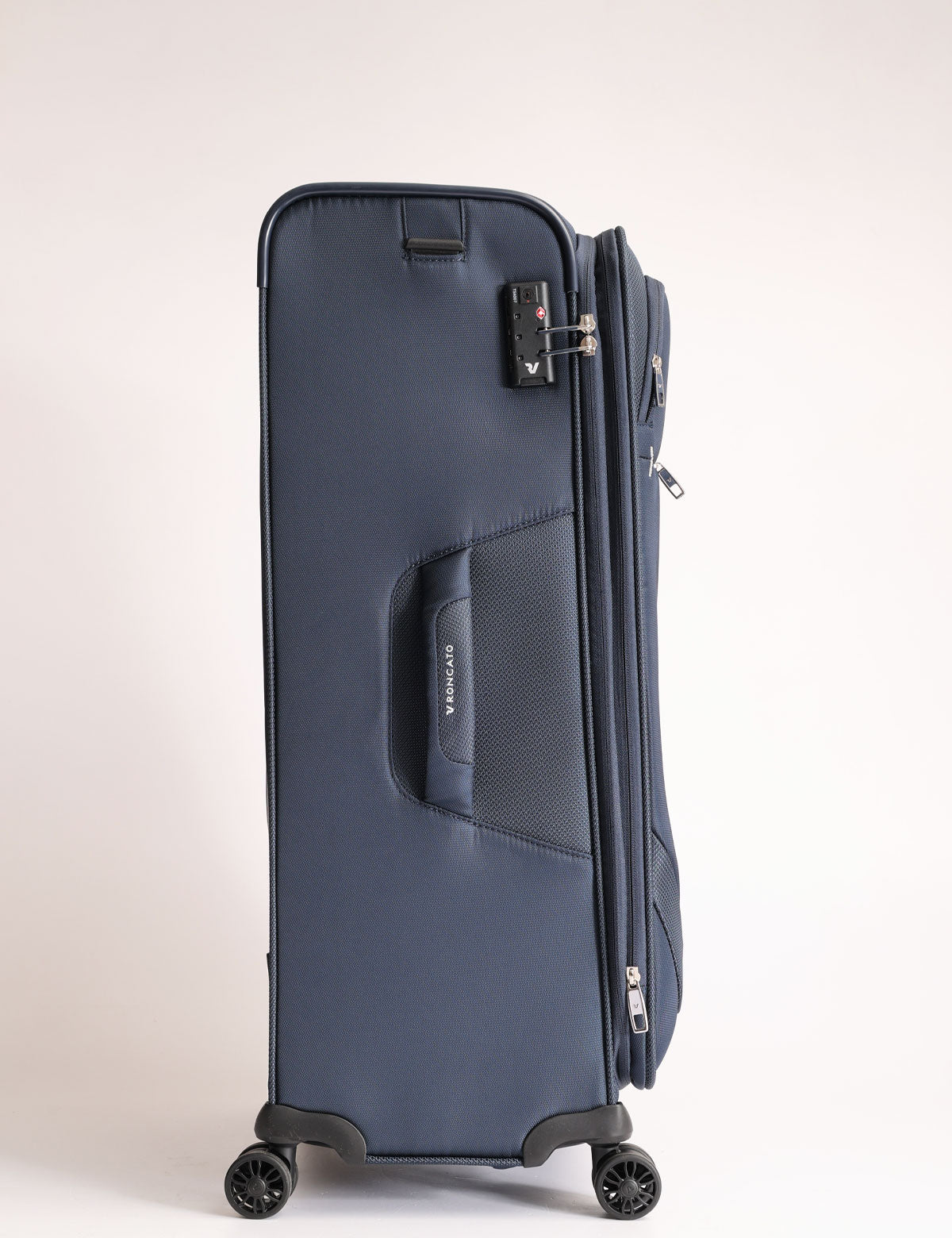 Roncato large suitcase with four wheels, model equipped with extractable handle and expandability via zip