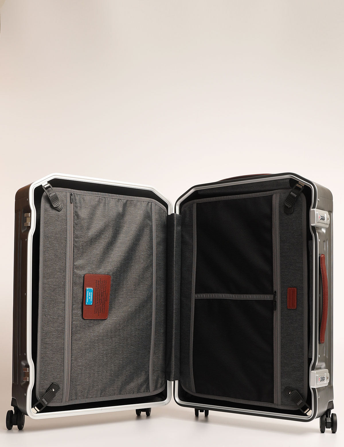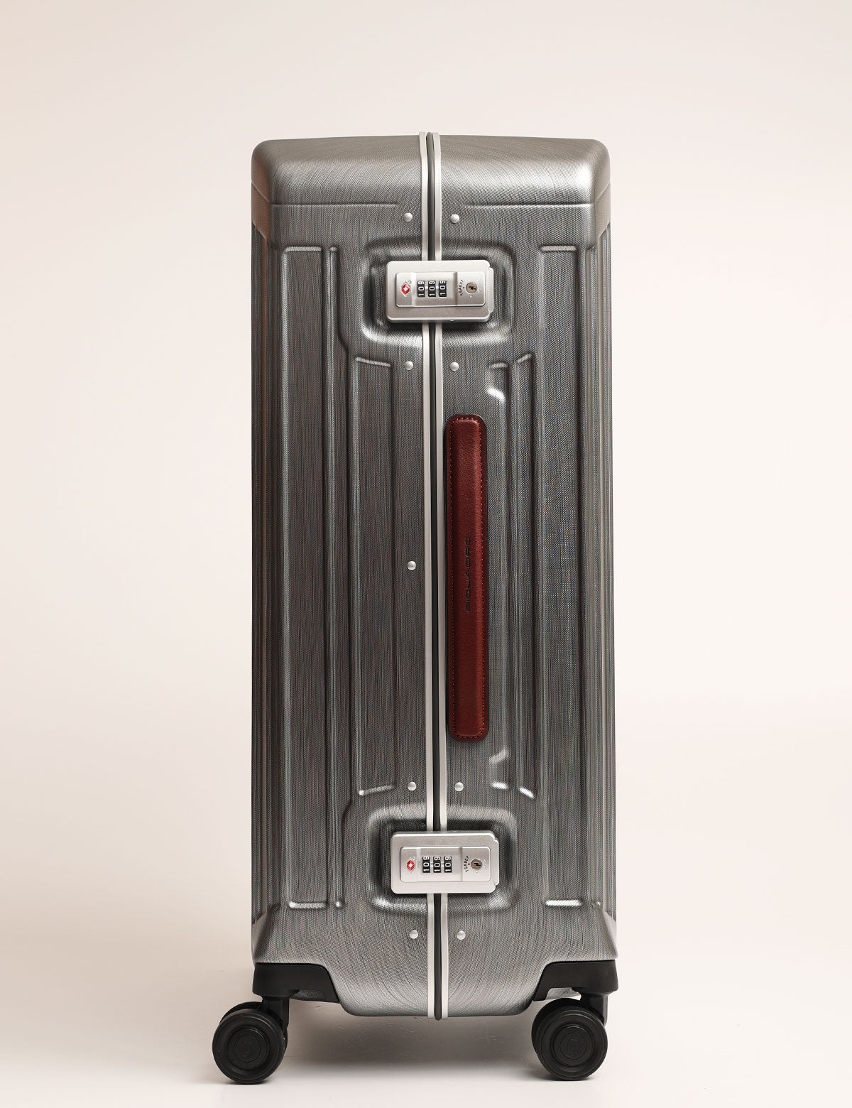 Piquadro medium-sized hold luggage, rigid model made of polycarbonate and leather details
