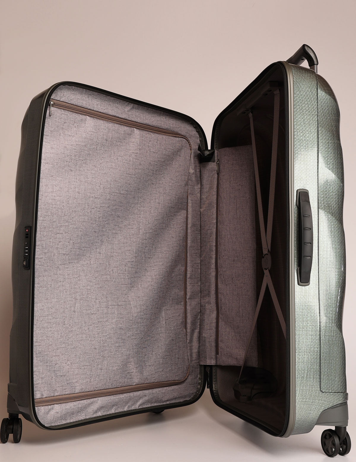 Heir to the iconic Cosmolite, Samsonite's C-Lite line represents the pinnacle of modern travel: lightweight, durable, and elegant. Crafted from Curv®, an exclusive technology that ensures maximum strength and durability, it combines refined design with comfort. Equipped with silent double wheels and an ergonomic handle, it ensures smooth and practical travel. The well-organized interior and integrated TSA lock make it ideal for those seeking style, functionality, and security while traveling.