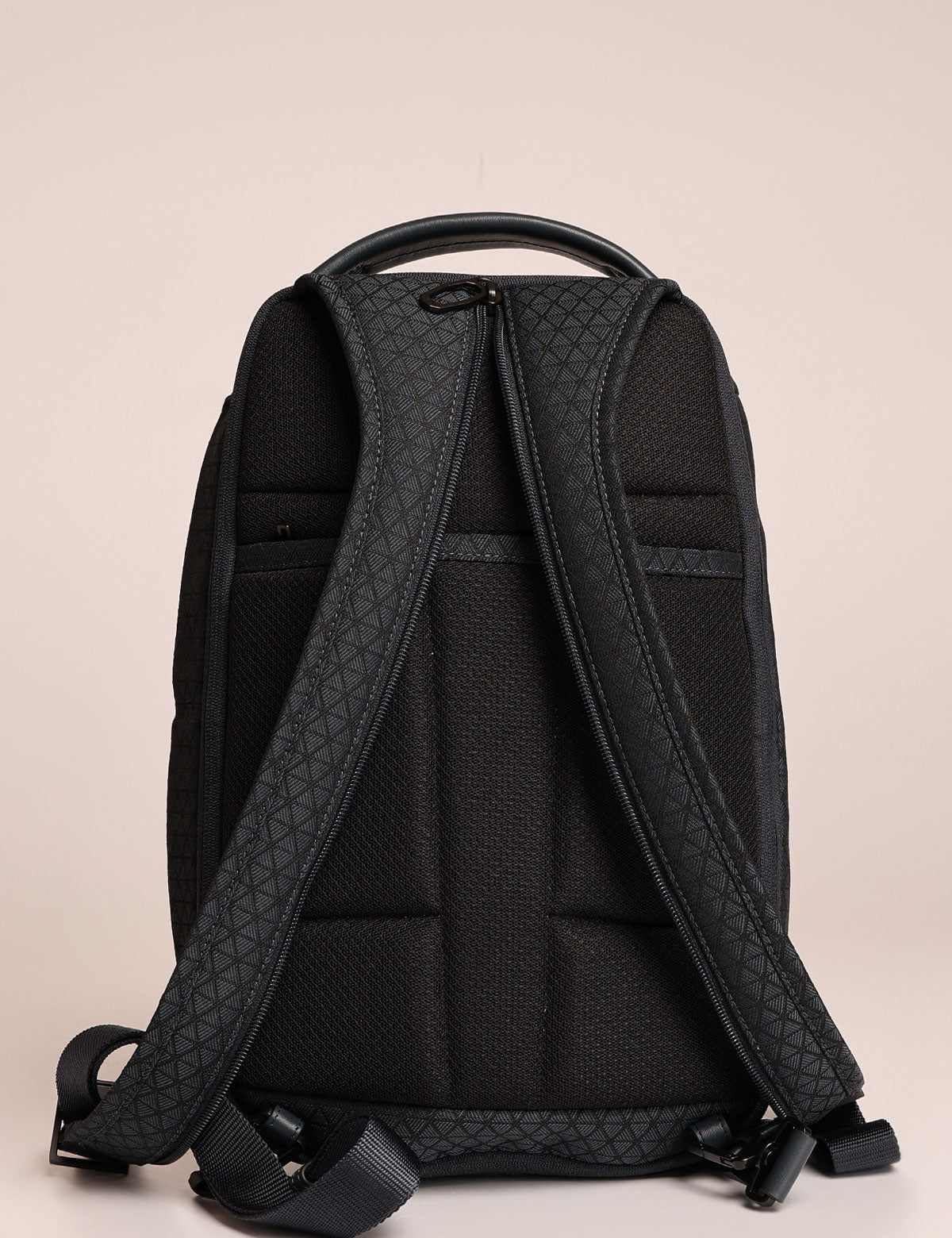 Ma il cuore della collezione è il tessuto tecnico esclusivo, ispirato al reticolo molecolare del carbonio: leggero, idrorepellente e resistente a urti, usura e intemperie. Realizzato con 91% di poliestere riciclato e rifinito in poliuretano con inserti in pelle di alta qualità, rappresenta l’impegno di Piquadro verso un’innovazione sostenibile e raffinata.