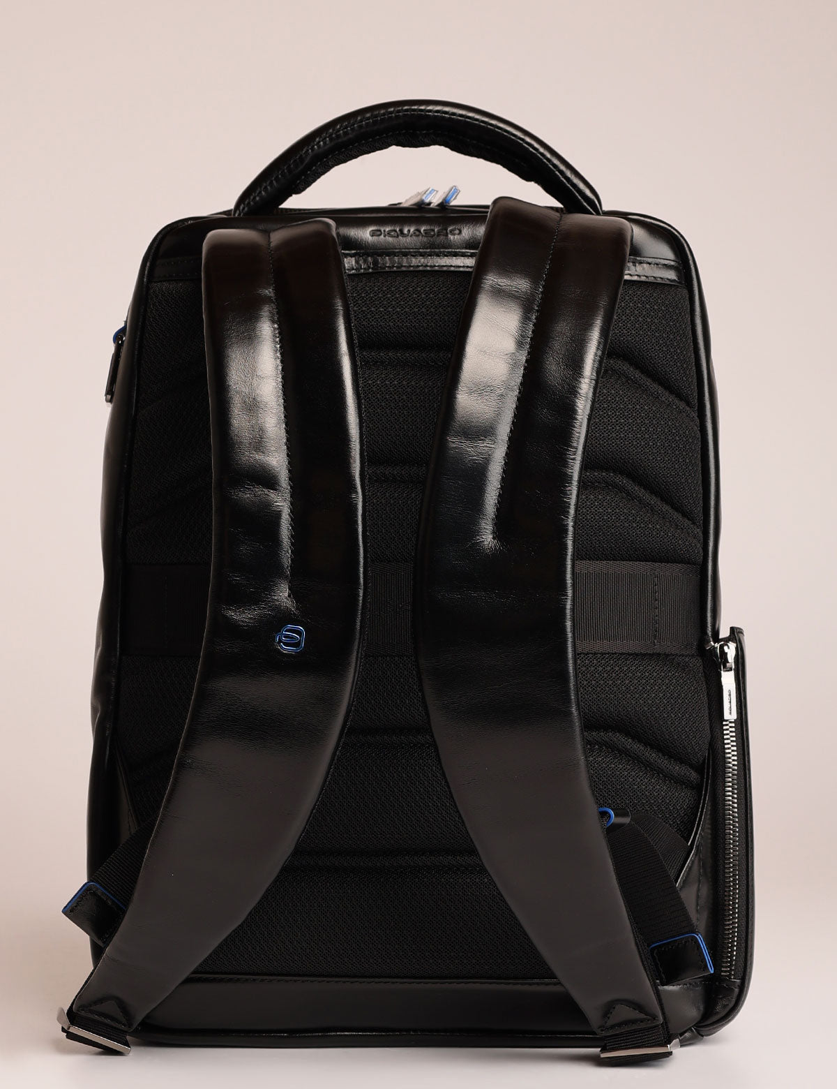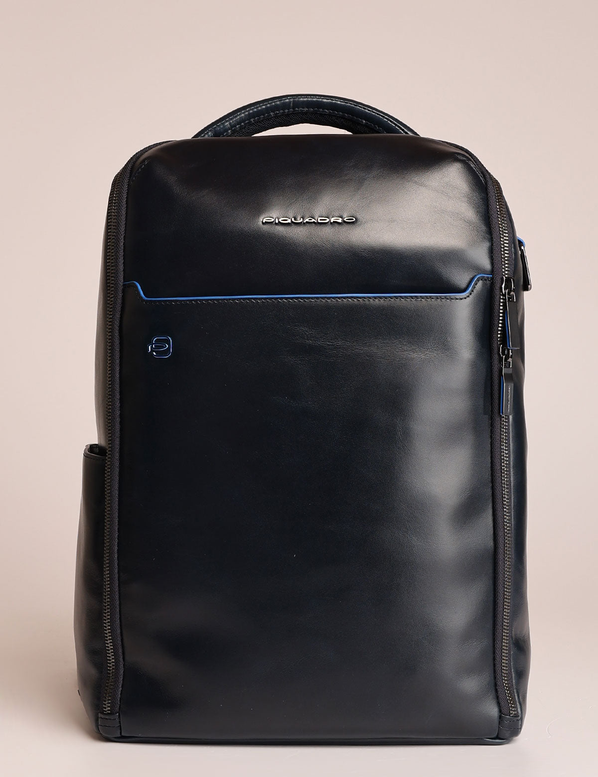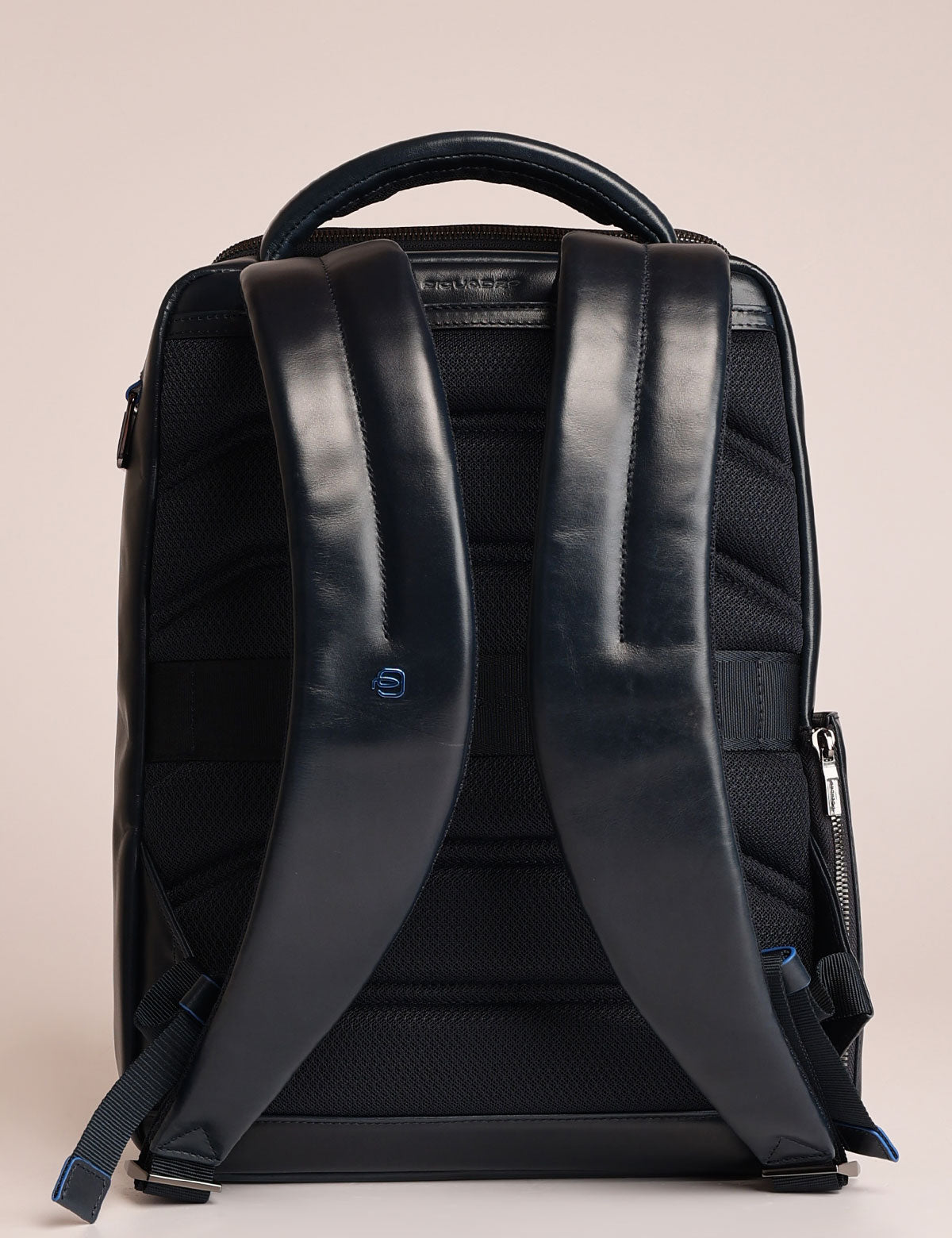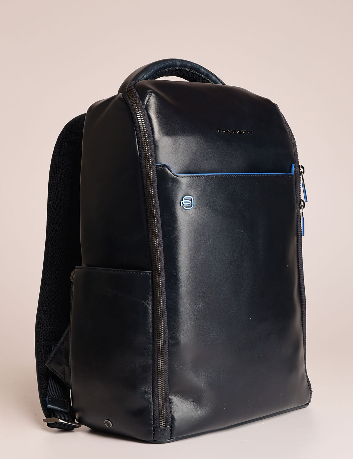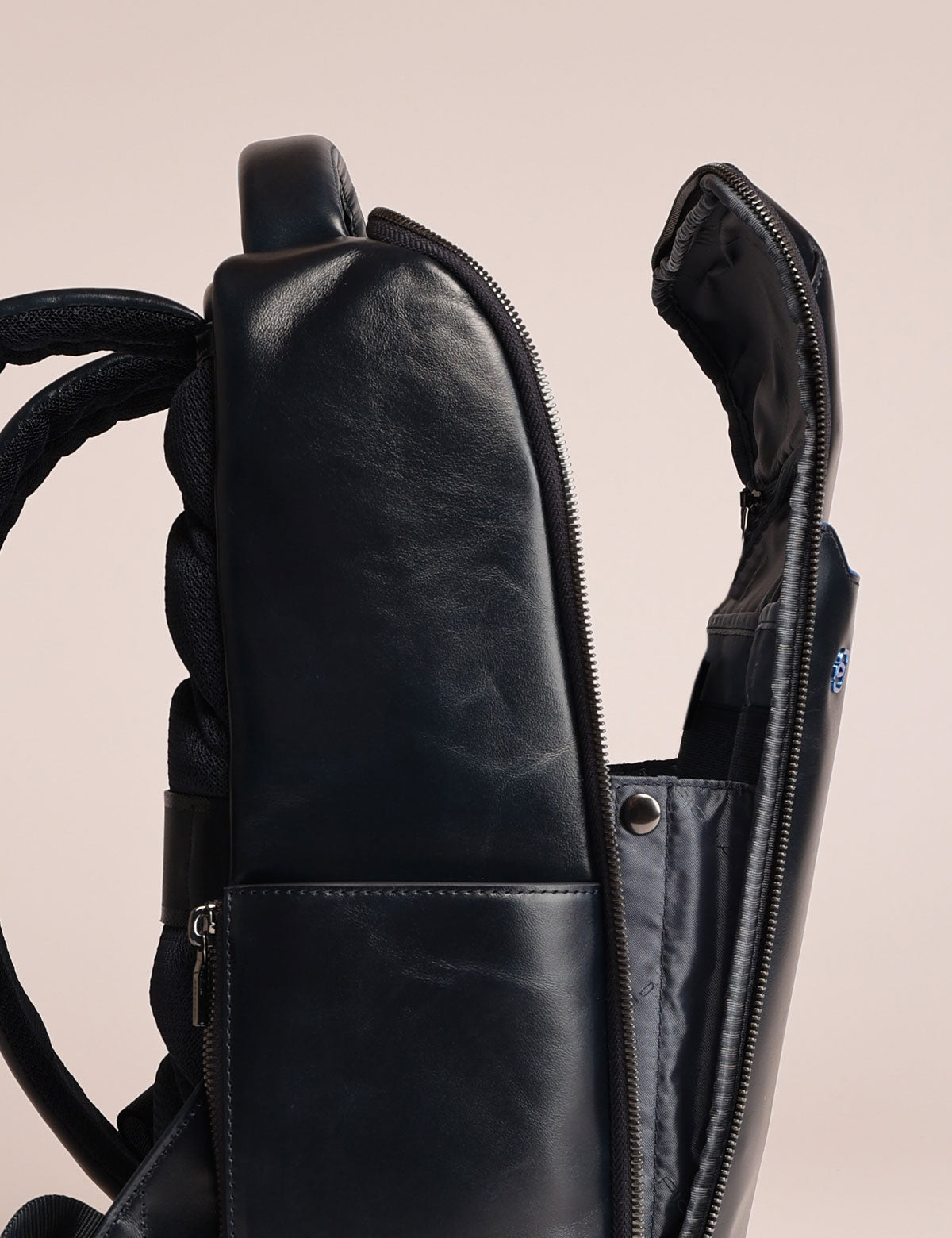 Piquadro leather backpack with a special fast-check flap opening for laptops up to 14 inches